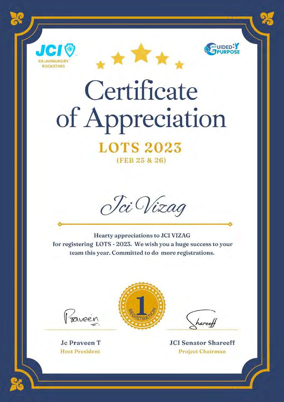 LOTS 2023 for Zone IV is hosted by JCI Rajahmundry Rockstars at Hotel Anand Regency,Rajamundry.