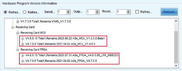 Klicken Sie auf „Update“, um das Firmwareupdate durchzuführen. Es öffnet sich ein weiteres Fenster, in dem Sie auswählen können, ob alle oder nur bestimmte Empfängerkarten aktualisiert werden sollen. Treffen Sie die entsprechende Wahl und bestätigen diese. Wir empfehlen hierbei grundsätzlich, ein Update immer bei allen Empfängerkarten durchzuführen. Handelt es sich aber um eine LED-Wand, die – wie oben beschrieben – aus LED-Modulen mehrerer verschiedener Serien (z.B. P2+sBL und P4+WH Pro) zusammengesetzt ist, führen Sie die Firmwareupdates der verschiedenen Serien, um Störungen zu vermeiden, nicht gleichzeitig durch.