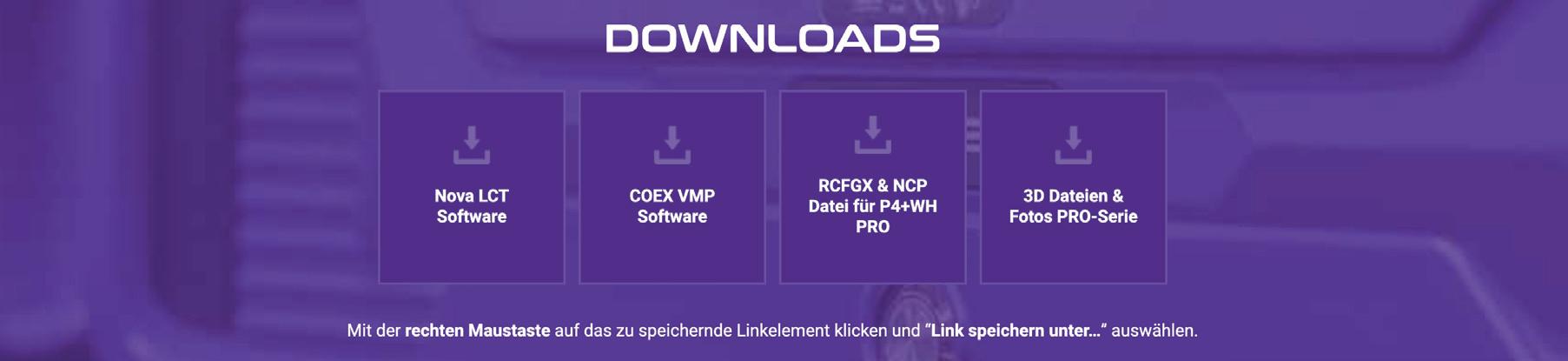 Wählen Sie hier die durch Sie verwendete Serie aus und scrollen Sie herunter bis zum Punkt „Downloads“. Wählen Sie hier „COEX VMP-Software“ und „RCFGX & NCP Datei für LED-Wand Serie“. Laden, entpacken und installieren Sie die Dateien.