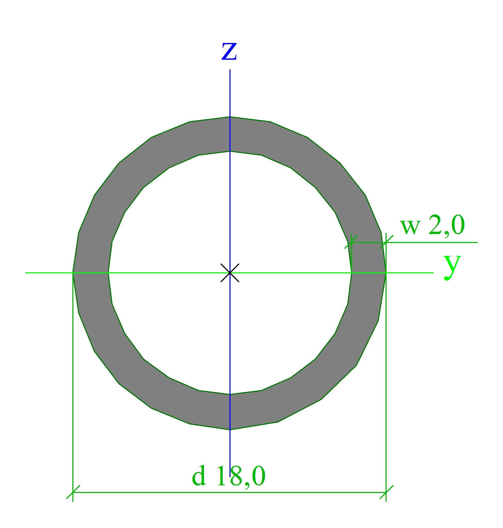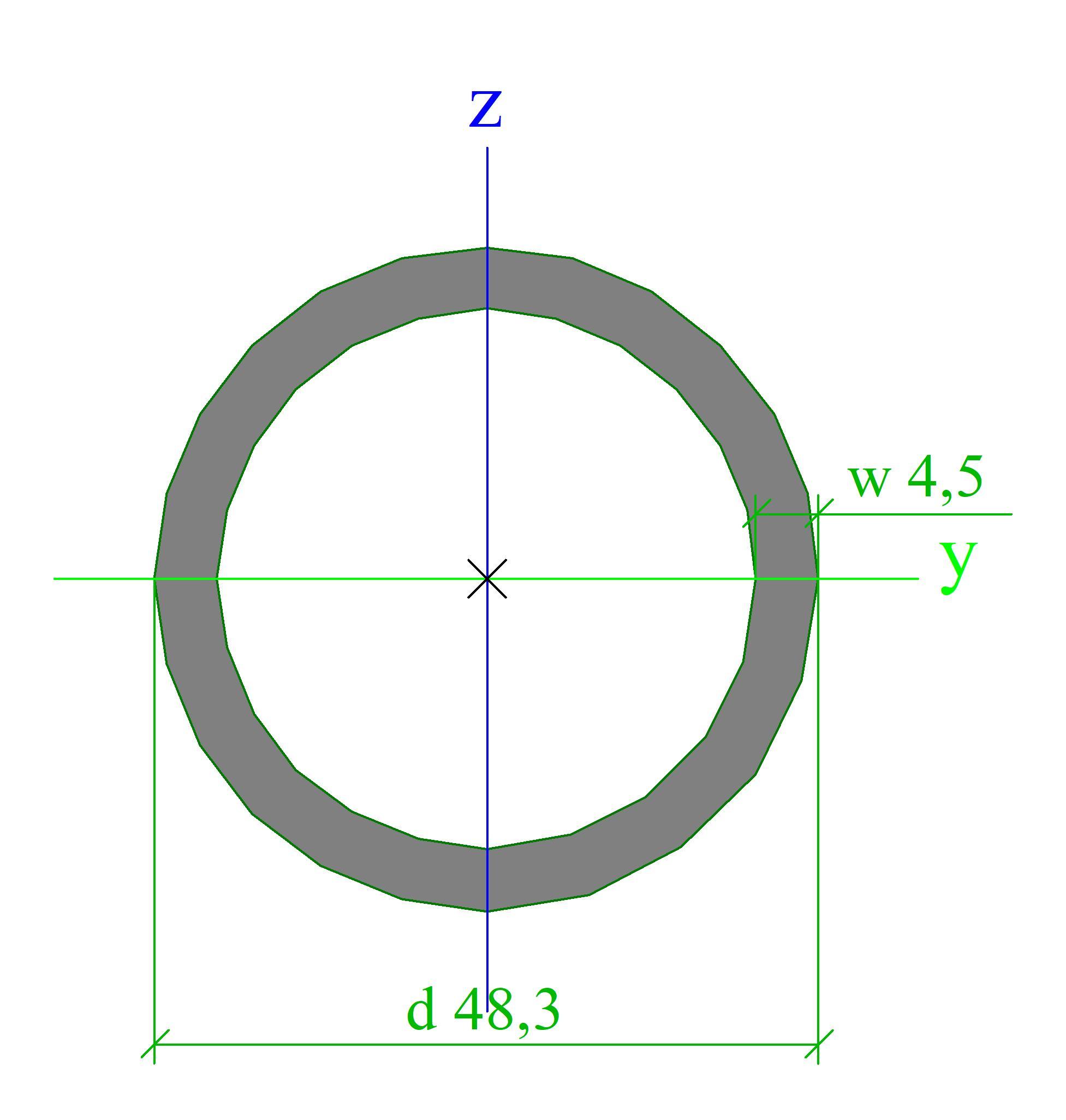 Kreisprofil Stabformtyp Dickwandig Materialangabe EN-AW 6082 (ER/B) T6 (20-150) Herstellung gewalzt A [cm 2] 18,09 Ay [cm 2], Az [cm 2] 16,29 16,29 AL [m 2/m], AD [m 2/m] 0,15 0,15 cYUCS [mm], cZUCS [mm] 24,0 24,0 0,00 Iy [cm 4], Iz [cm 4] 25,51 25,51 iy [mm], iz [mm] 11,9 11,9 Wely [cm 3], Welz [cm 3] 10,63 10,63 Wply [cm 3], Wplz [cm 3] 18,14 18,14 Mply+ [kNcm], Mply- [kNcm] 479,09 479,09 Mplz+ [kNcm], Mplz- [kNcm] 479,09 479,09 dy [mm], dz [mm] 0,0 0,0 It [cm 4], Iw [cm 6] 52,21 0,00 0,0 0,0 Bild