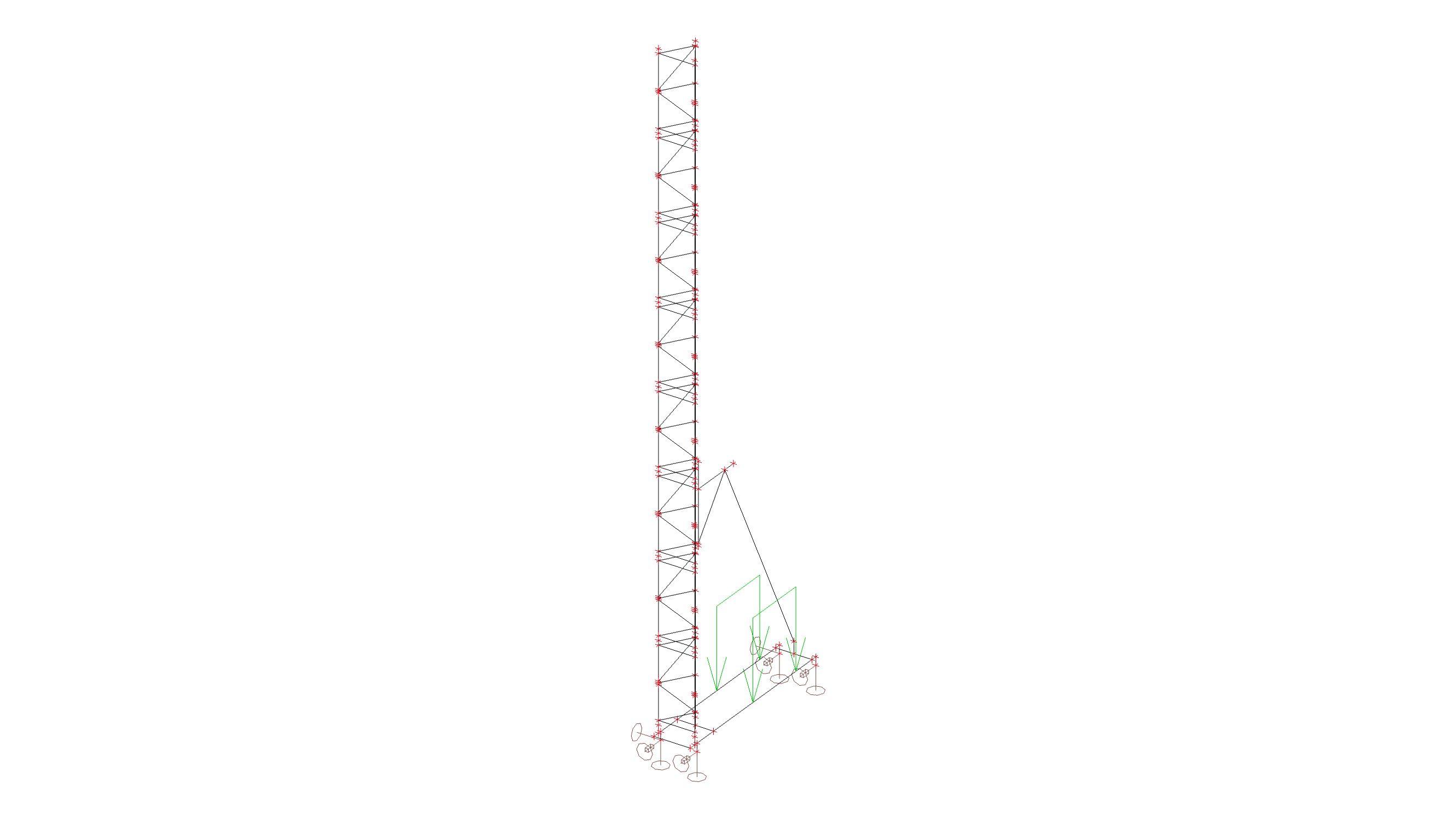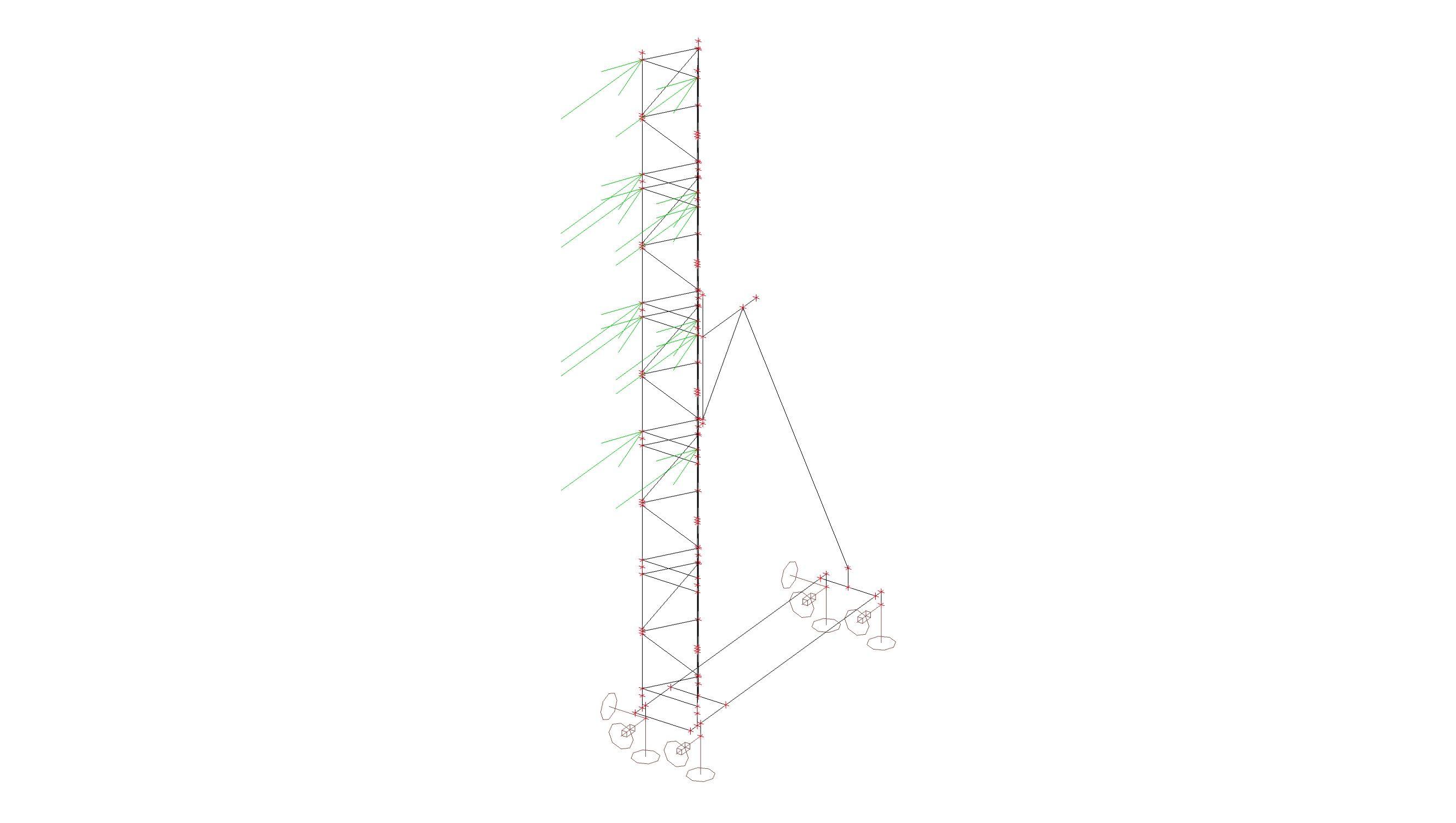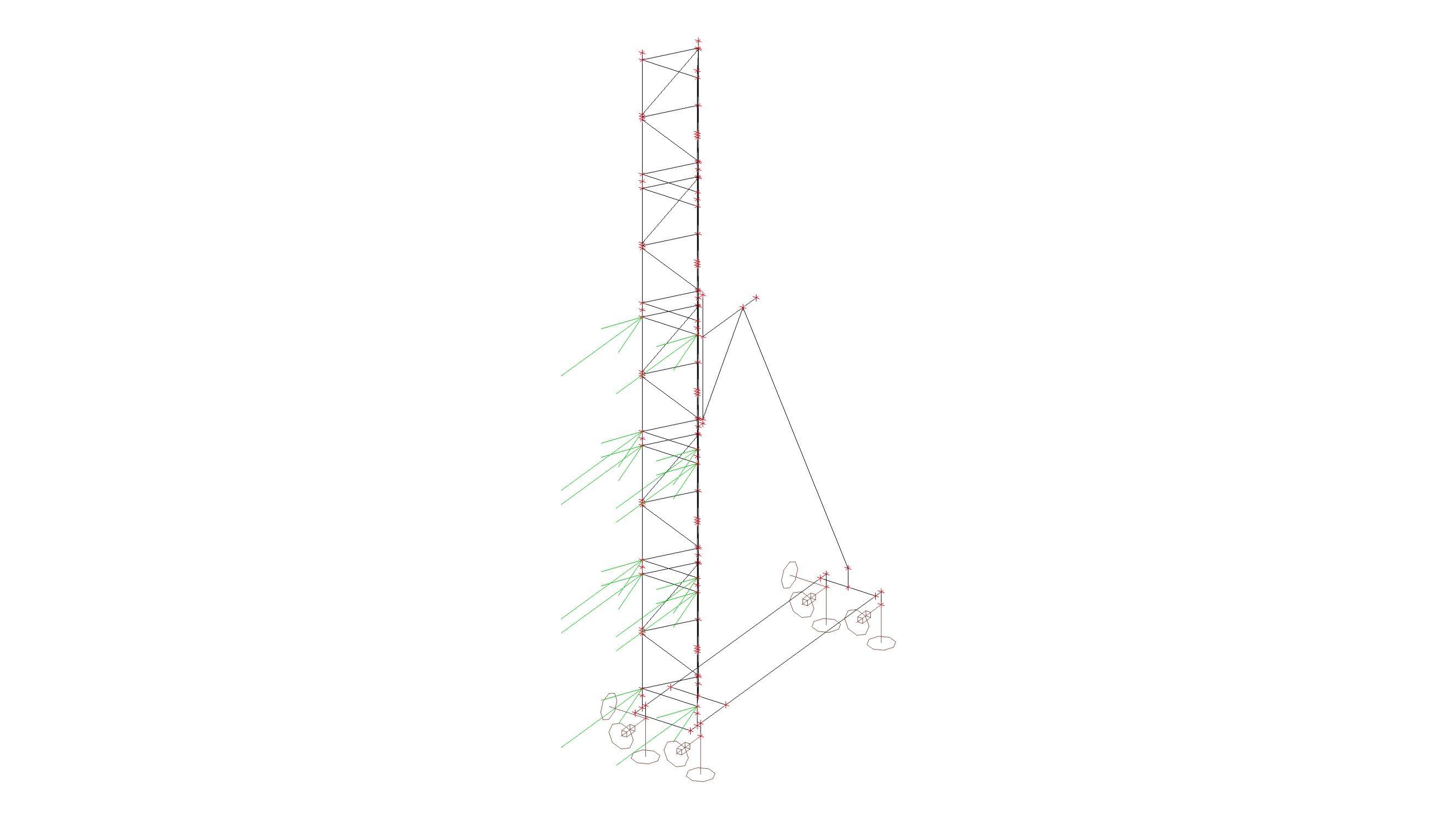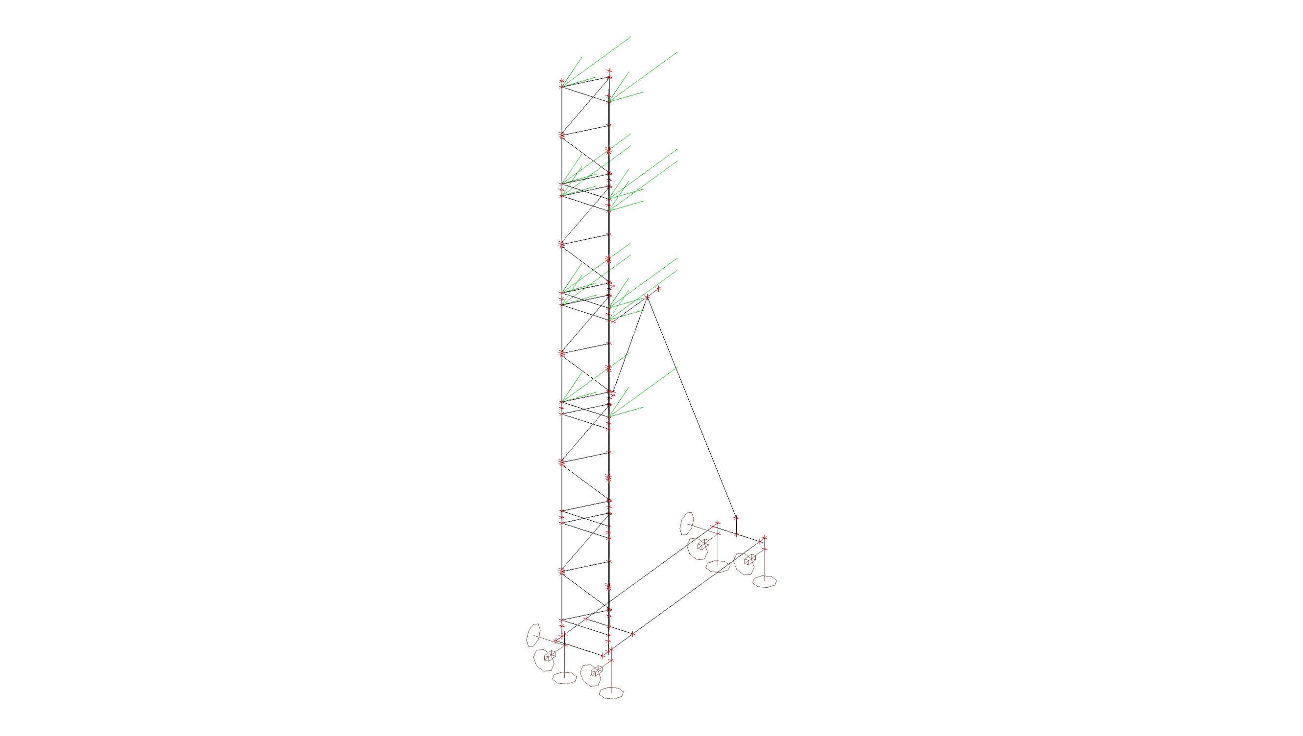 Das Tragwerk besteht aus vertikalen Tri-Frame Traversen und bodenseitigen Stahlrahmen für die Ballastierung. Zur Aussteifung sind Diagonale angeordnet.