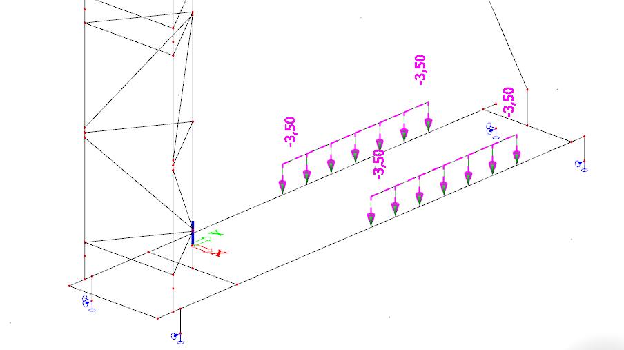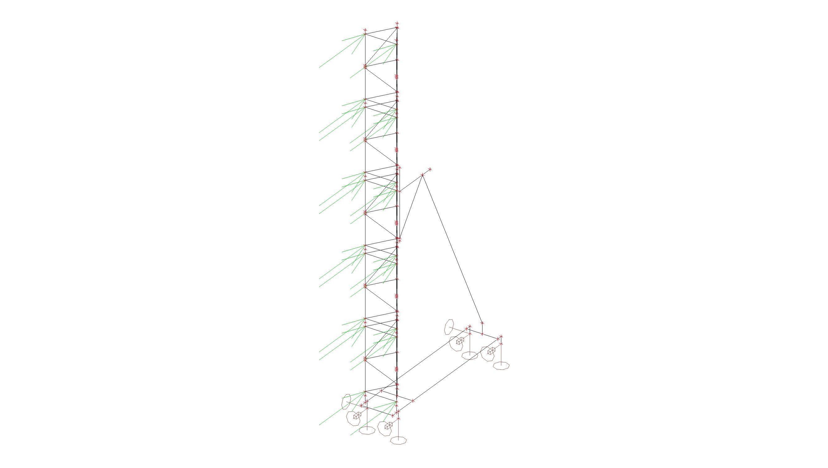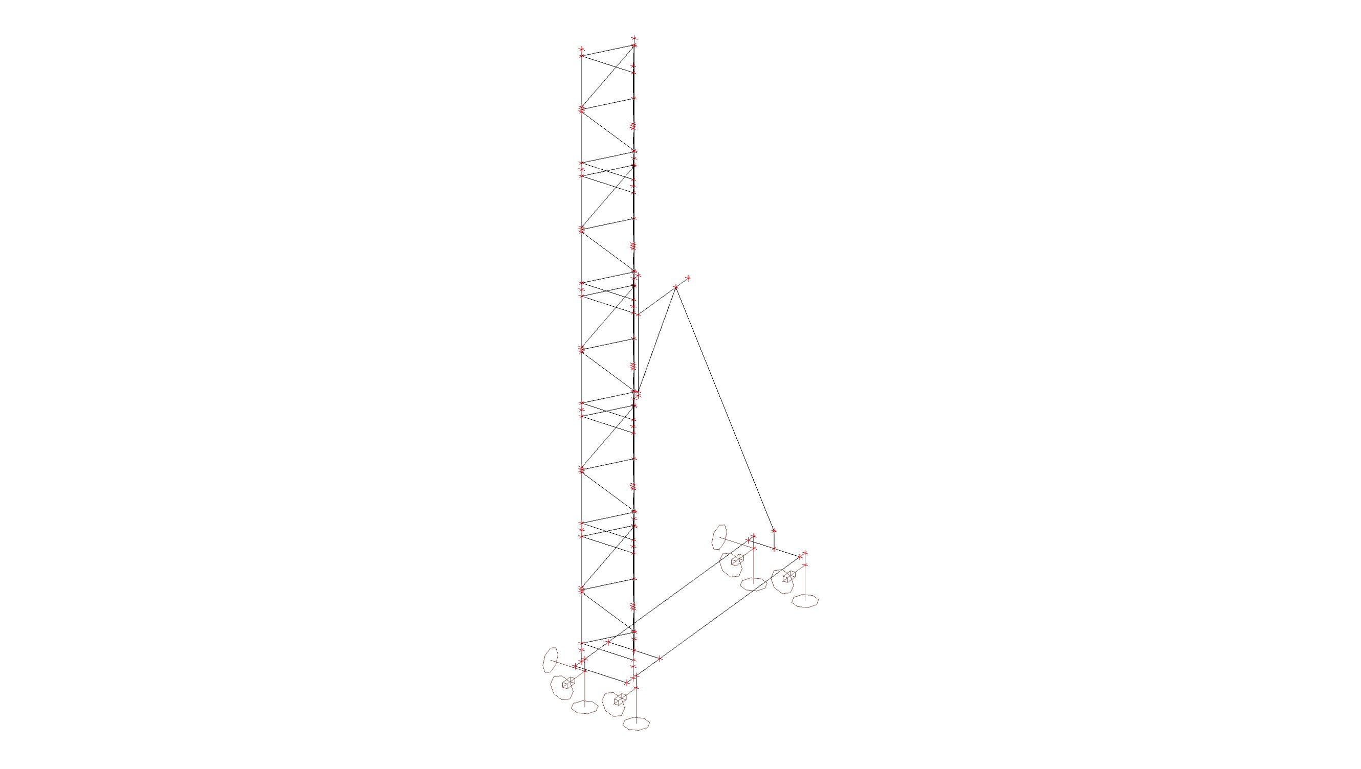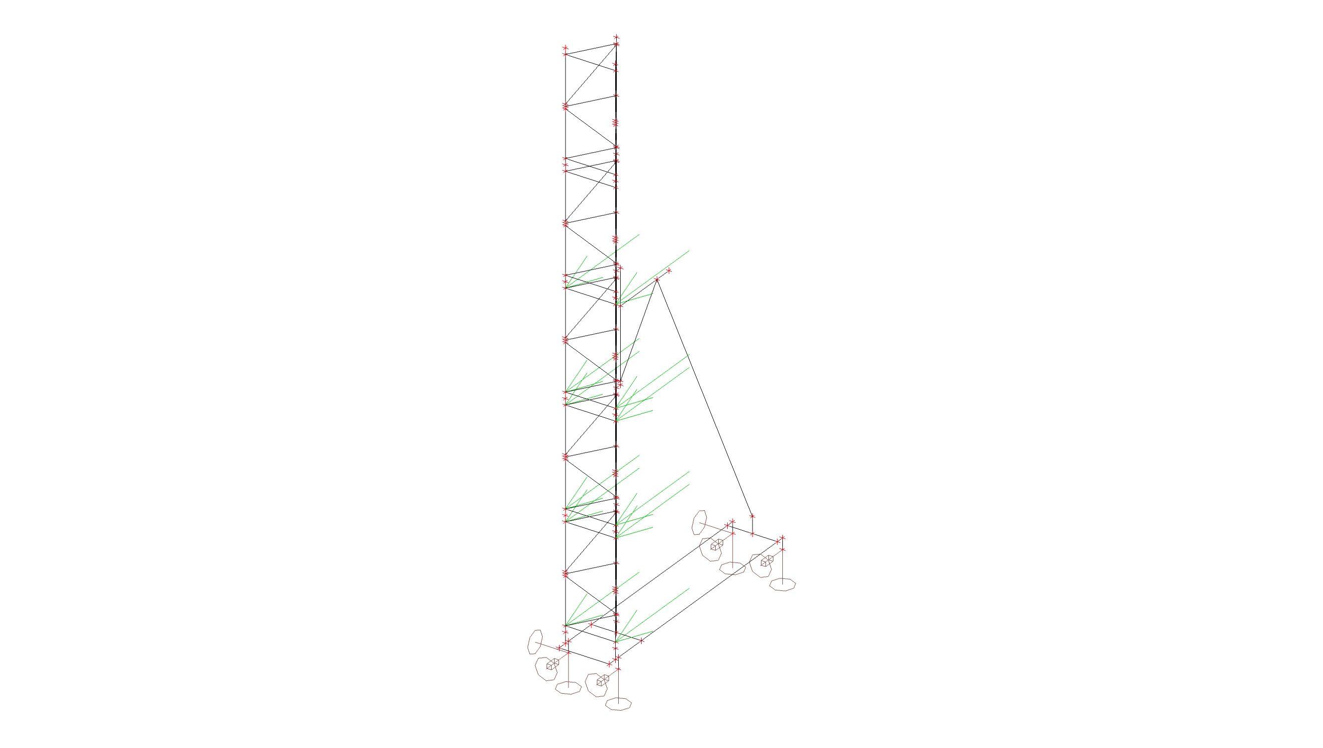 Das Tragwerk besteht aus vertikalen Tri-Frame Traversen und bodenseitigen Stahlrahmen für die Ballastierung. Zur Aussteifung sind Diagonale angeordnet.