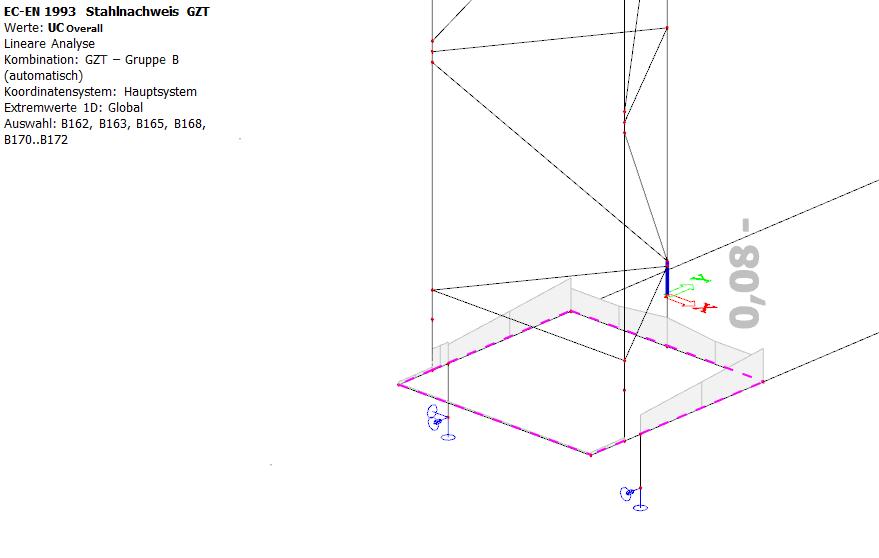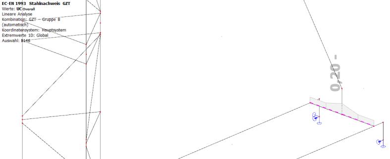 Name dx LF Querschnitt Material UC Overall UCSec UC Stab [mm] [-] [-] [-] B149 0,0 GZT – Gruppe B CS7 - S 355 0,11 0,11 0,07 (automatisch)/1 CFRHS50X50X3 Name Kombinationsvorschrift GZT – Gruppe B (automatisch)/1 1.35*LC1 + 1.35*LC2 + 1.35*LC3 + 1.35*LC5 + 1.35*LC7