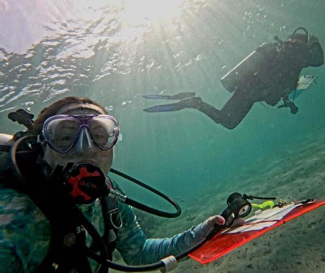Students designed and carried out their own projects to demonstrate their scienti c diving skills under the supervision of faculty and LG2. e diving and skills training took place at Phil Foster Park, near Blue Heron Bridge, which also served as the site for their research on arti cial reefs. Upon completion, the students became certi ed research divers under LG2’s supervision. eir experience not only expanded their academic learning but also opened new avenues for future career opportunities.