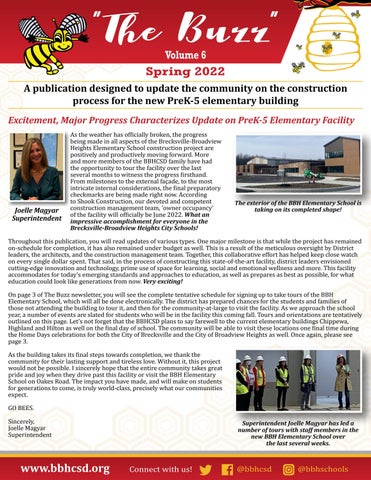 Volume 6 Spring 2022 A publication designed to update the community on the construction process for the new PreK-5 elementary building Excitement, Major Progress Characterizes Update on PreK-5 Elementary Facility