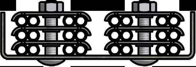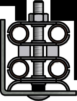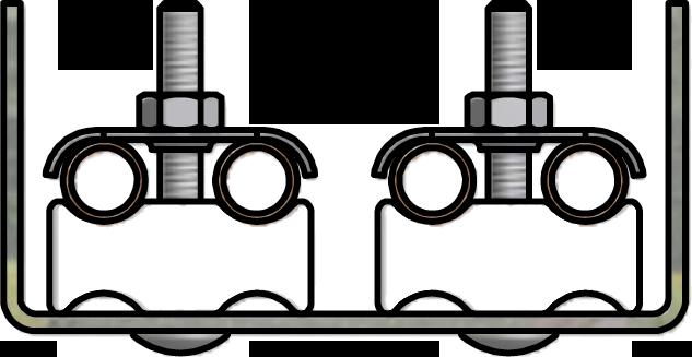 Low profile JCWCO Tubing Bolts are provided with all standard 1” deep TUBETRACK® tray fittings and Flat Clamps.
