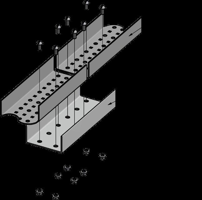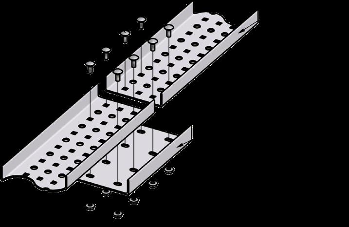 TUBETRACK® uses only tightenable fasteners to secure tray connections. Splices bolt through the first and third round holes in each end of a splice, in both angle legs for maximum strength. Bolt sets are supplied with each TUBETRACK® splice and bend. Stainless steel bolting is standard with stainless steel and aluminum TUBETRACK® fittings. Stainless steel bolting is optional with galvanized TUBETRACK® for an additional cost. Contact factory for additional information.
