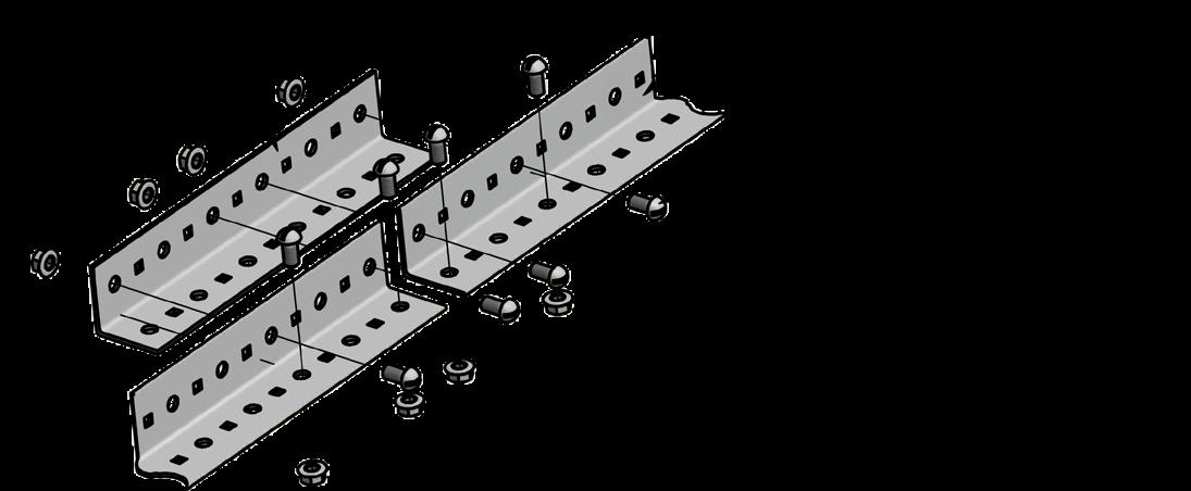 Structural connections for 2” and 3” TUBETRACK® angle tray splices and bends are provided with 3/8” dia. bolt sets (truss head bolts with flanged locking nuts). Truss head bolts with hex nuts and flat washers are optional upon request. Bolt sets are supplied with all TUBETRACK® splices and bends.