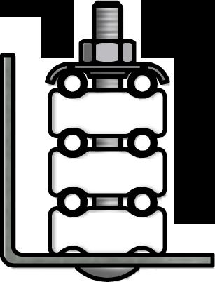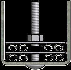 1/2” x 3” stud. Withstands up to 1,000 lb. upward pulling force. Fastener assembly used as a stable base on which to mount other devices to a grating surface.