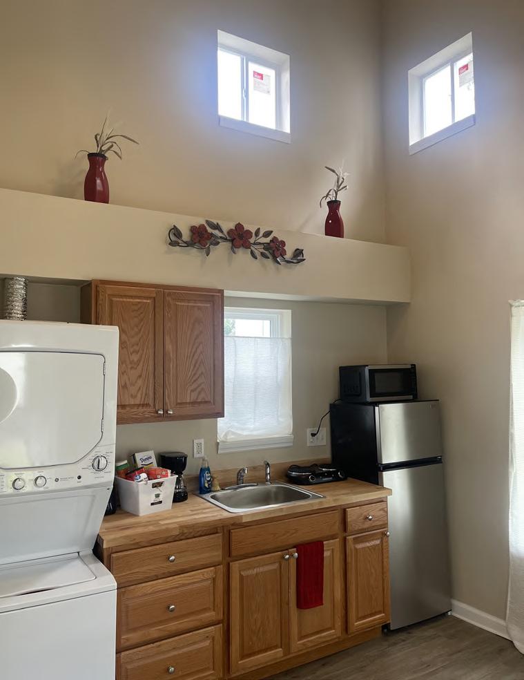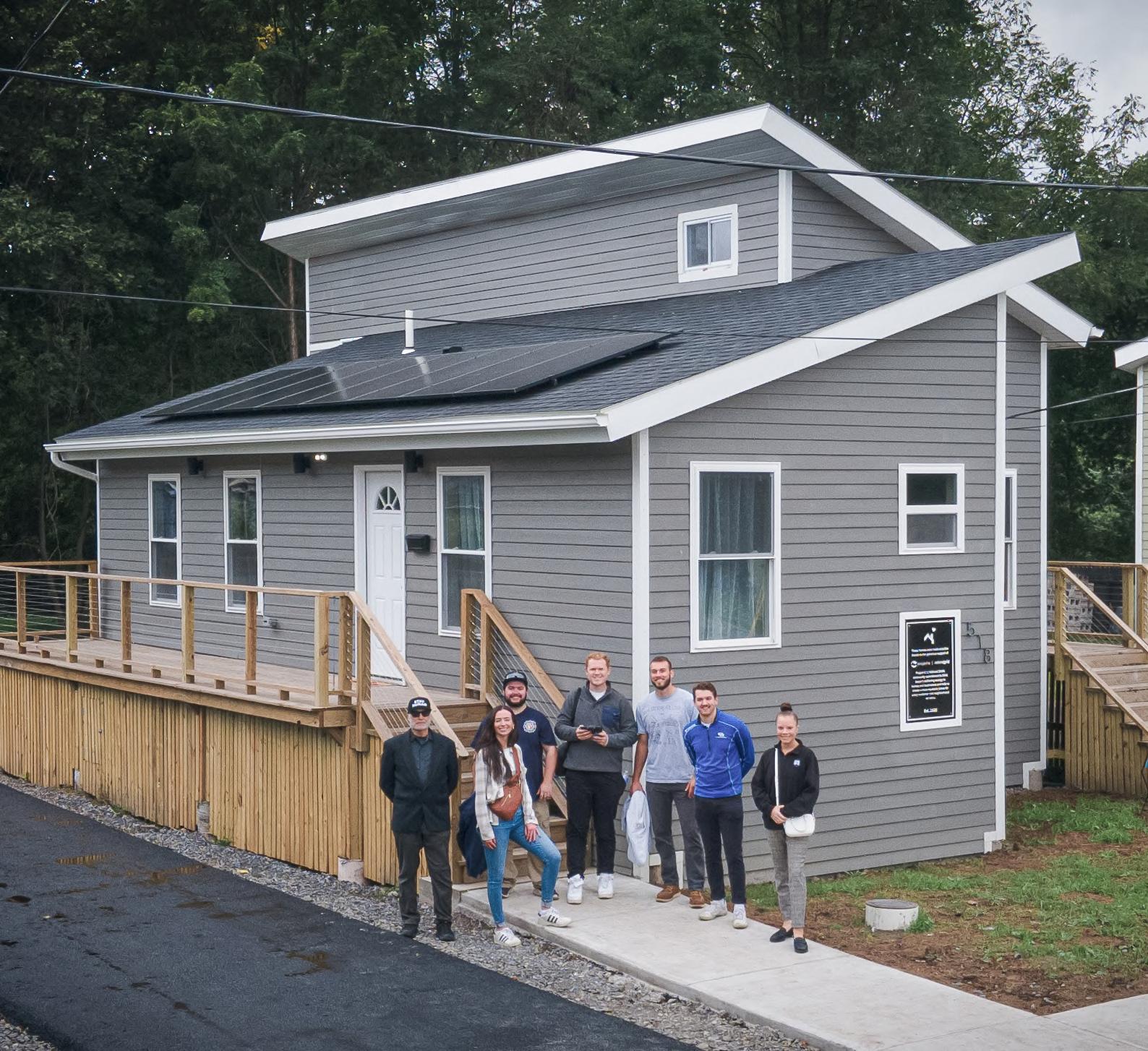 The Small Built Works Program at the University at Buffalo is led by Clinical Assistant Professor and Registered Architect Brad Wales [far left in image above]. In 2021, the program was in collaboration with the not-for-profit organization A Tiny Home for Good located in Syracuse, NY. The project developed into three different tiny home prototypes [groups of approximately 5 students each], all of which were then built for people currently facing homelessness. The design of the tiny homes are centered around maximizing space in a small footprint. A Tiny Home for Good requested an affordable yet sustainable design to help with tenants’ future utility payments. The Rich Street site is located in a flood plane resulting in a pier foundation construction. The homes interiors are all ADA compliant in the event a ramp is required for the tenants’ use.