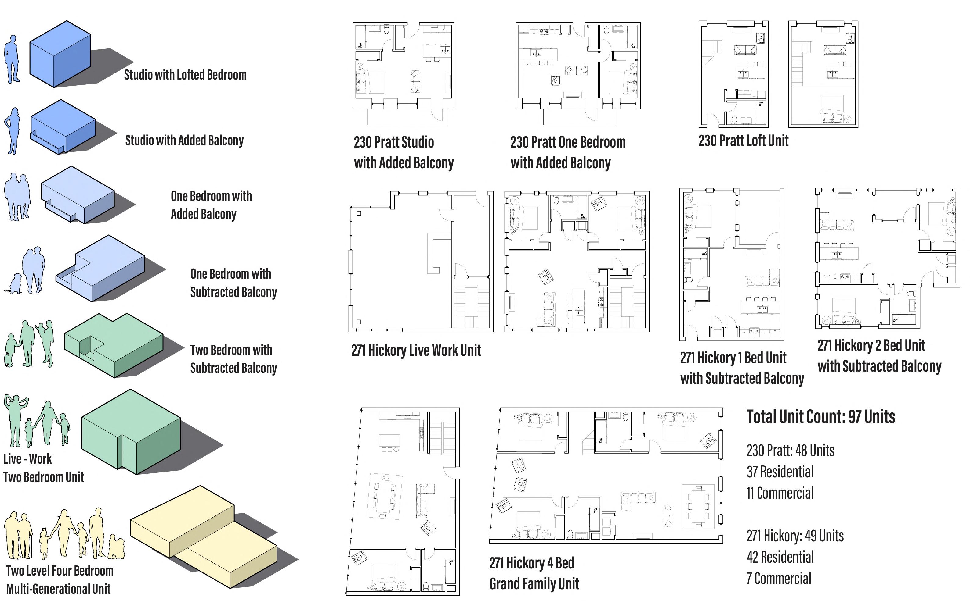 Unit design for 230 Pratt Street and 271 Hickory Street buildings