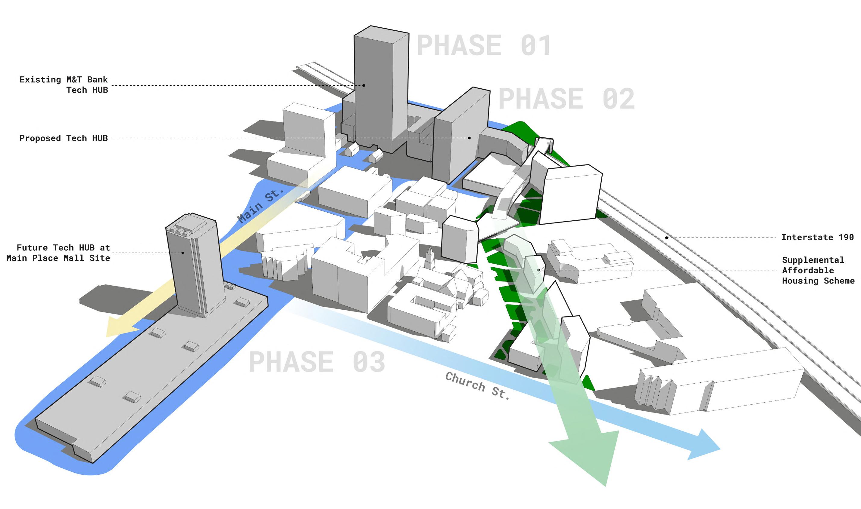 Phasing diagram of the Urban Axis tech HUB expansion in downtown Buffalo, NY