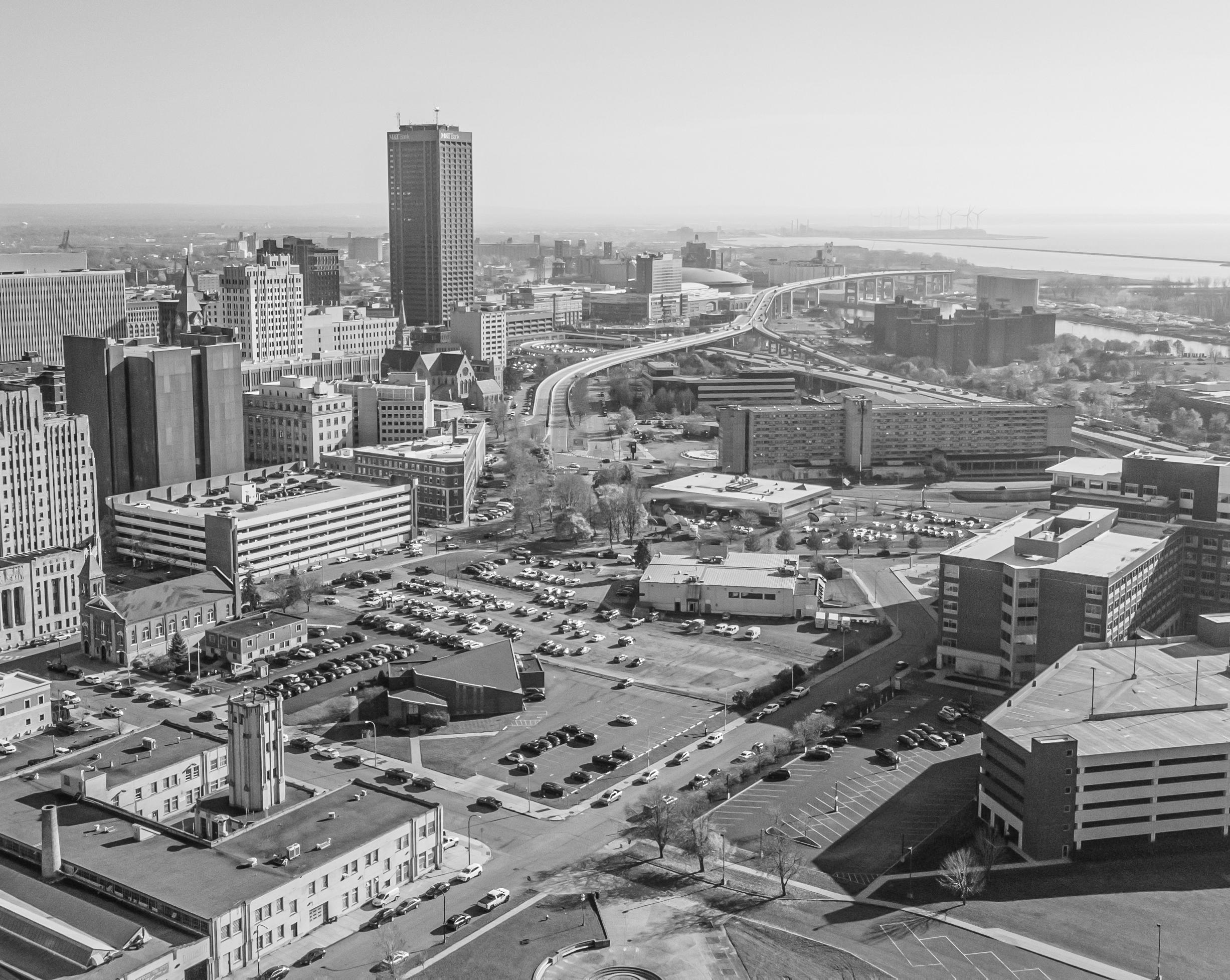 1953 saw the construction of the Skyway, a limited access bridge linking downtown Buffalo and the outer harbor; the ramps to access this highway take up considerable public space in downtown. By removing a large portion of the Skyway and its ramps the historic Terrace can be reclaimed as public space that enhances downtown Buffalo by providing opportunities to live, work and play. The new public space will serve as a connection between affordable housing at the north end of the site and an expanded tech hub adjacent to Seneca One with recreation and shopping along the Terrace. A portion of the Skyway will be reused to become an elevated amphitheater and viewing platform. The new urban space will reference the historic terrace and view-sheds that have been lost to urban renewal while acknowledging the needs of Buffalo today.