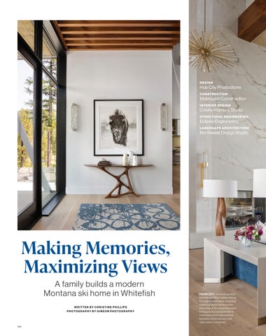 WHEN THE FUTURE OWNERS of a home on Trader Road in Jackson, Wyoming step outside their door, they’ll see the natural beauty the land offers from a bird’s-eye perspective. Perched on top of a hill in the gated Gros Ventre North community, the meticulously curated lawn and landscape give way to an aspen-filled forest down the sloping hillside, providing a panorama of the Tetons, the Snake River, and sweeping Walton Ranch in the valley below. While the vistas are takeyour-breath-away spectacular, the home’s feeling of seclusion is equally remarkable, given its proximity to downtown Jackson Hole, Teton Village, and Grand Teton National Park.