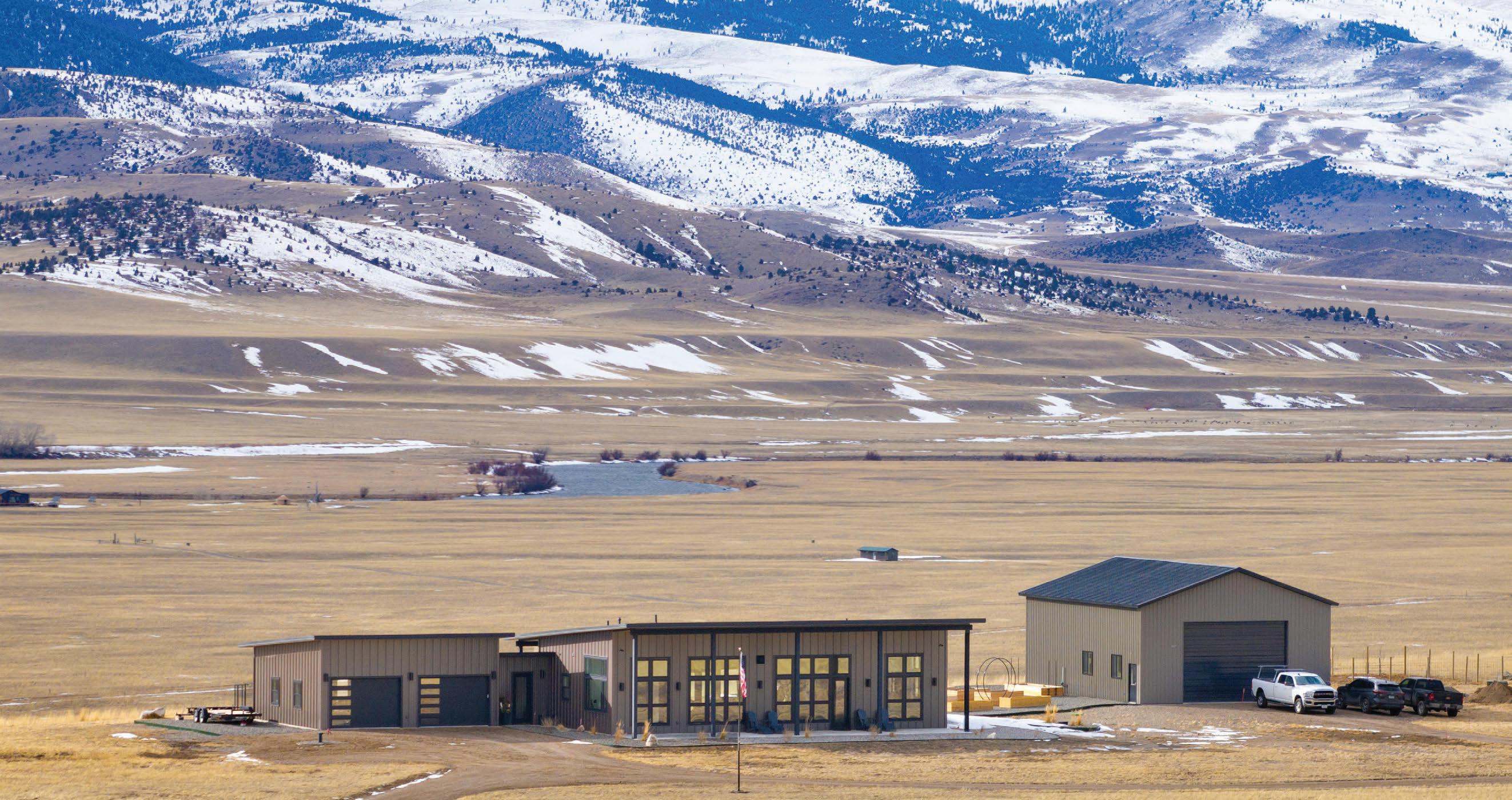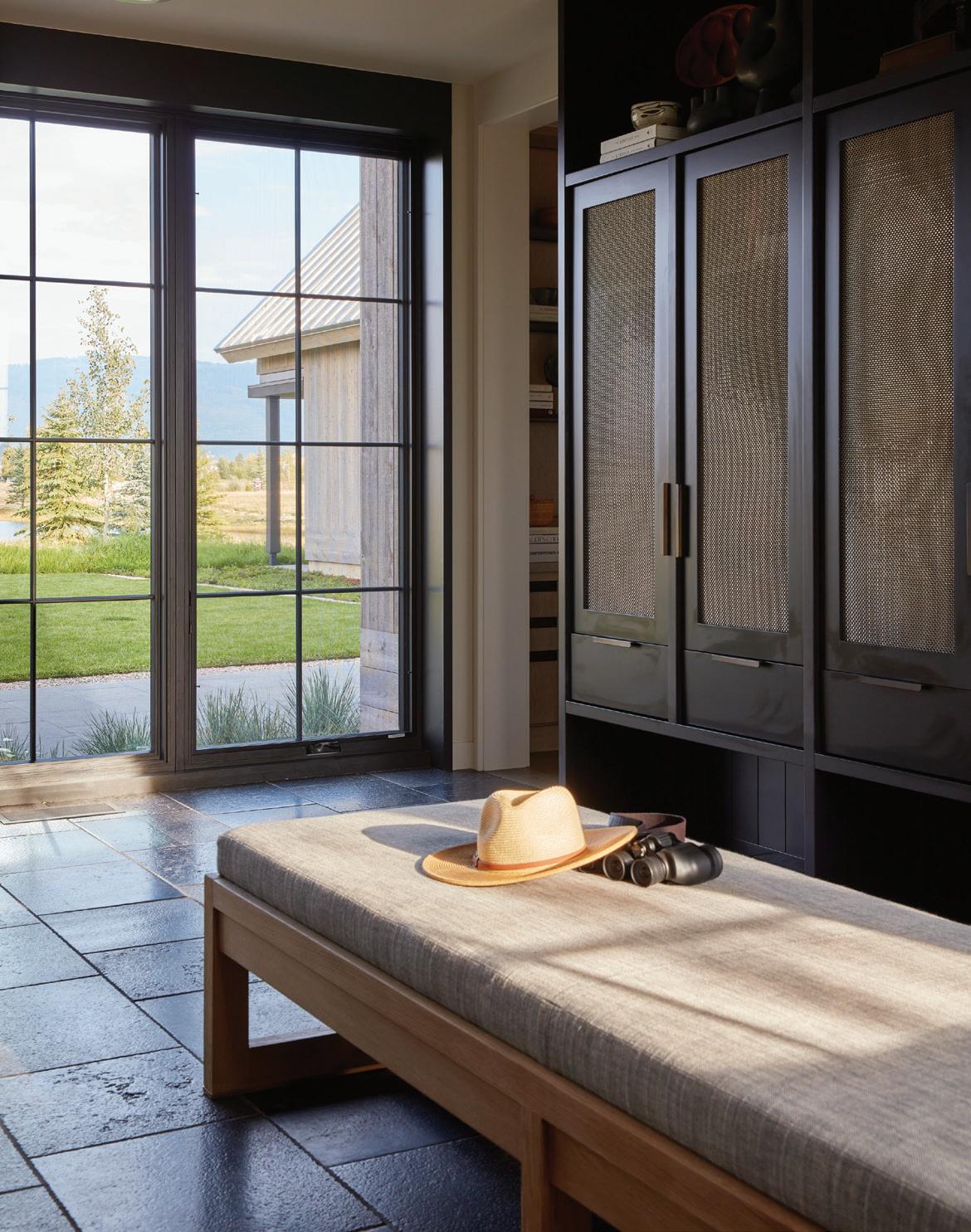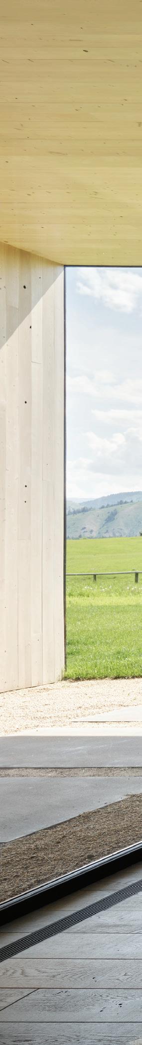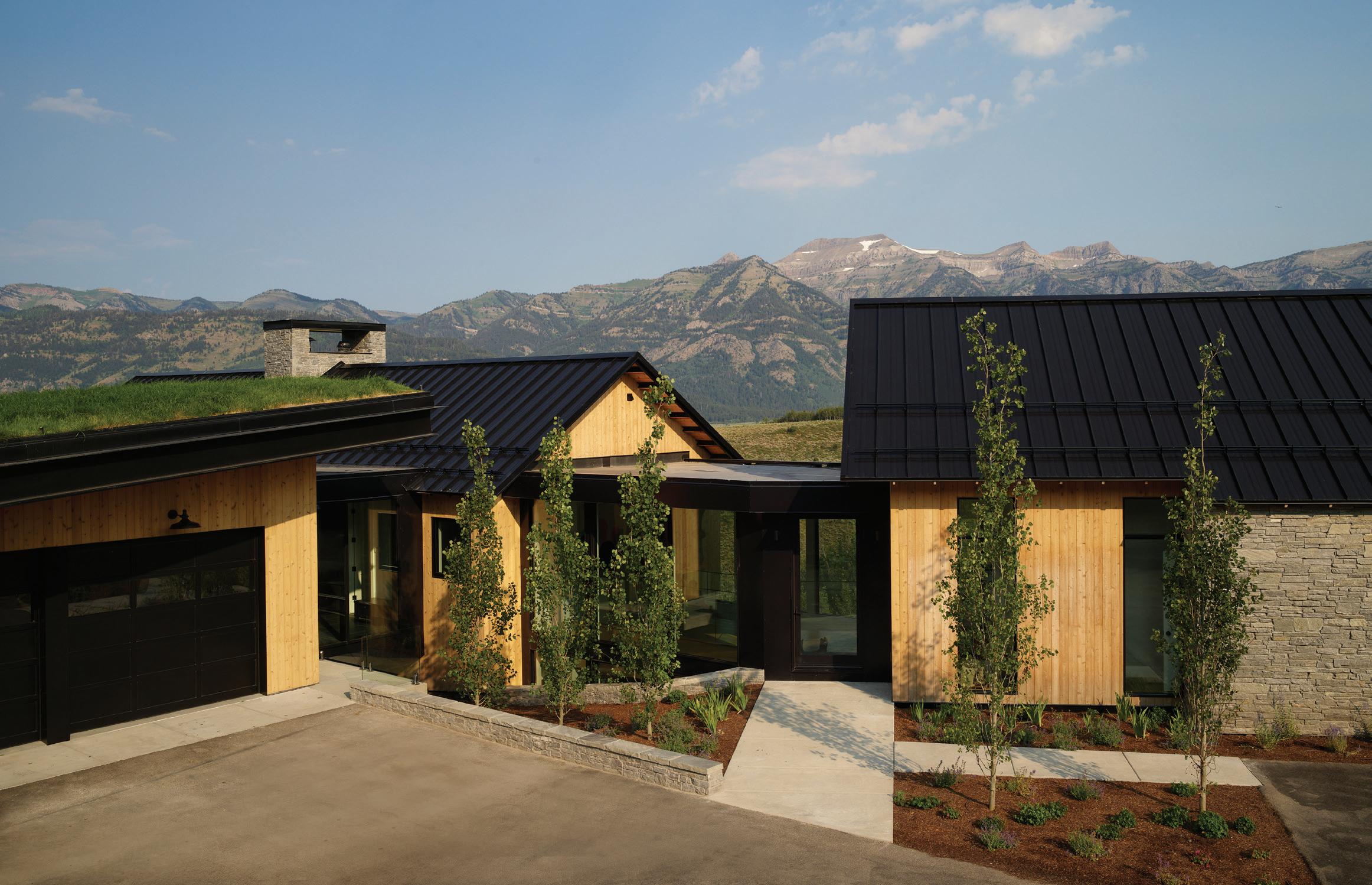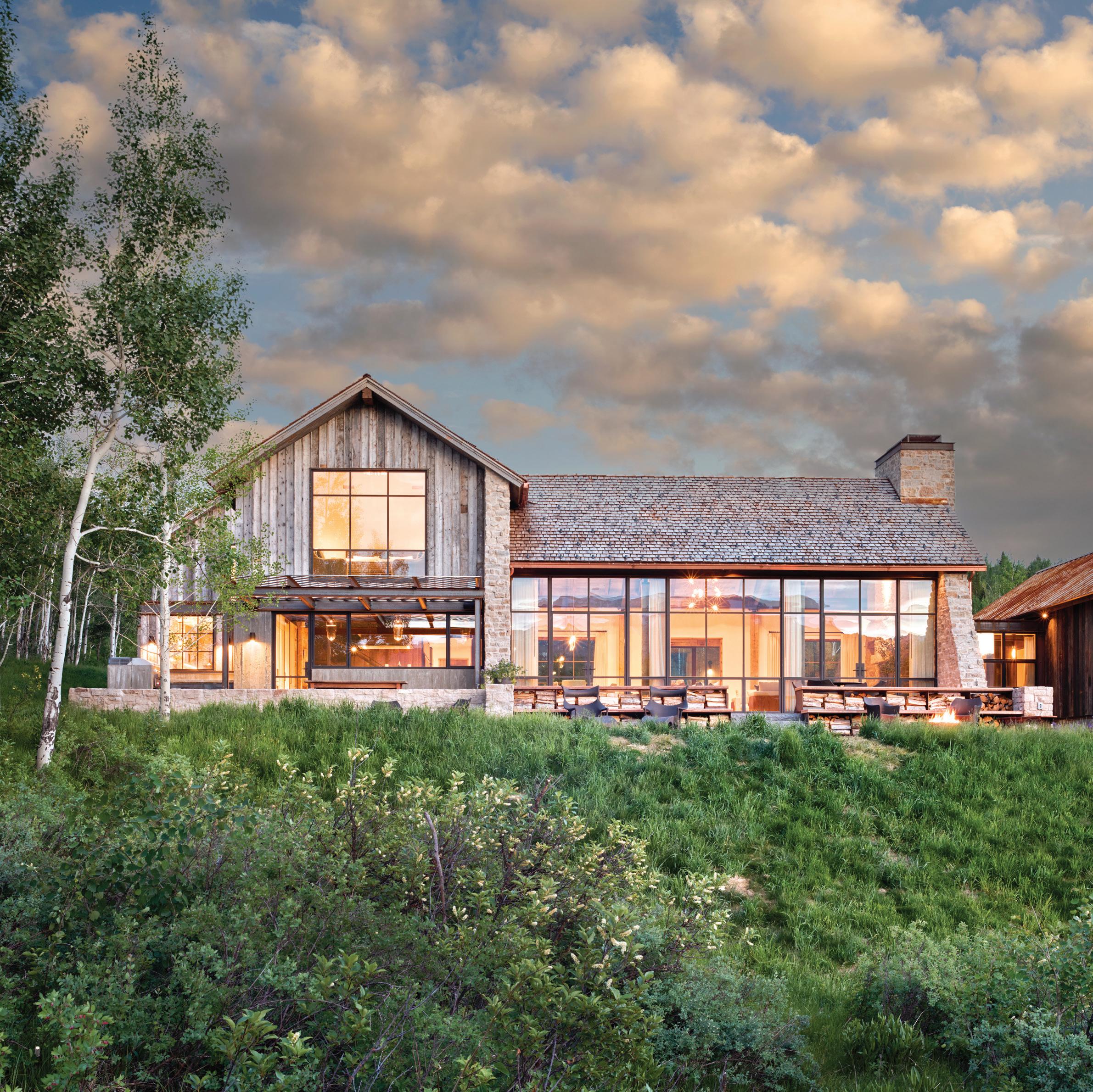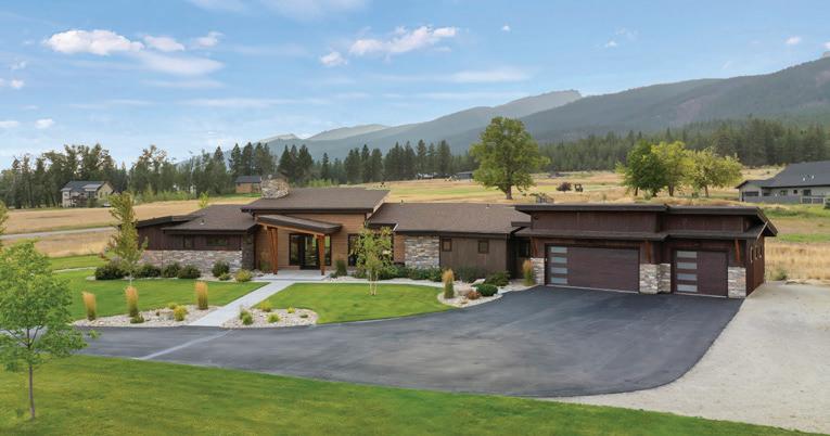 “The northwest-facing home has incredible views to the west, some Teton views to the north, and looks over ranchland that is in a protected agricultural conservation easement, so there will not be future development,” says principal architect Jamie Farmer of Farmer Payne Architects. “Its Westerncontemporary style is a mix of traditional gable forms, timeless materials, clean-lined modern glass walls, and steel trusses.”