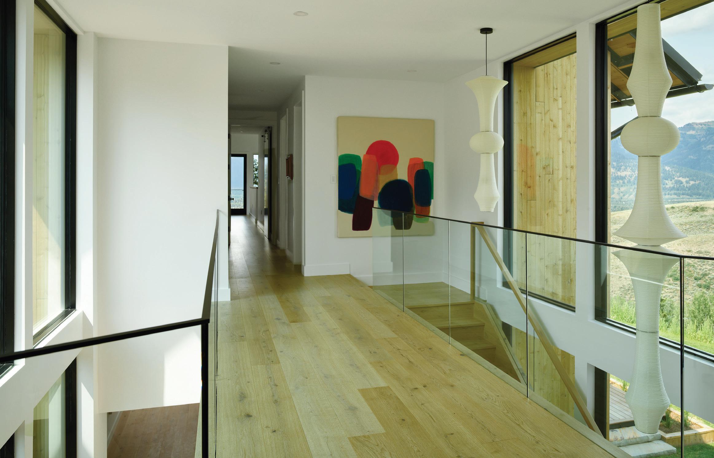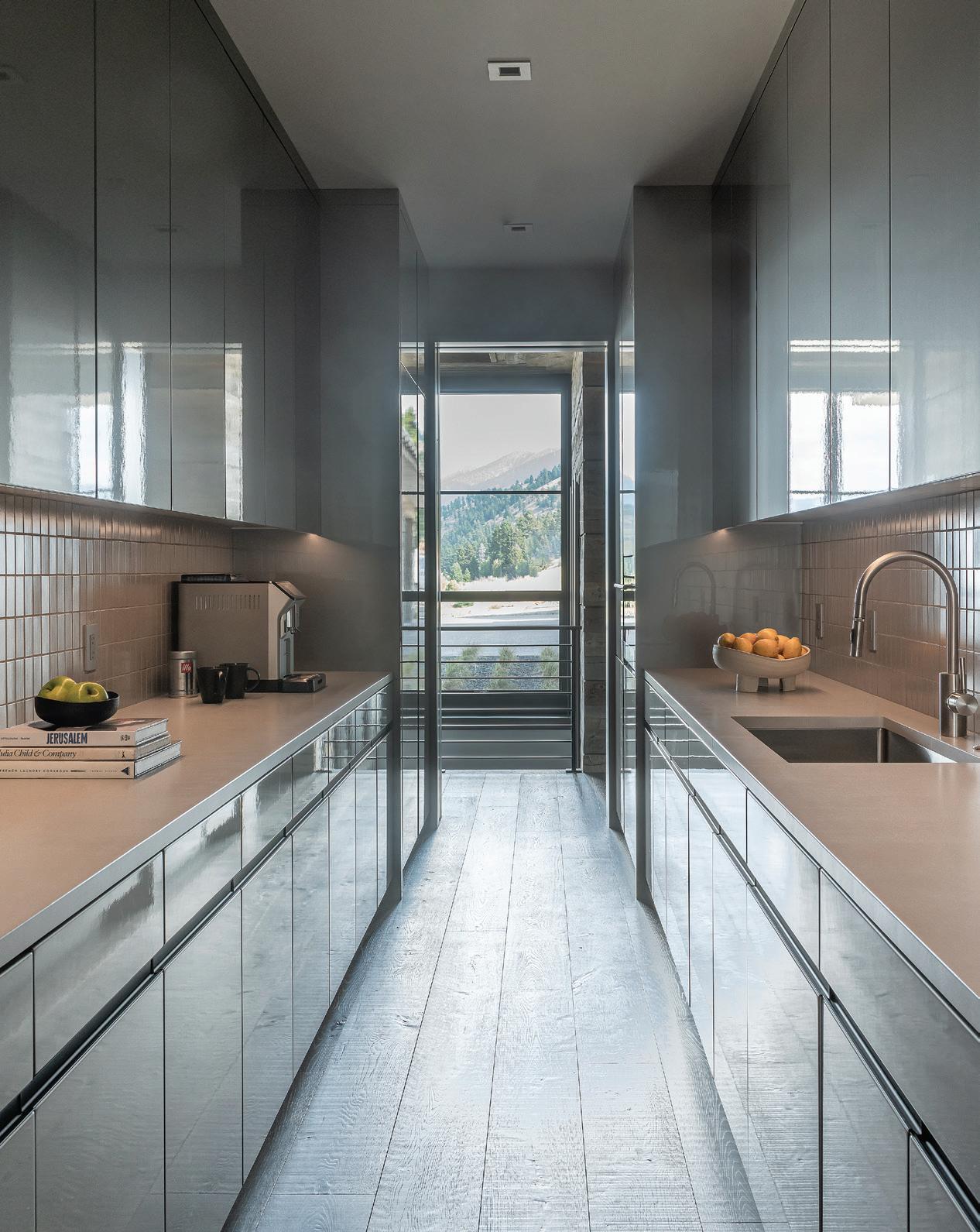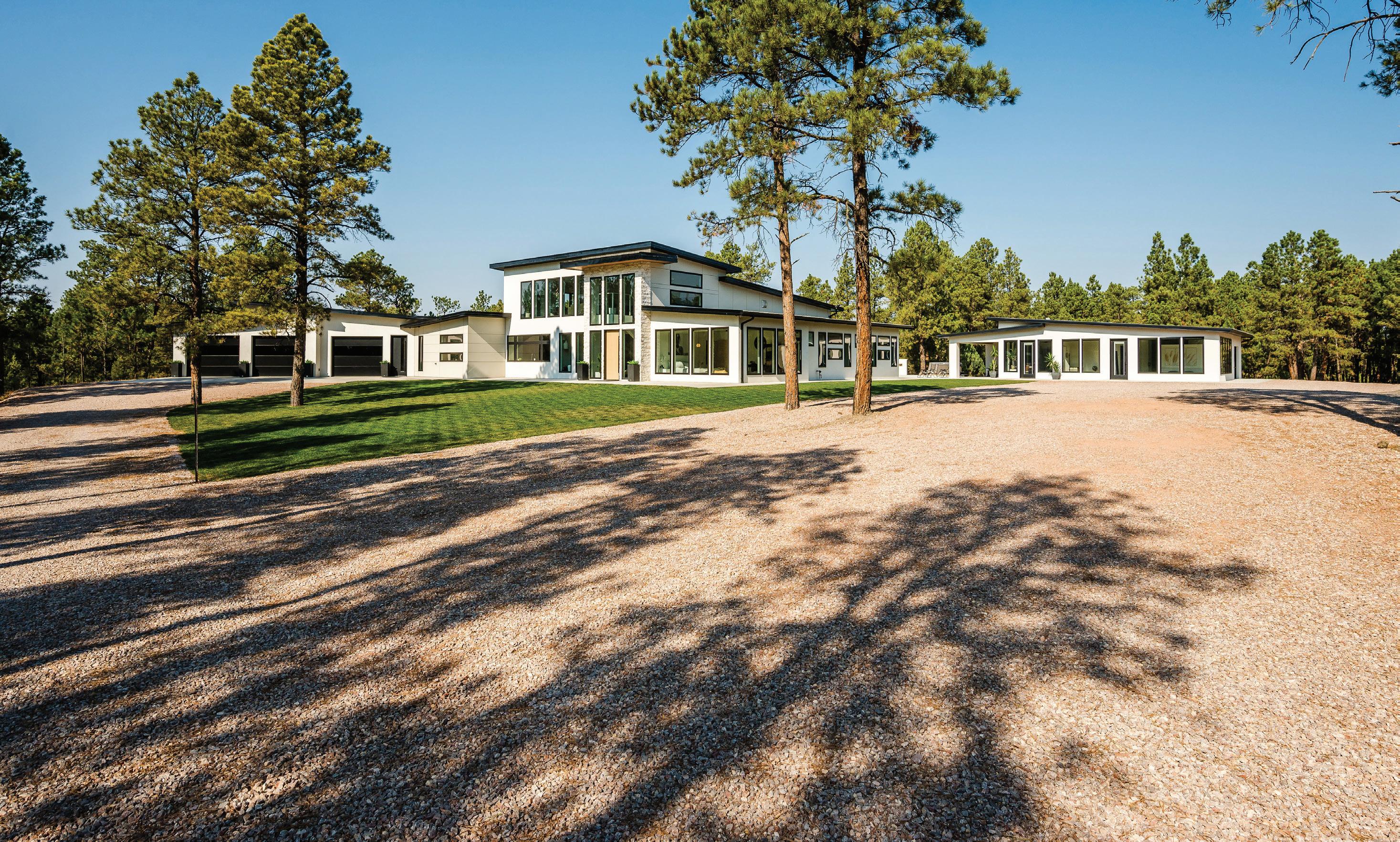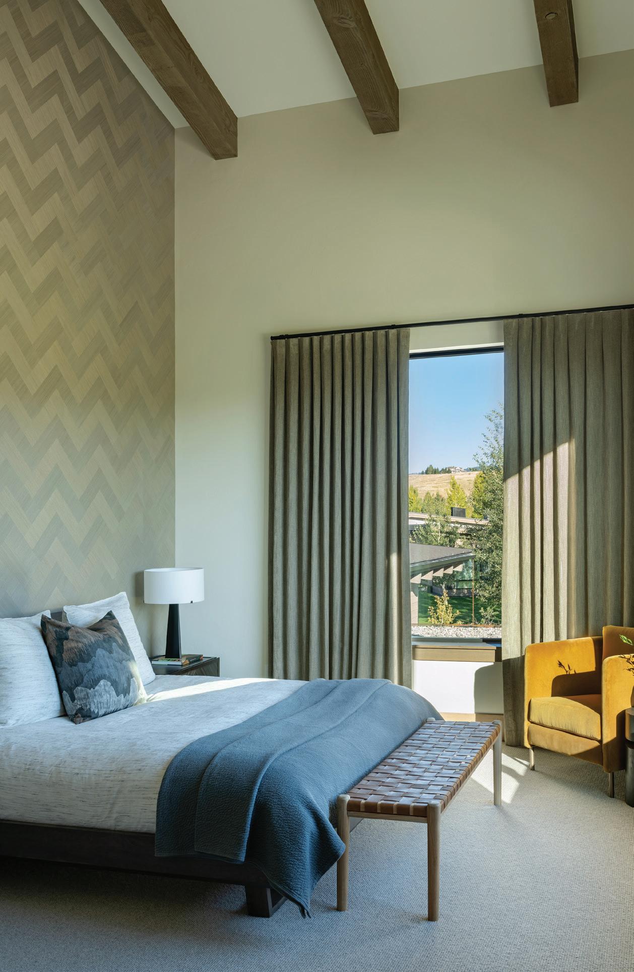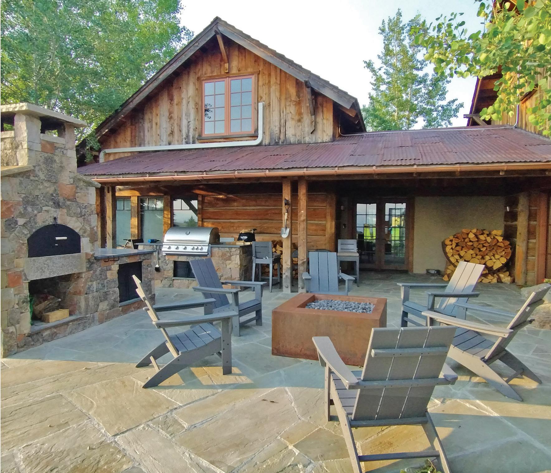 “The northwest-facing home has incredible views to the west, some Teton views to the north, and looks over ranchland that is in a protected agricultural conservation easement, so there will not be future development,” says principal architect Jamie Farmer of Farmer Payne Architects. “Its Westerncontemporary style is a mix of traditional gable forms, timeless materials, clean-lined modern glass walls, and steel trusses.”
