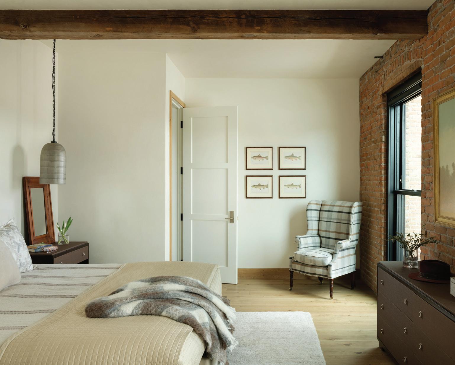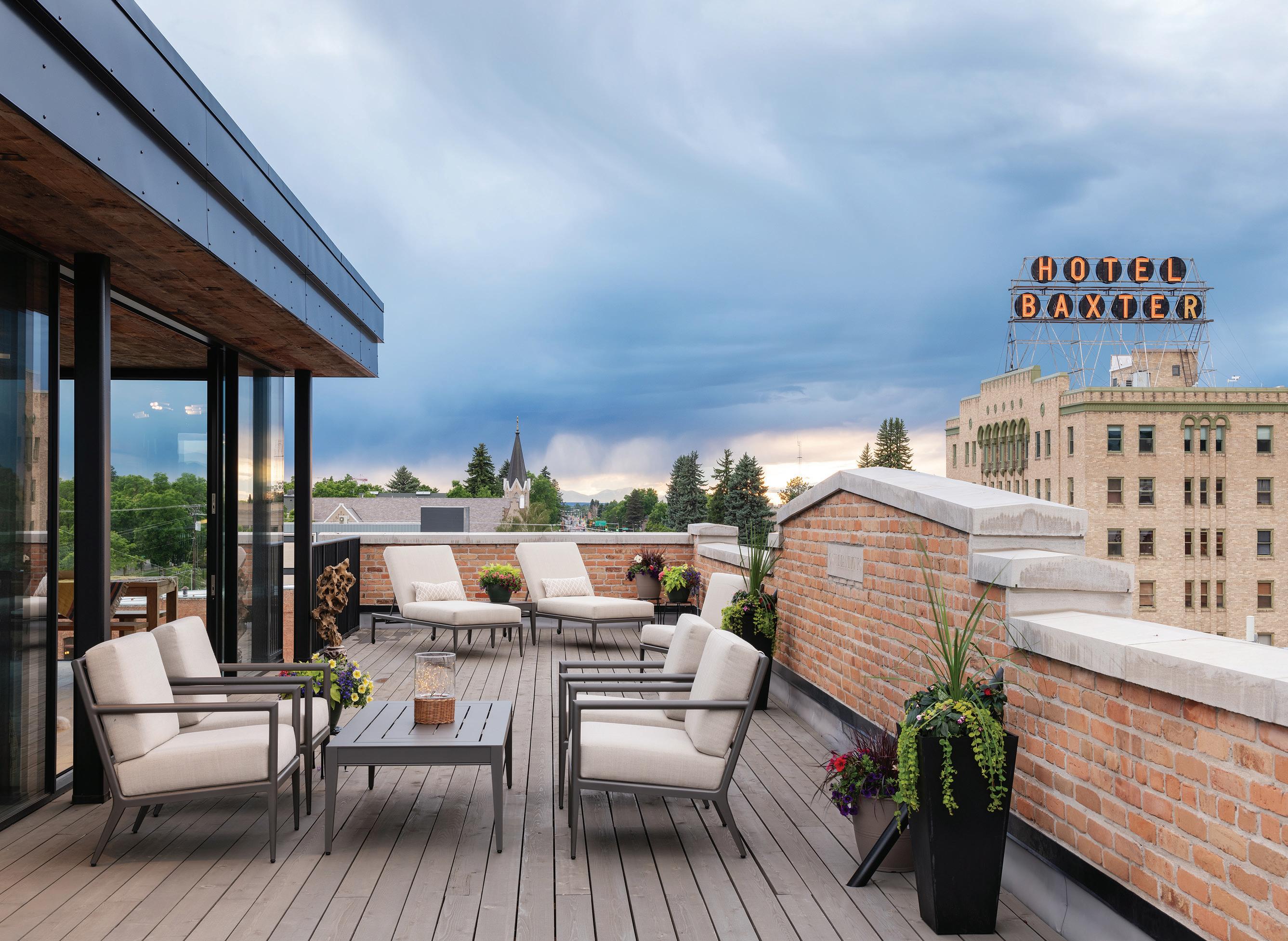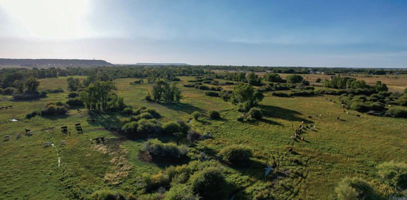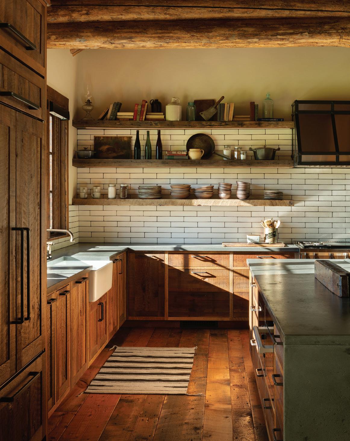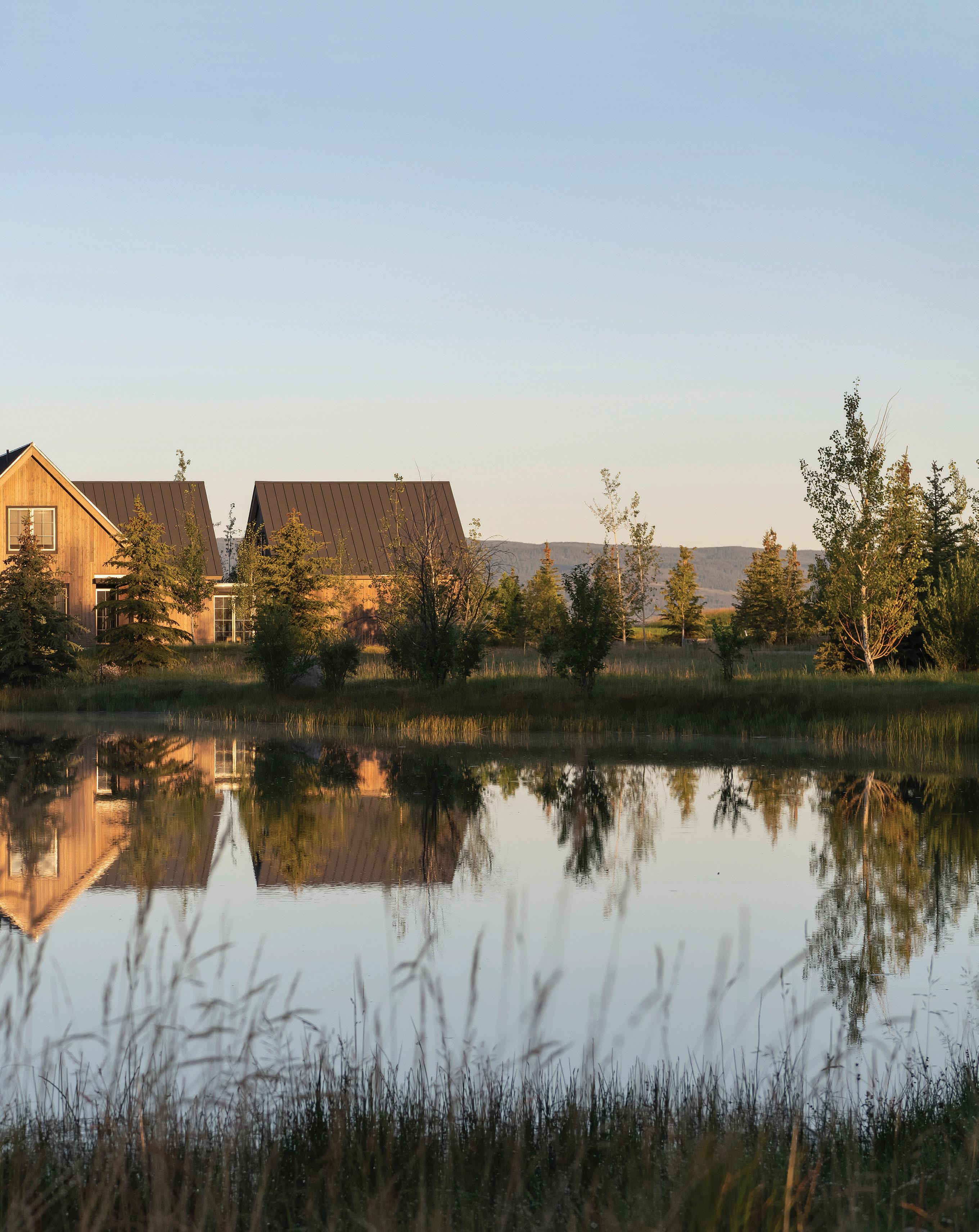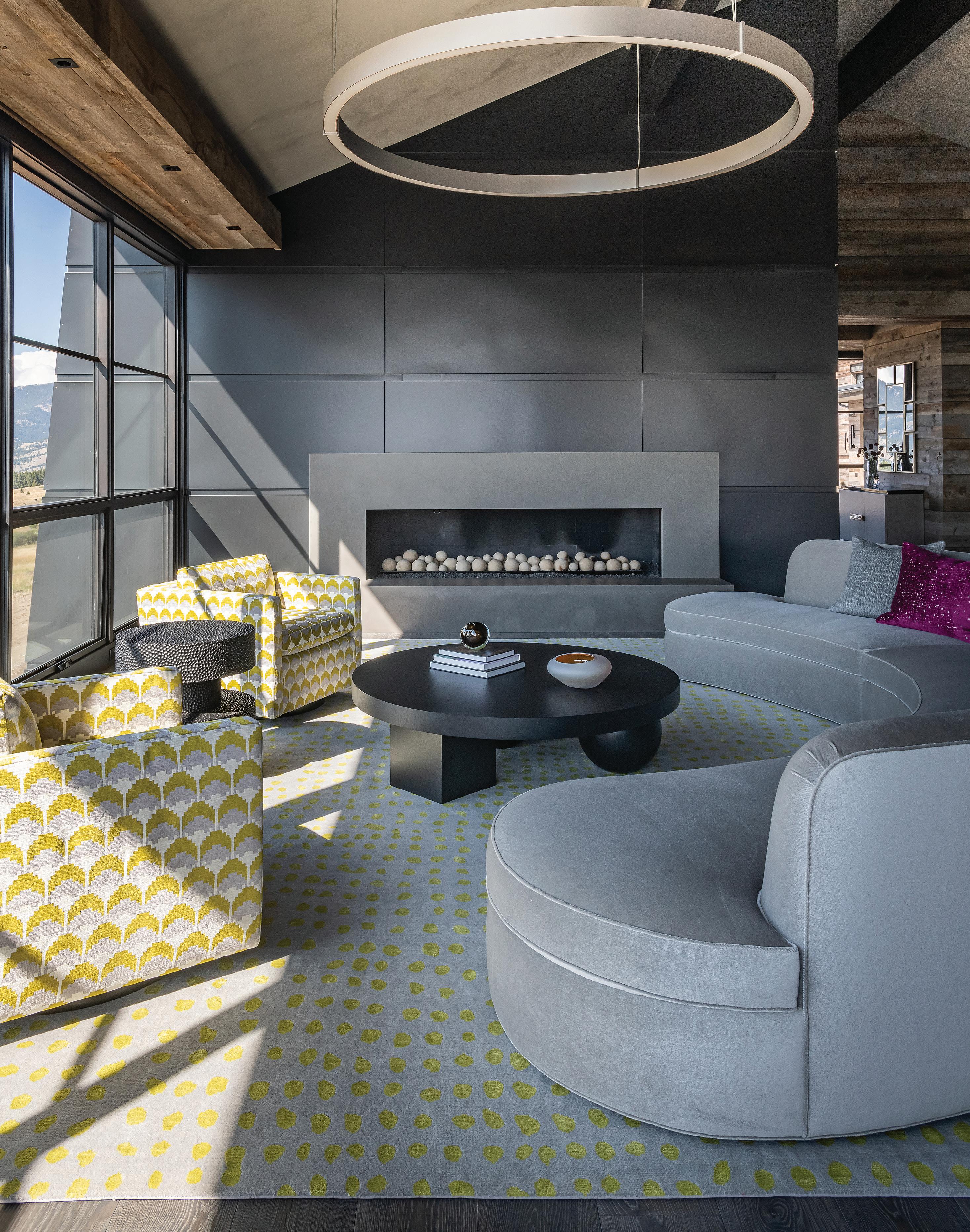 “The northwest-facing home has incredible views to the west, some Teton views to the north, and looks over ranchland that is in a protected agricultural conservation easement, so there will not be future development,” says principal architect Jamie Farmer of Farmer Payne Architects. “Its Westerncontemporary style is a mix of traditional gable forms, timeless materials, clean-lined modern glass walls, and steel trusses.”