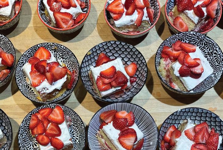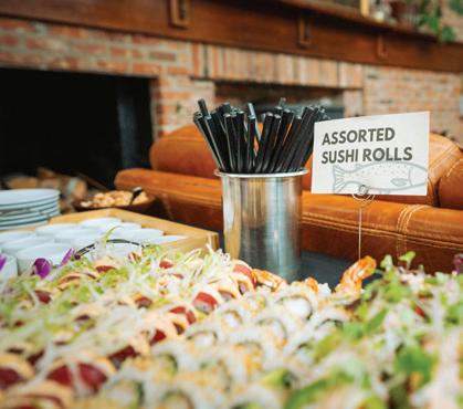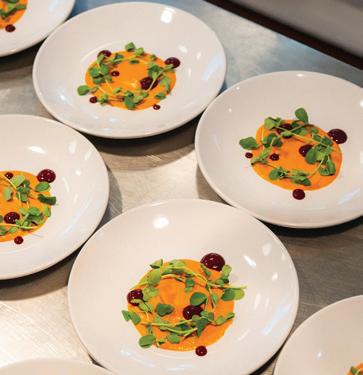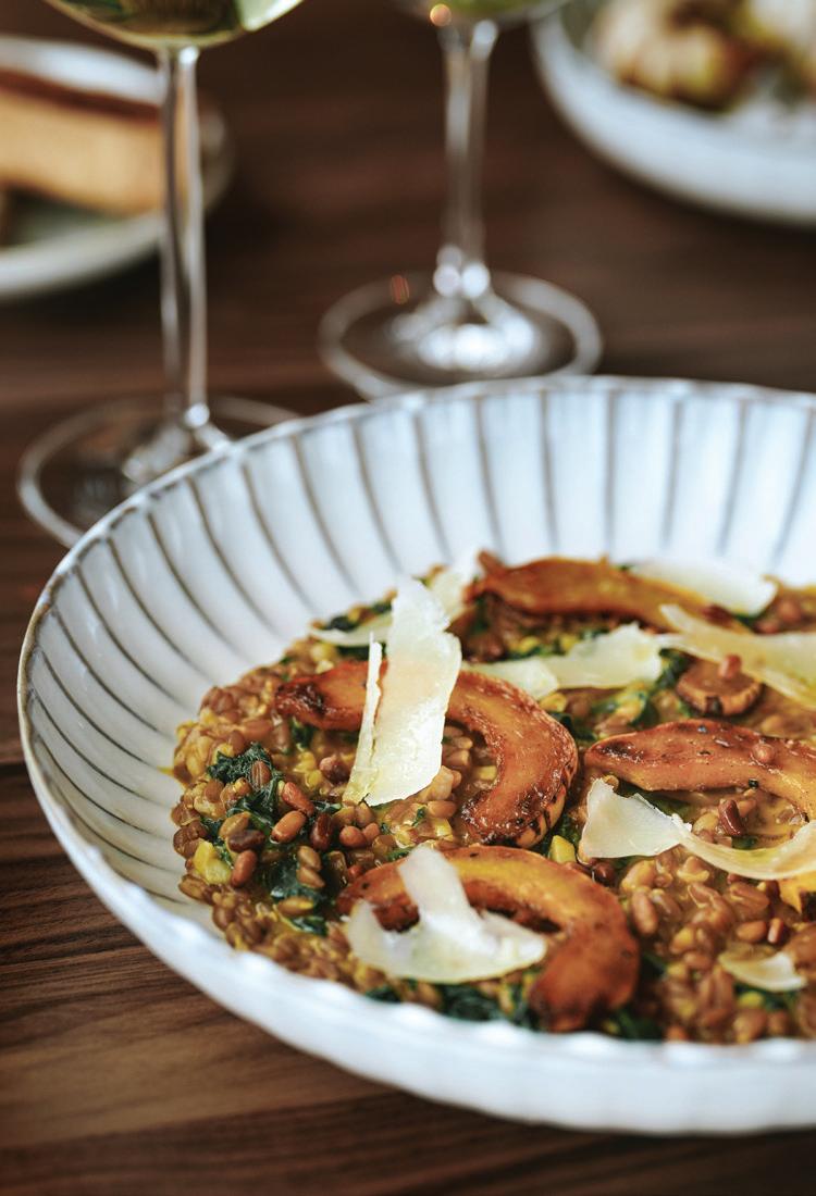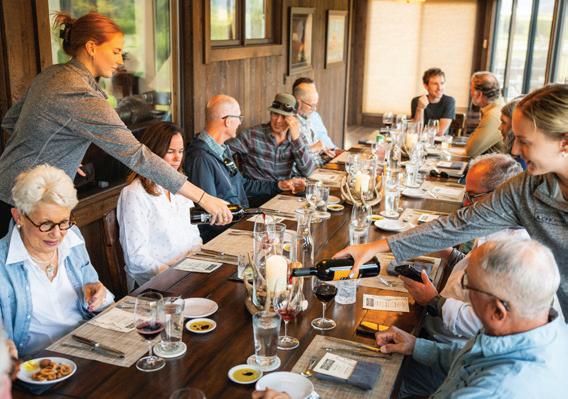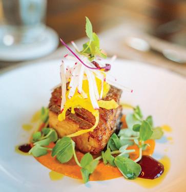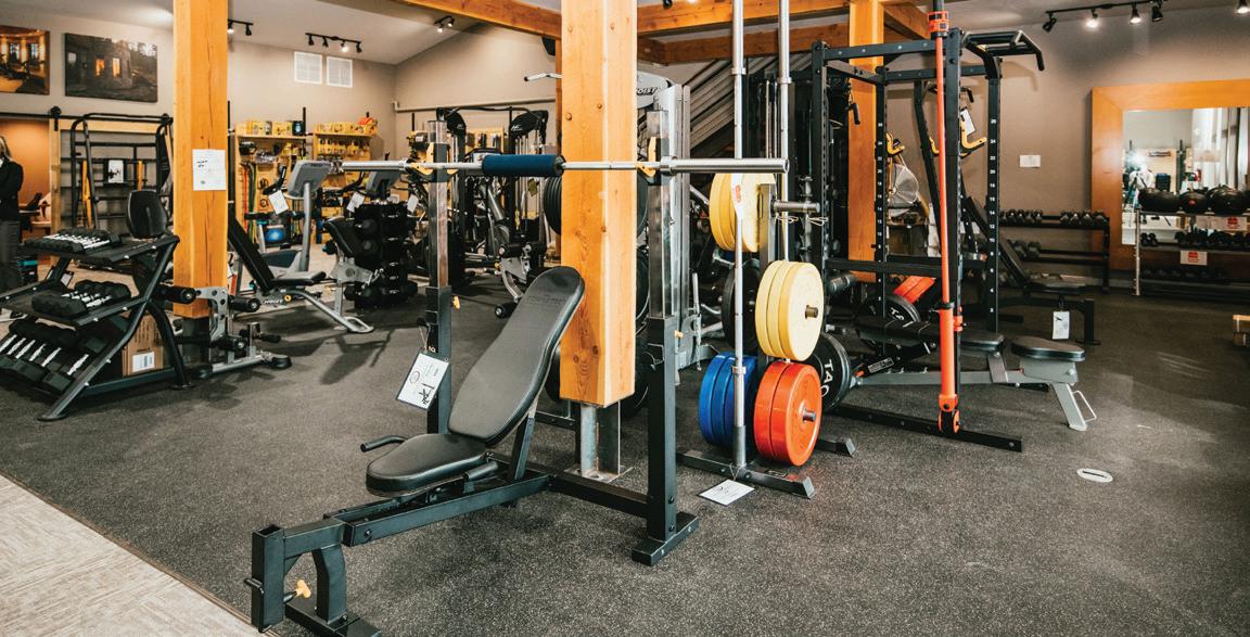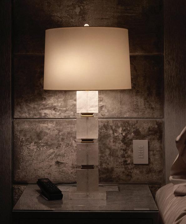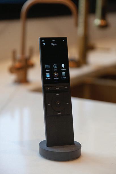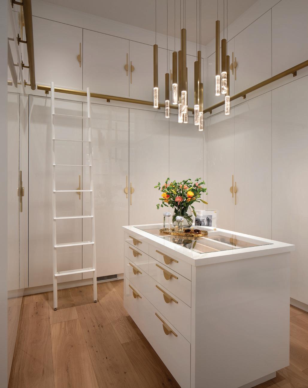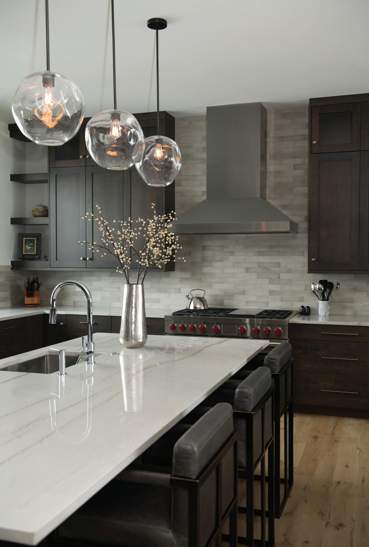 Thoughtful design offers every feature a family might want, including floor-to-ceiling windows on both levels to capture valley and mountain views, plenty of wide-open entertainment and living spaces for big family gatherings, guest rooms, and a wellness center. “Our numberone goal was to let the light in,” Caleo says. “There are unobstructed views out the kitchen and great room windows, which open via telescoping doors onto an expansive deck with covered outdoor dining and lounging space. It’s as easy to have a party outside as inside.”