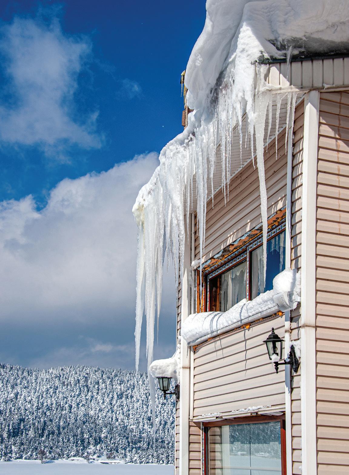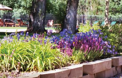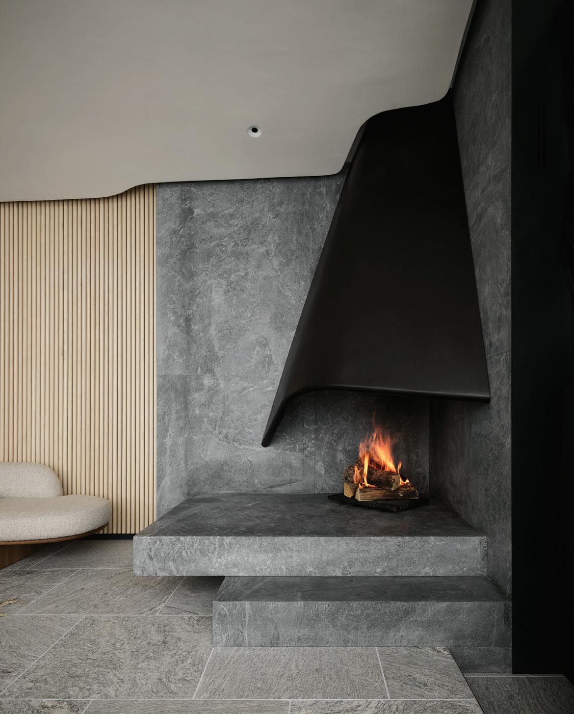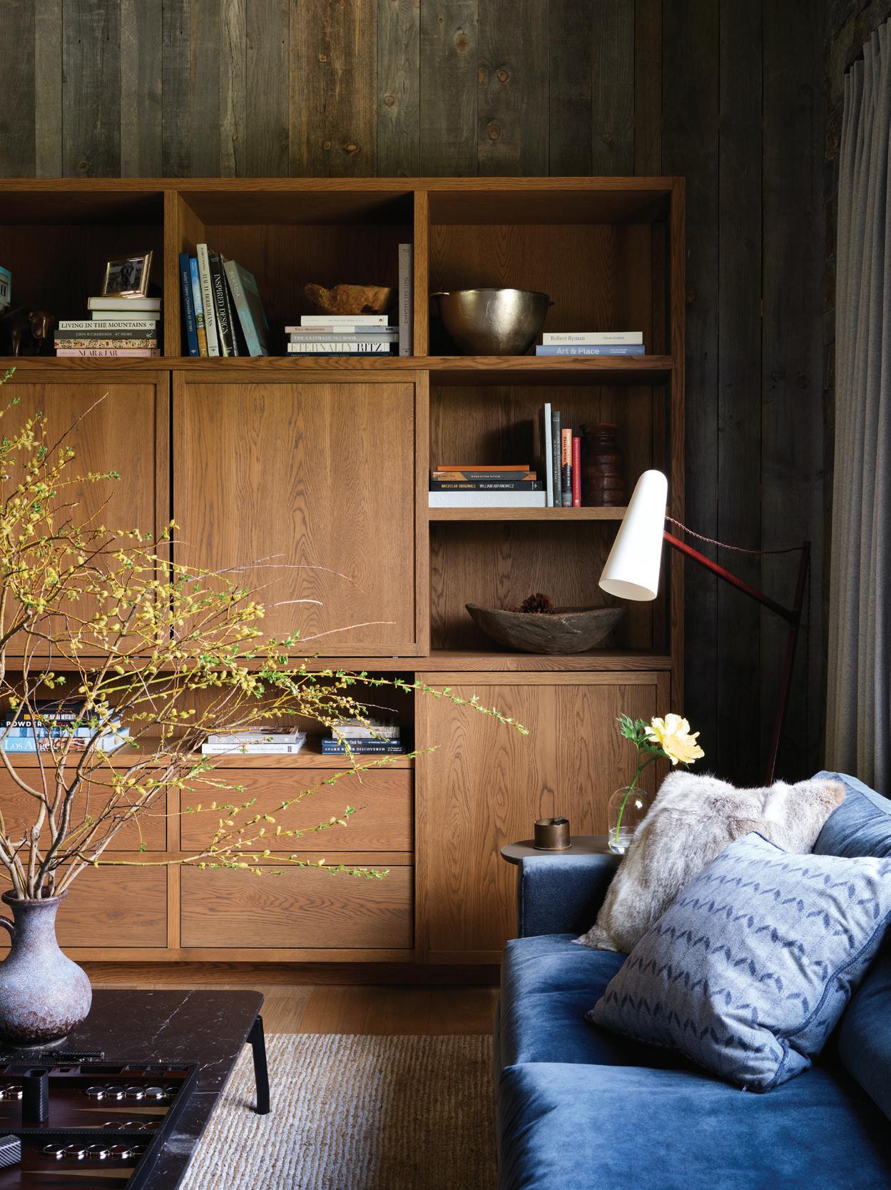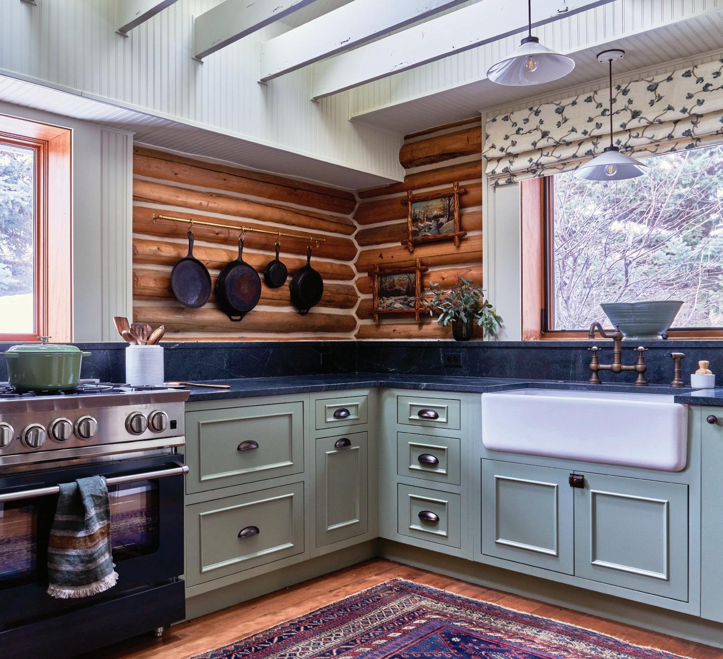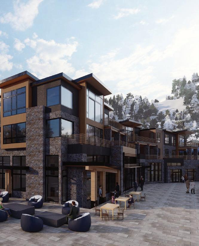 The inspiration for this R o cky Mountain retreat was rooted in nature. The interior design balances scale with intimacy, ensuring the home feels welcoming rather than overwhelming. • Locati Architects designed the home to facilitate enjoyment of the outdoors for multiple generations. A pool house with three-story waterslides does the trick for the grandchildren during the summertime.