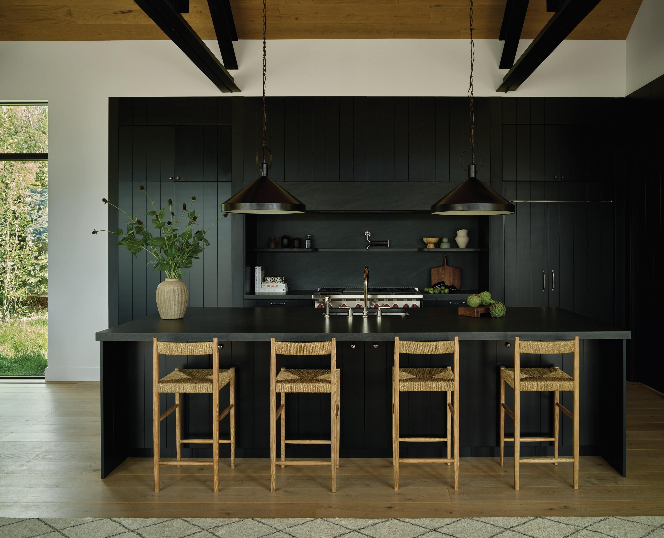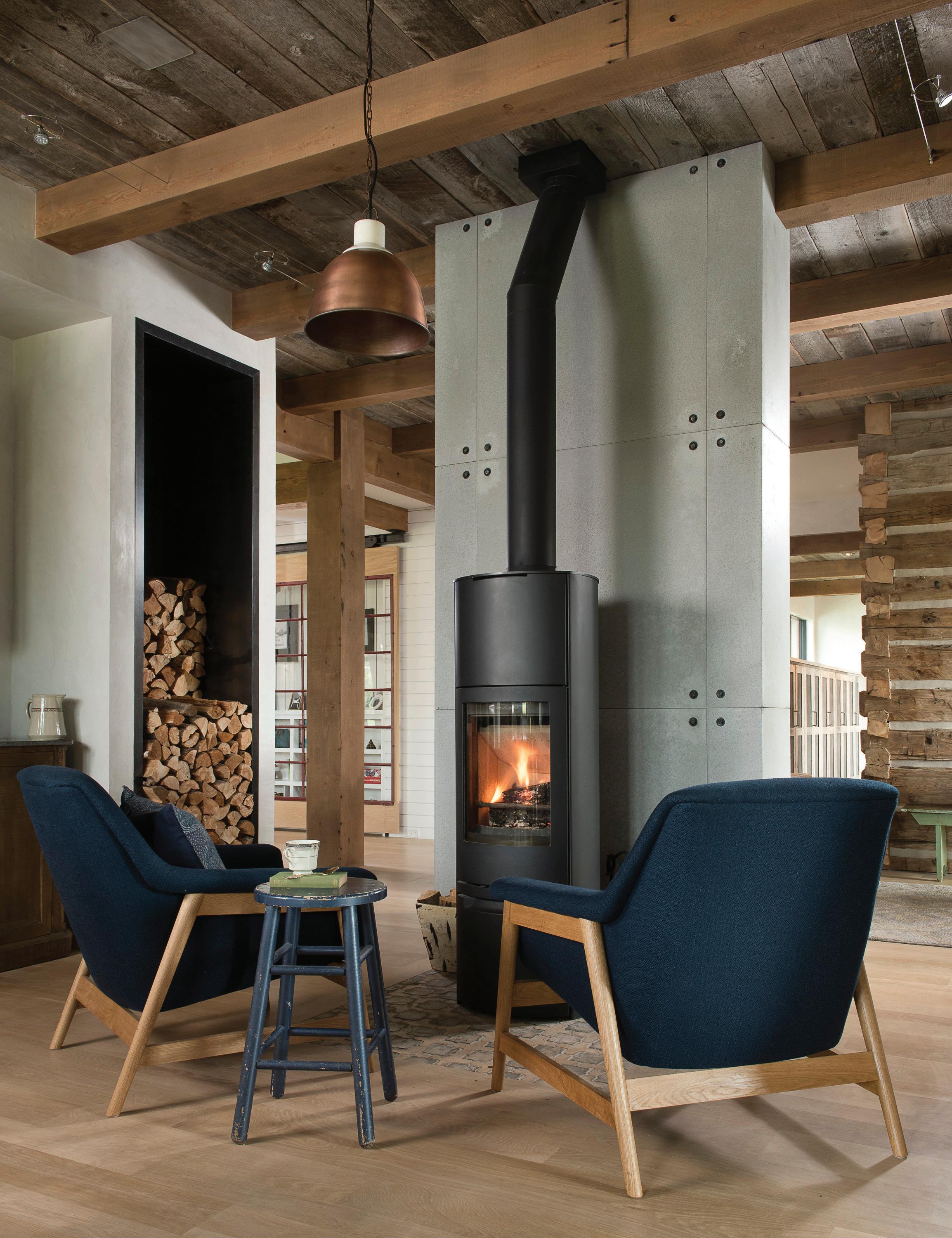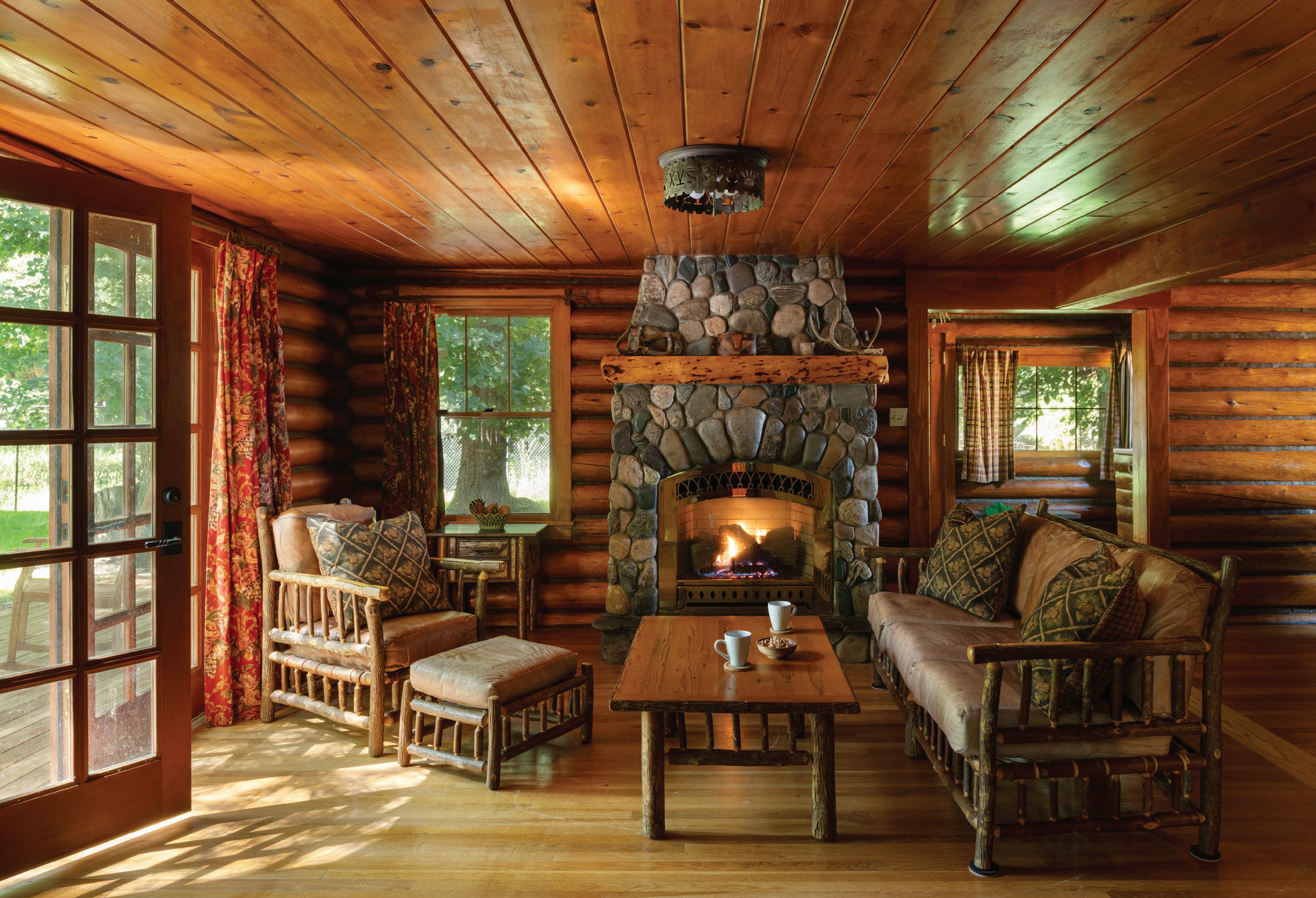 With a nod to its rustic roots, the home is still up-to-the-minute modern, with a Lutron automation system that seamlessly operates the window shades, audio-visual components, and lighting. Other efficiencies include extra insulation and triple-pane windows, which help create an airtight building envelope. “The big windows, coupled with cozy fireplaces, are heavenly,” Mumford says of the three interior and one exterior fireplaces and expansive windows in almost every room.