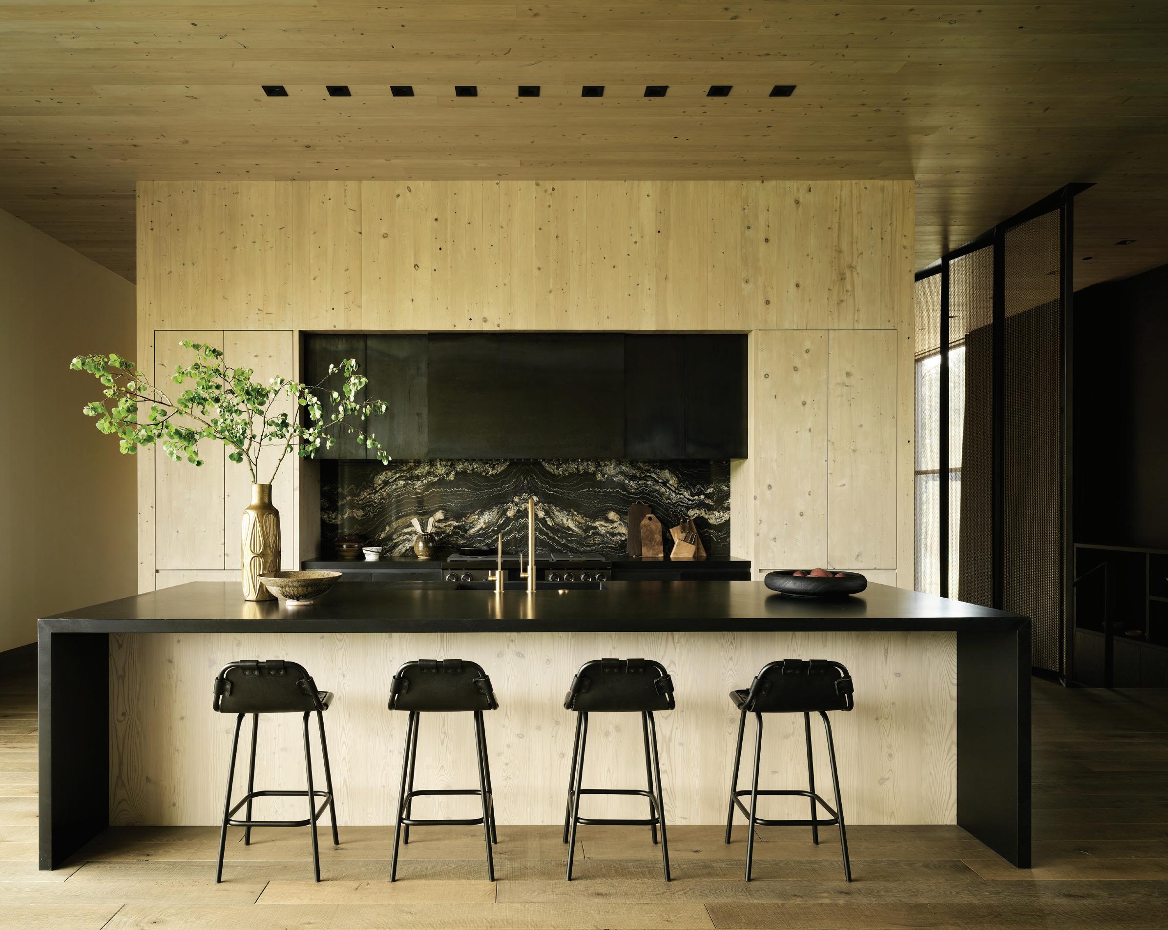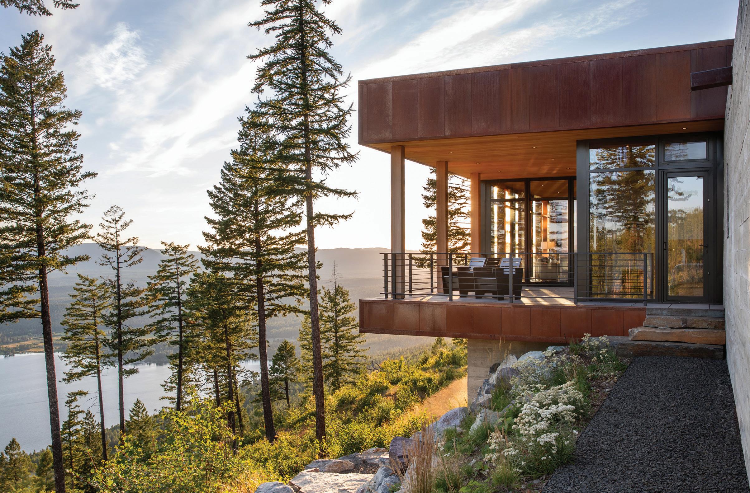 THOSE NEEDS INCLUDED TAKING ADVANTAGE of the spectacularly wild qualities of the site. “[The site features] are captivating,” Wa rd says. “They informed innumerable aspects of the design, from the way the house sits on the site to the general orientation of the home to the use of materials.”