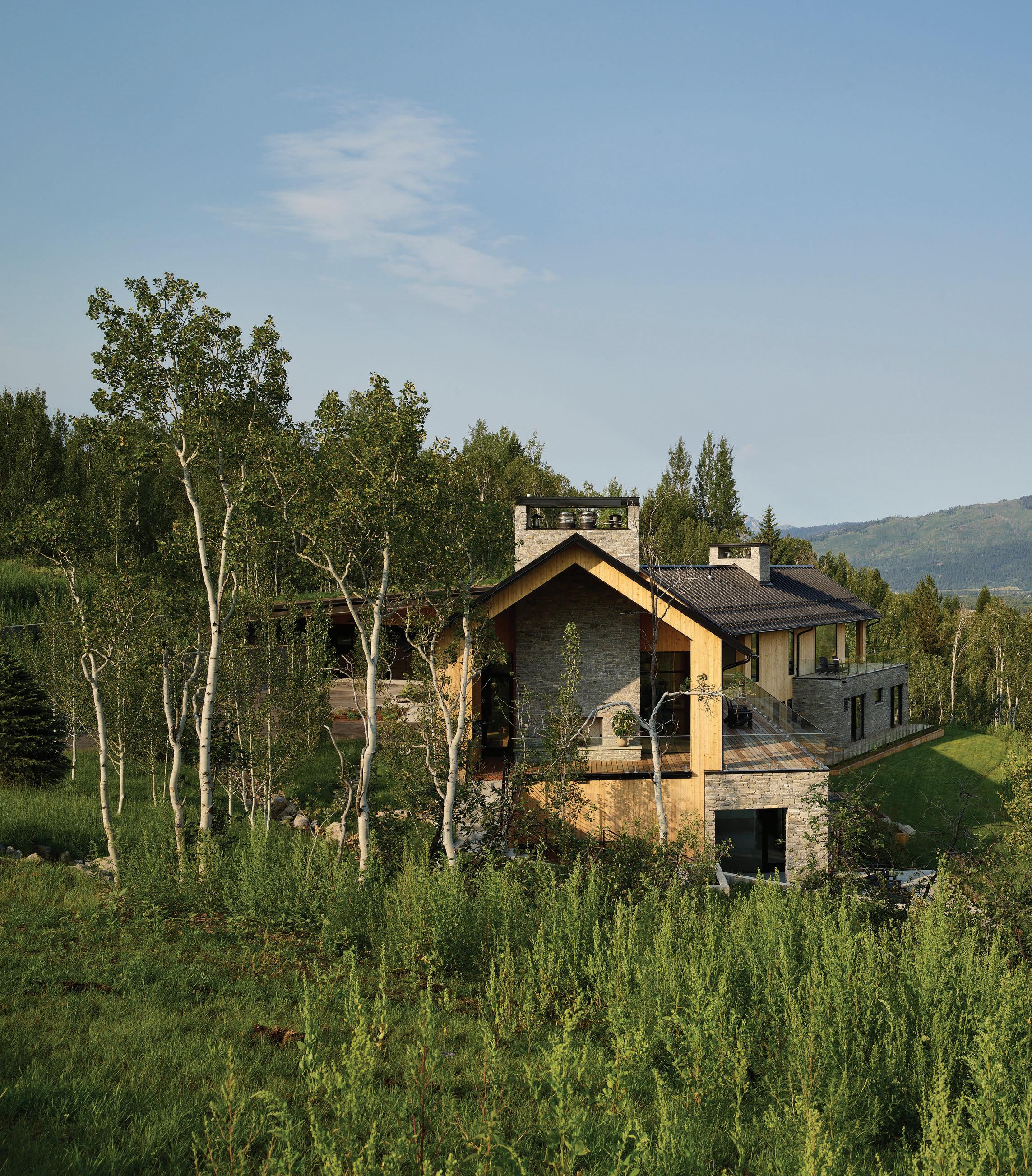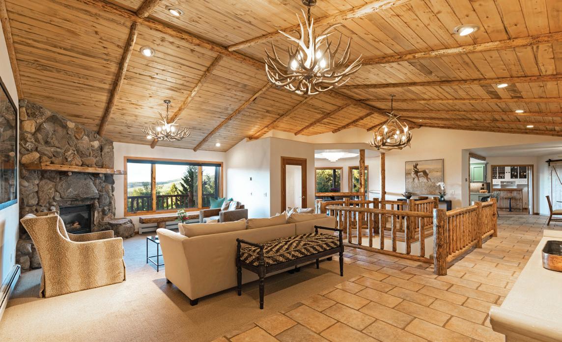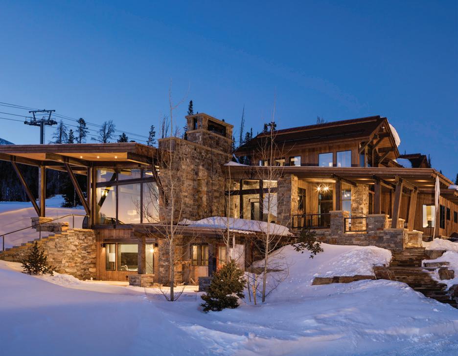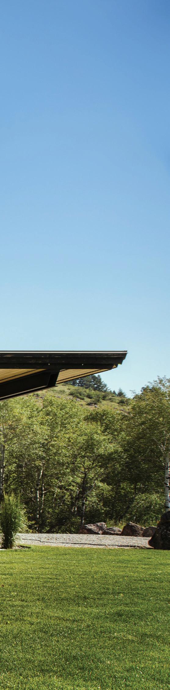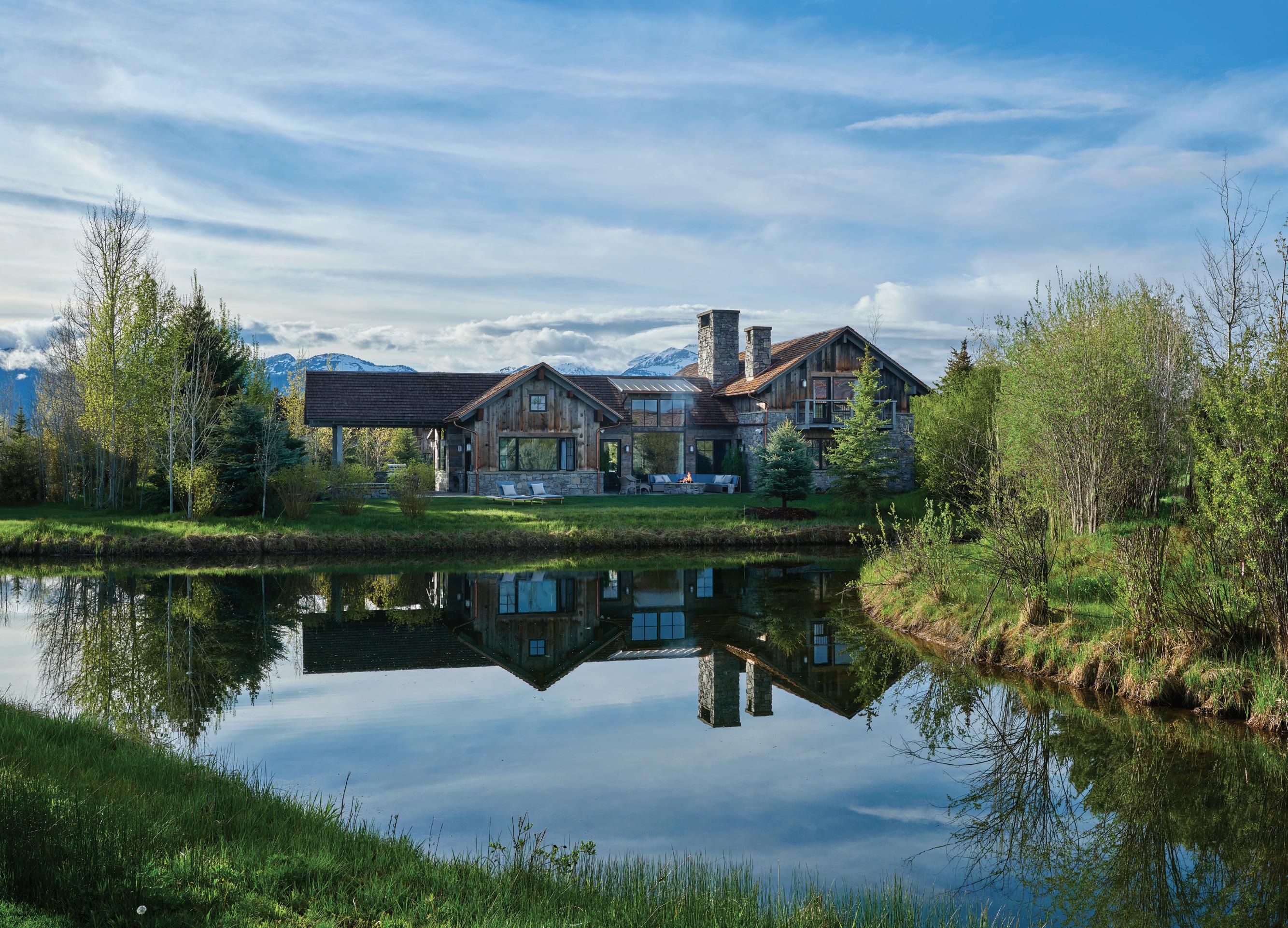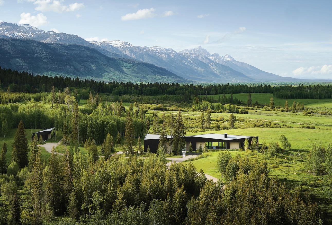 WHEN THE FUTURE OWNERS of a home on Trader Road in Jackson, Wyoming step outside their door, they’ll see the natural beauty the land offers from a bird’s-eye perspective. Perched on top of a hill in the gated Gros Ventre North community, the meticulously curated lawn and landscape give way to an aspen-filled forest down the sloping hillside, providing a panorama of the Tetons, the Snake River, and sweeping Walton Ranch in the valley below. While the vistas are takeyour-breath-away spectacular, the home’s feeling of seclusion is equally remarkable, given its proximity to downtown Jackson Hole, Teton Village, and Grand Teton National Park.