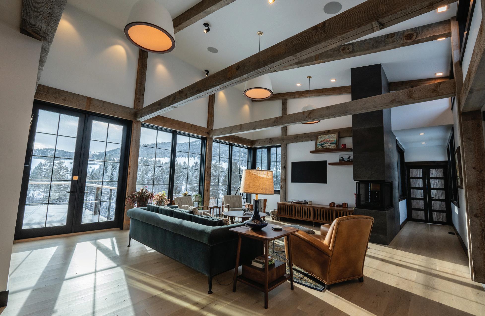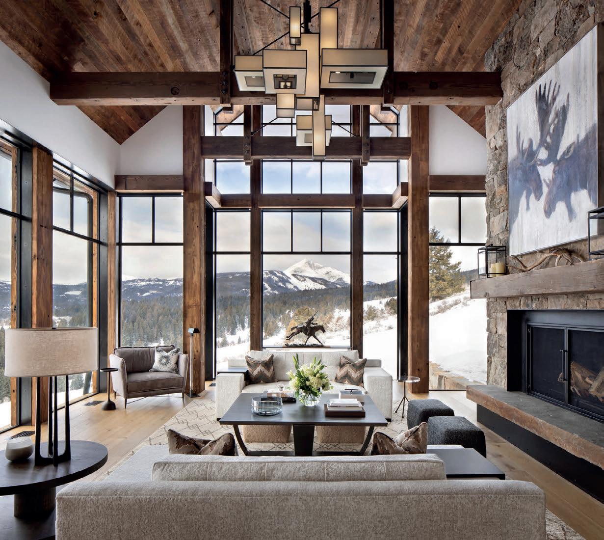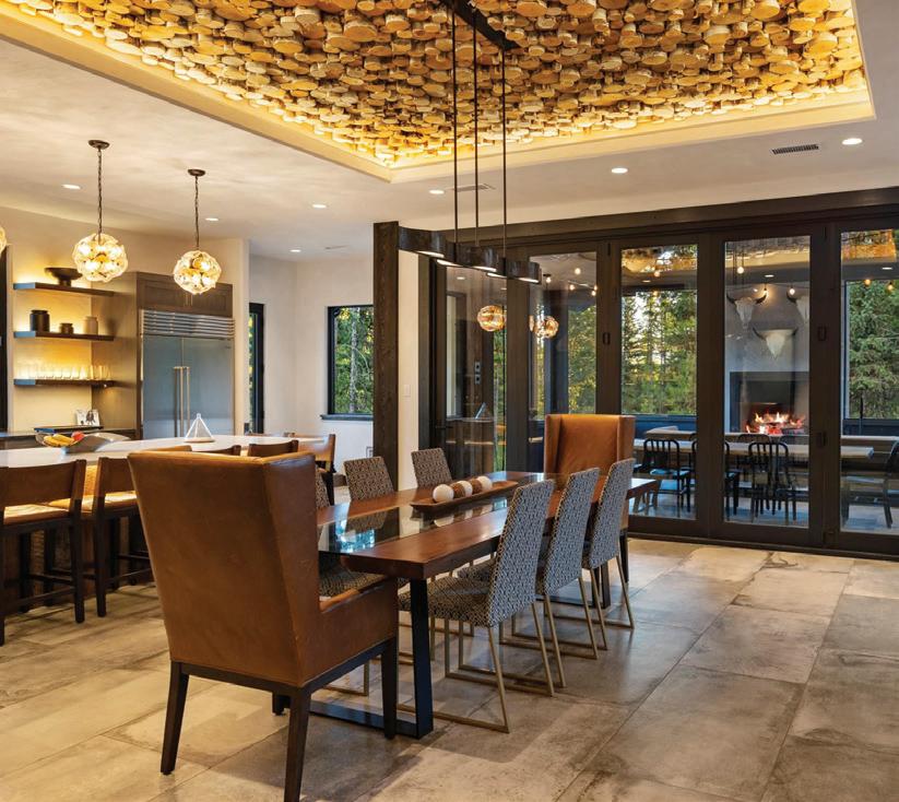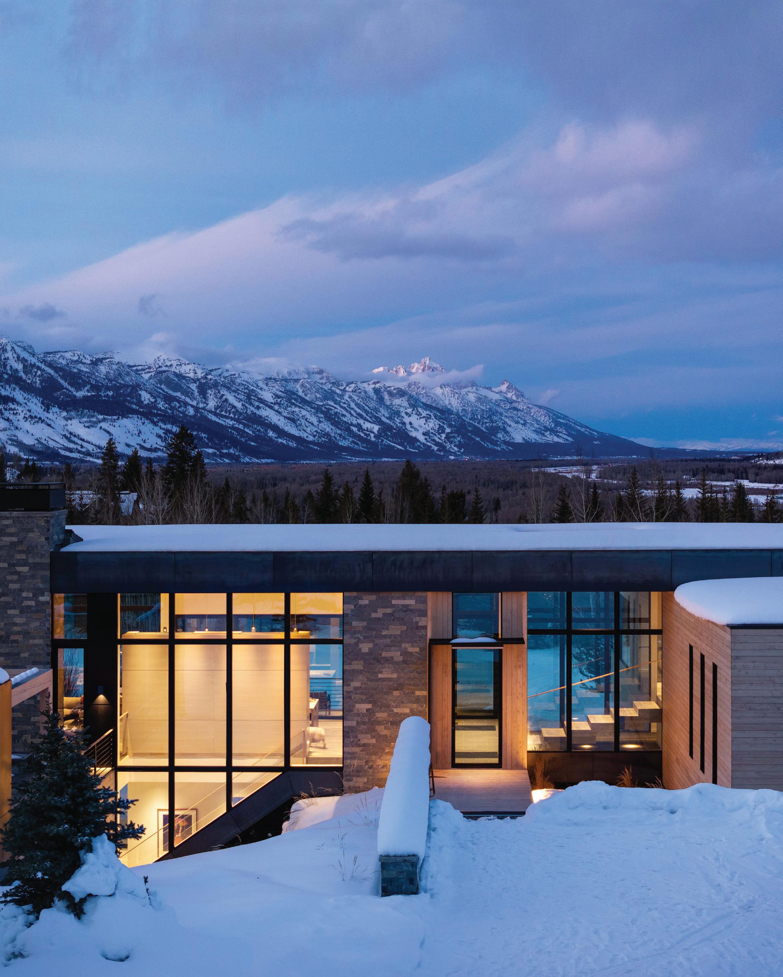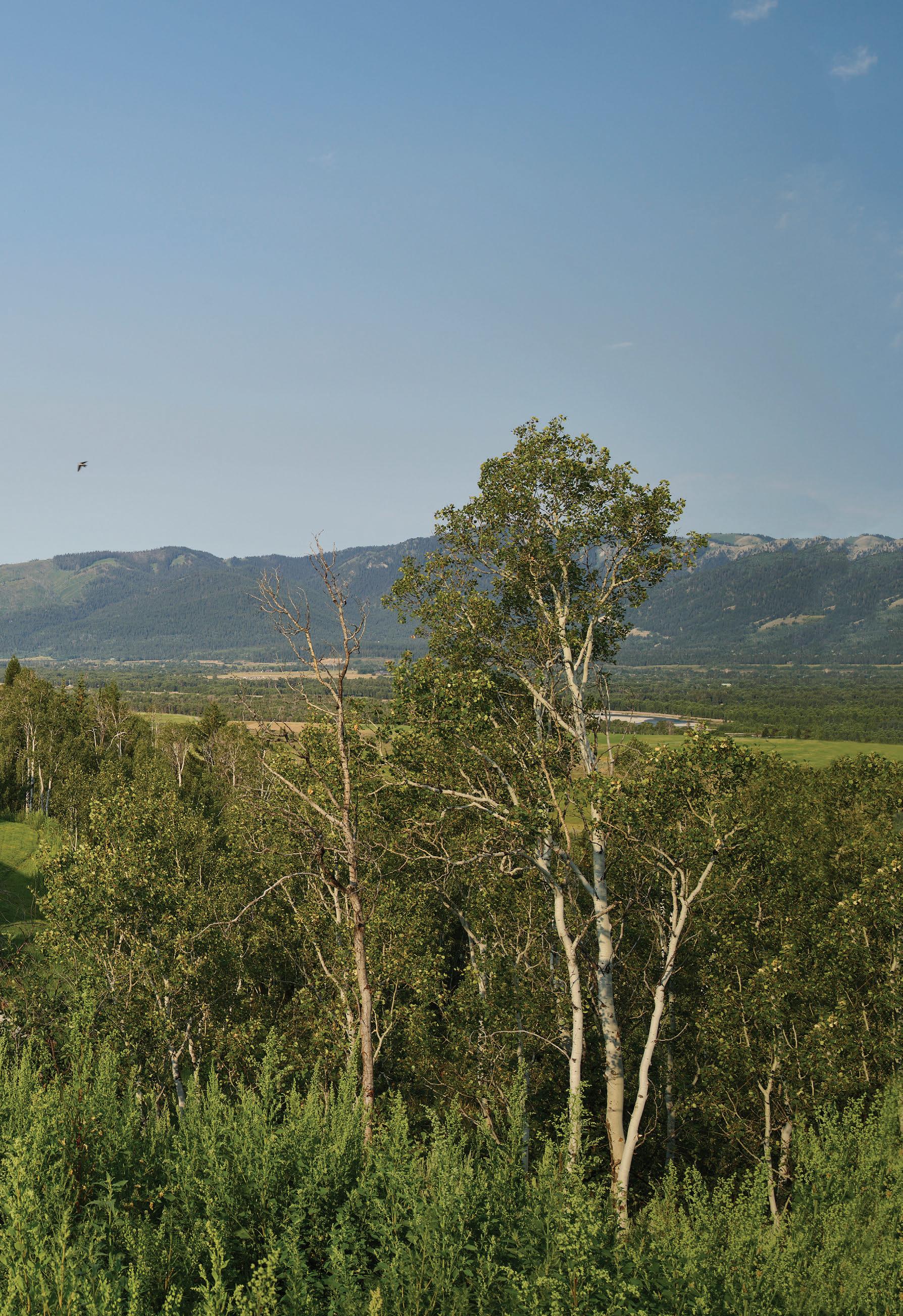 WHEN THE FUTURE OWNERS of a home on Trader Road in Jackson, Wyoming step outside their door, they’ll see the natural beauty the land offers from a bird’s-eye perspective. Perched on top of a hill in the gated Gros Ventre North community, the meticulously curated lawn and landscape give way to an aspen-filled forest down the sloping hillside, providing a panorama of the Tetons, the Snake River, and sweeping Walton Ranch in the valley below. While the vistas are takeyour-breath-away spectacular, the home’s feeling of seclusion is equally remarkable, given its proximity to downtown Jackson Hole, Teton Village, and Grand Teton National Park.