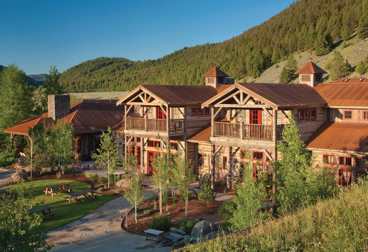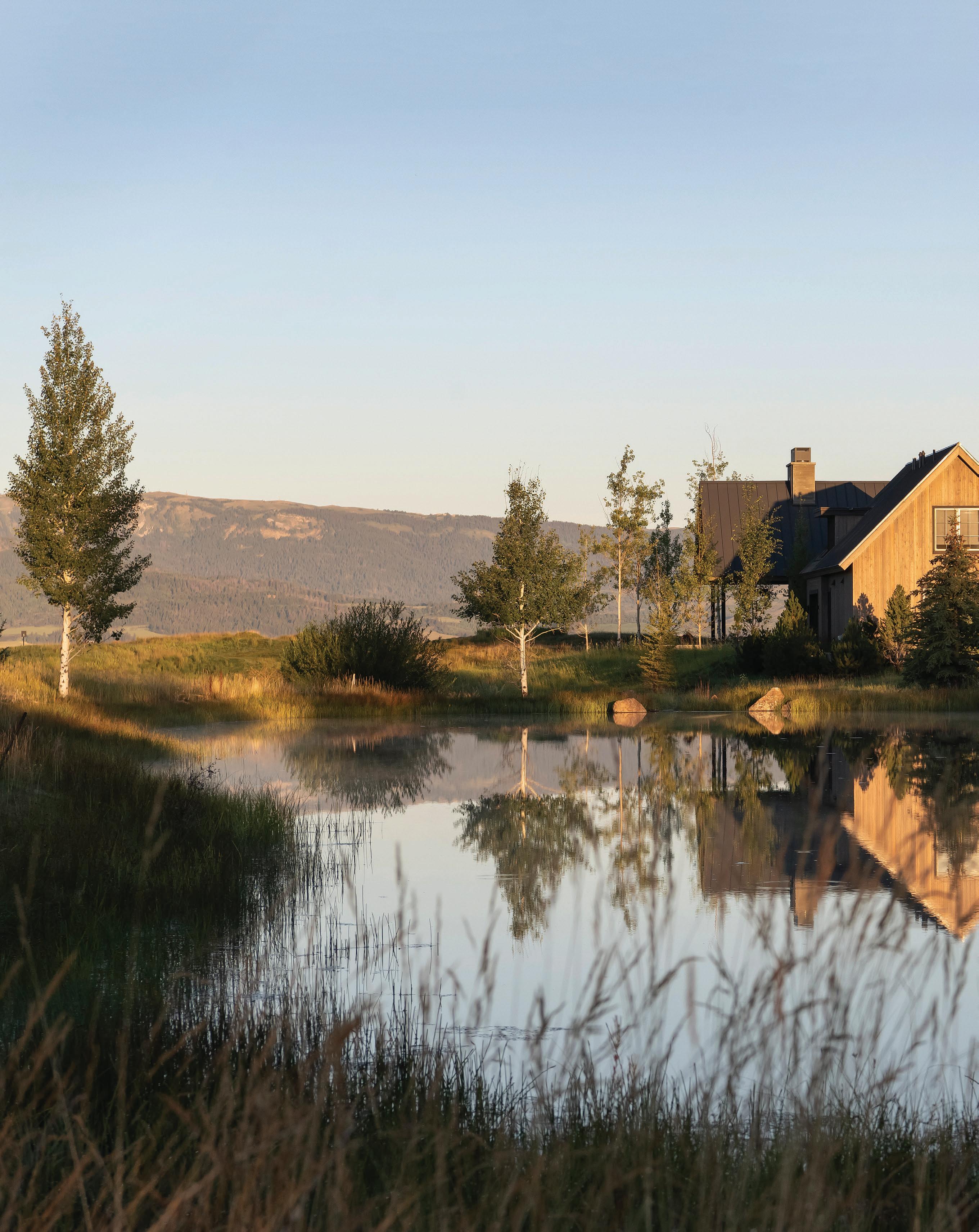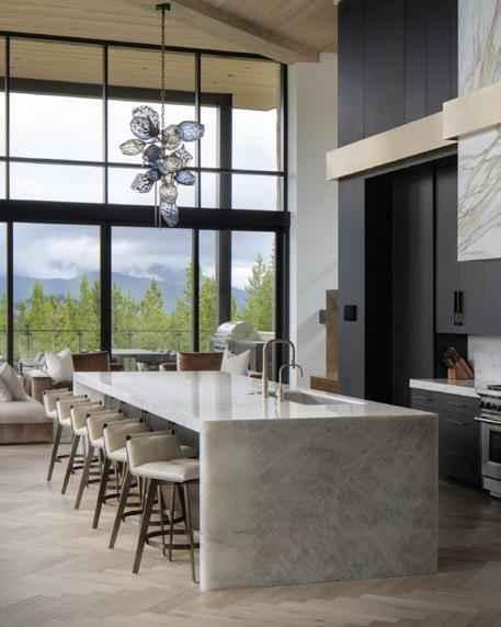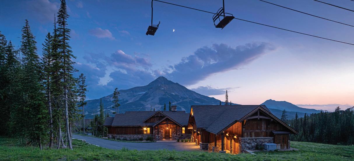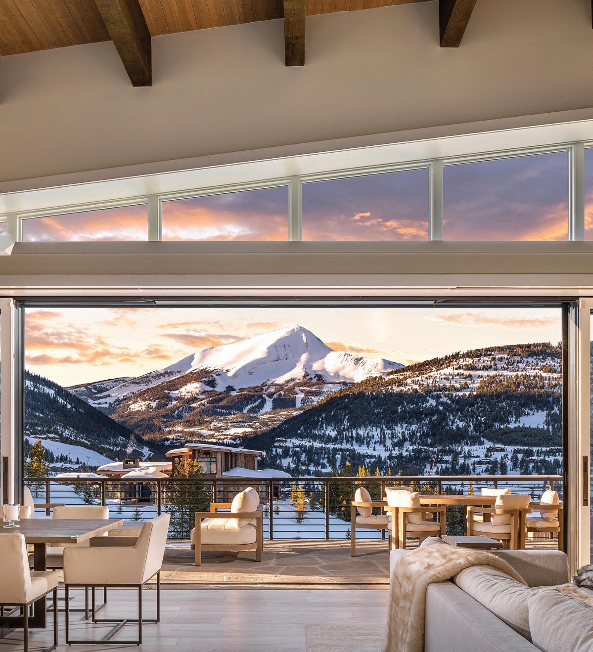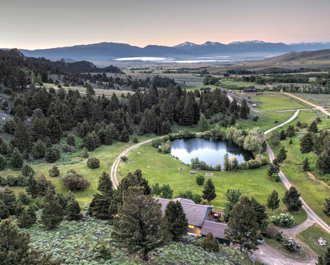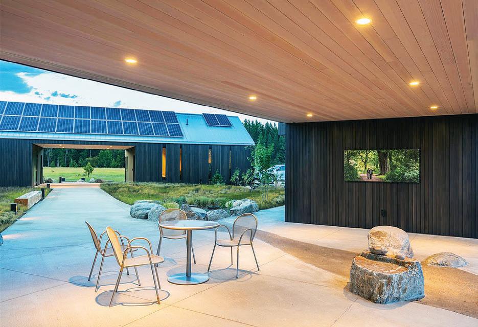 WHEN THE FUTURE OWNERS of a home on Trader Road in Jackson, Wyoming step outside their door, they’ll see the natural beauty the land offers from a bird’s-eye perspective. Perched on top of a hill in the gated Gros Ventre North community, the meticulously curated lawn and landscape give way to an aspen-filled forest down the sloping hillside, providing a panorama of the Tetons, the Snake River, and sweeping Walton Ranch in the valley below. While the vistas are takeyour-breath-away spectacular, the home’s feeling of seclusion is equally remarkable, given its proximity to downtown Jackson Hole, Teton Village, and Grand Teton National Park.