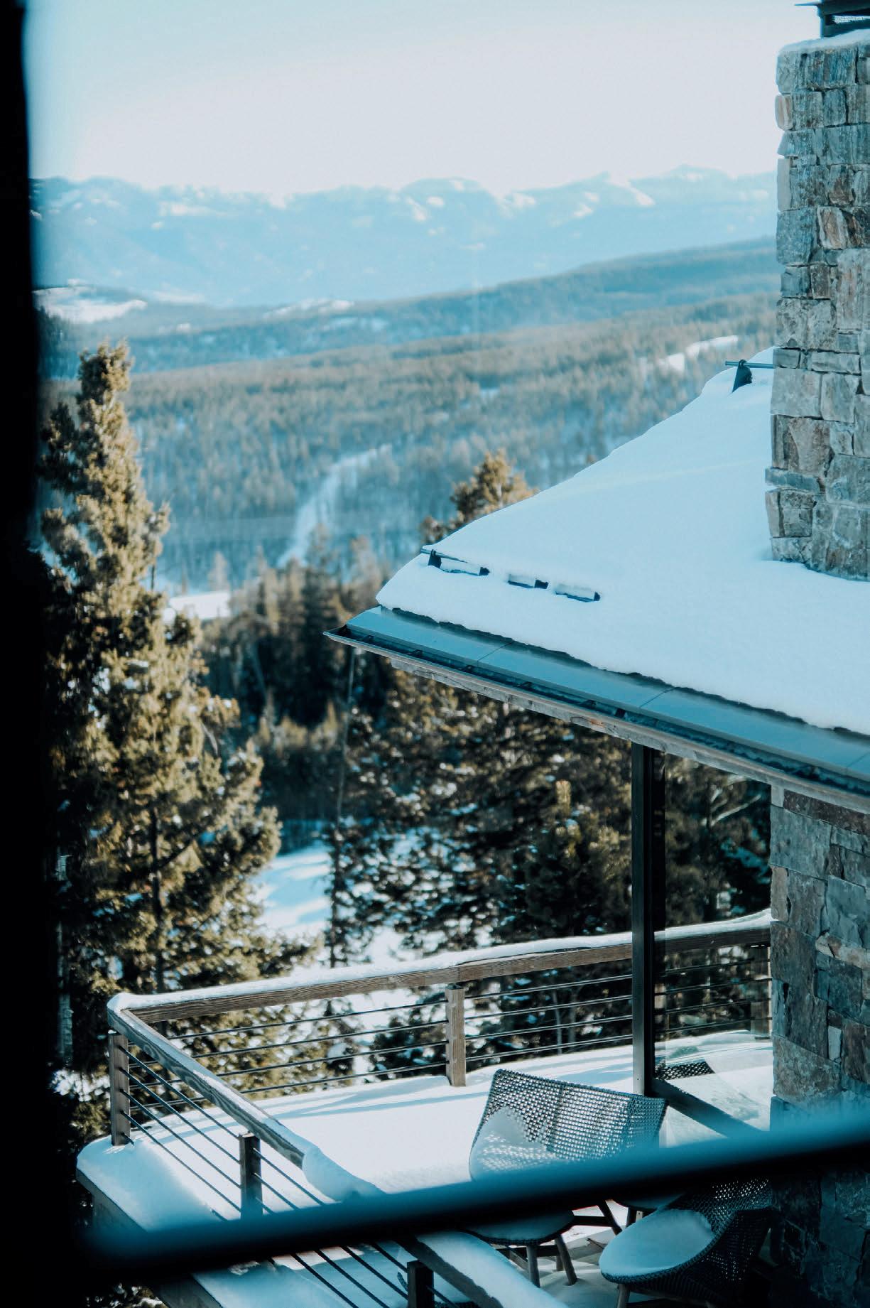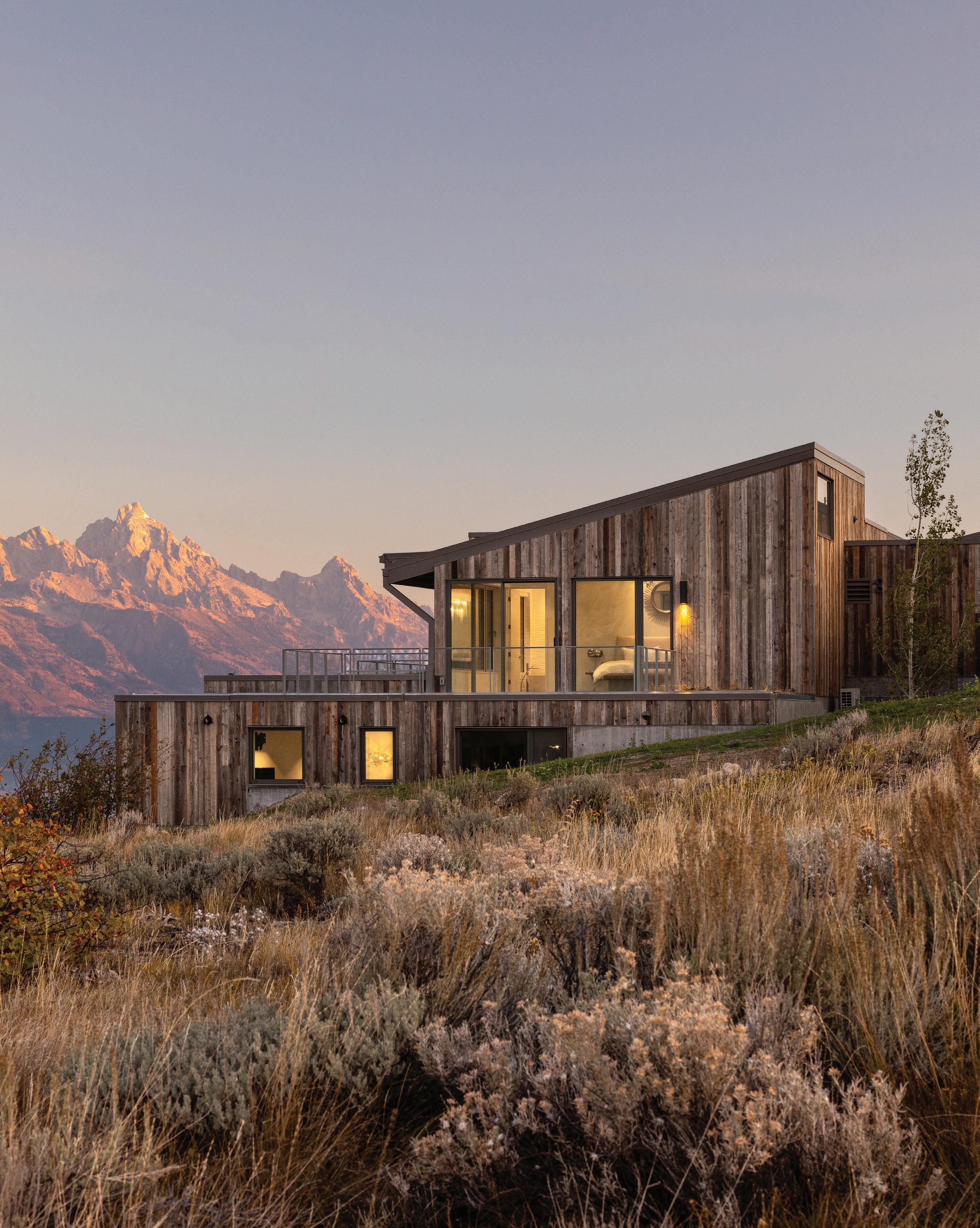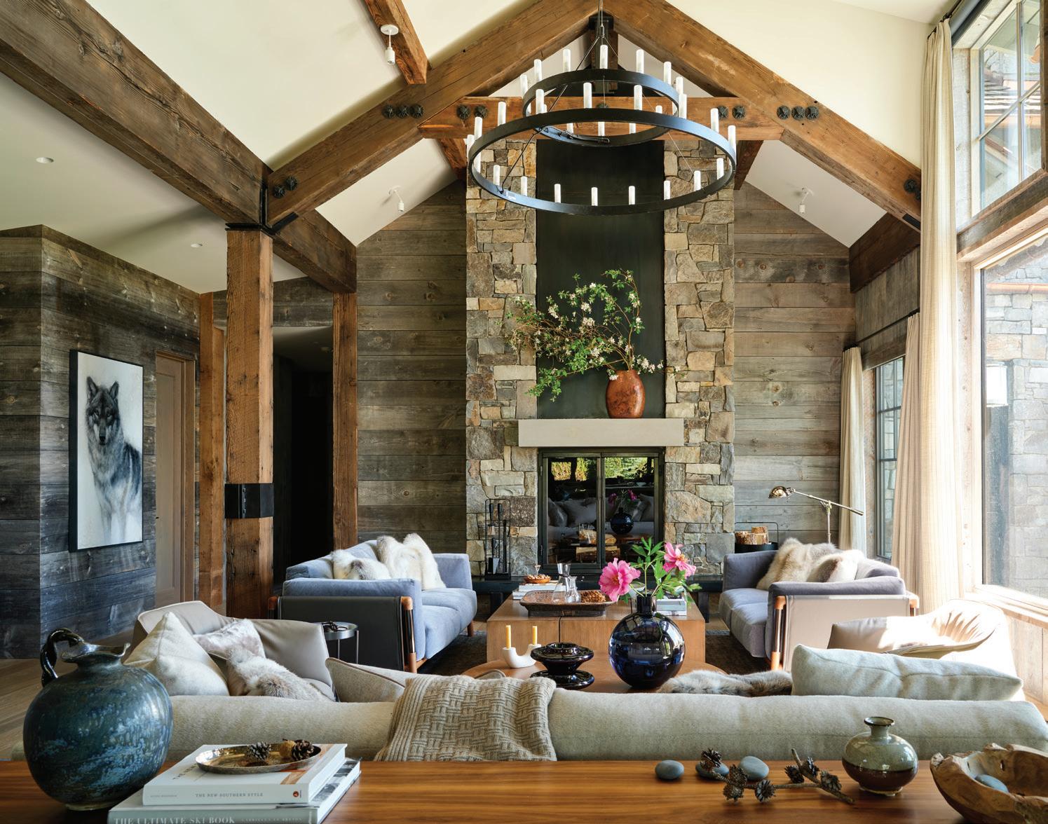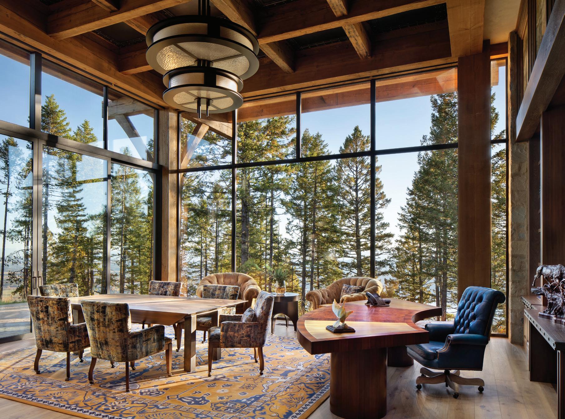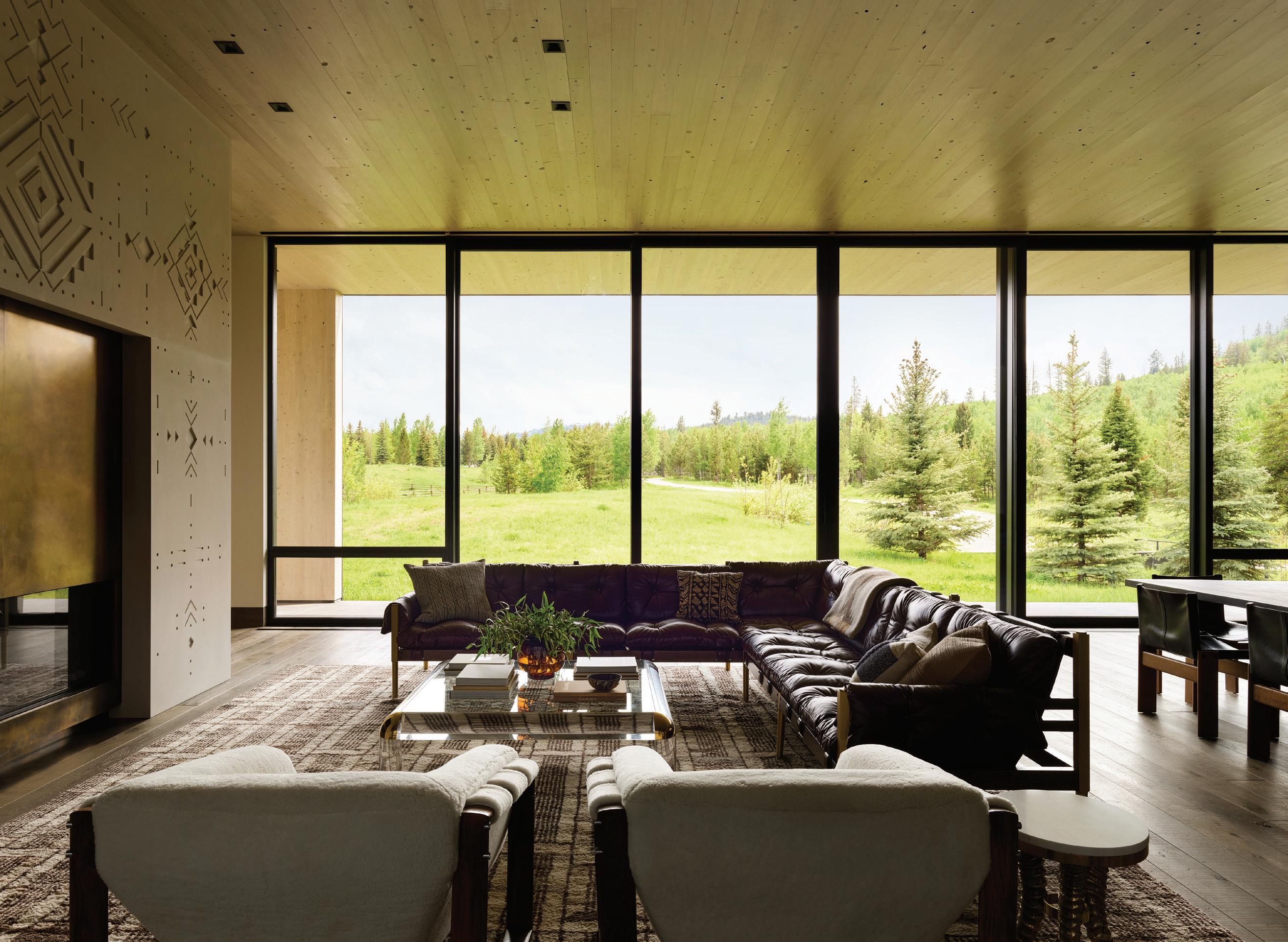 WHEN THE FUTURE OWNERS of a home on Trader Road in Jackson, Wyoming step outside their door, they’ll see the natural beauty the land offers from a bird’s-eye perspective. Perched on top of a hill in the gated Gros Ventre North community, the meticulously curated lawn and landscape give way to an aspen-filled forest down the sloping hillside, providing a panorama of the Tetons, the Snake River, and sweeping Walton Ranch in the valley below. While the vistas are takeyour-breath-away spectacular, the home’s feeling of seclusion is equally remarkable, given its proximity to downtown Jackson Hole, Teton Village, and Grand Teton National Park.