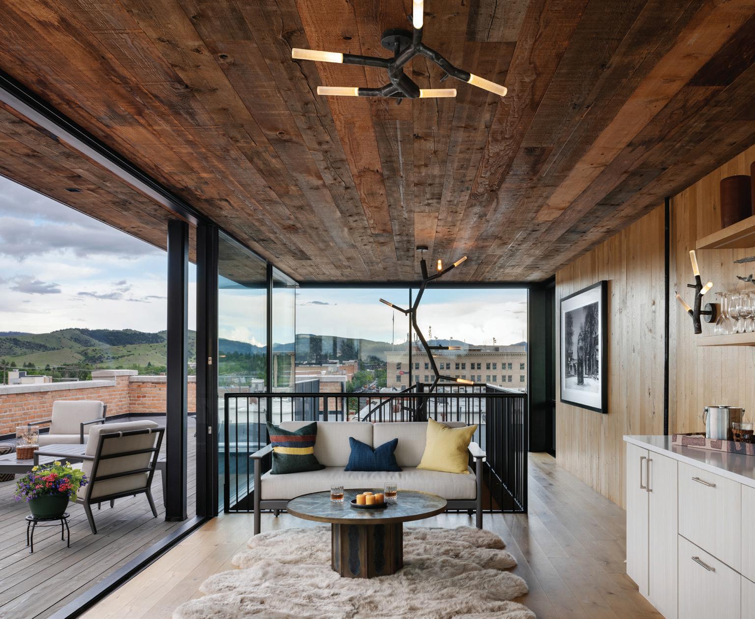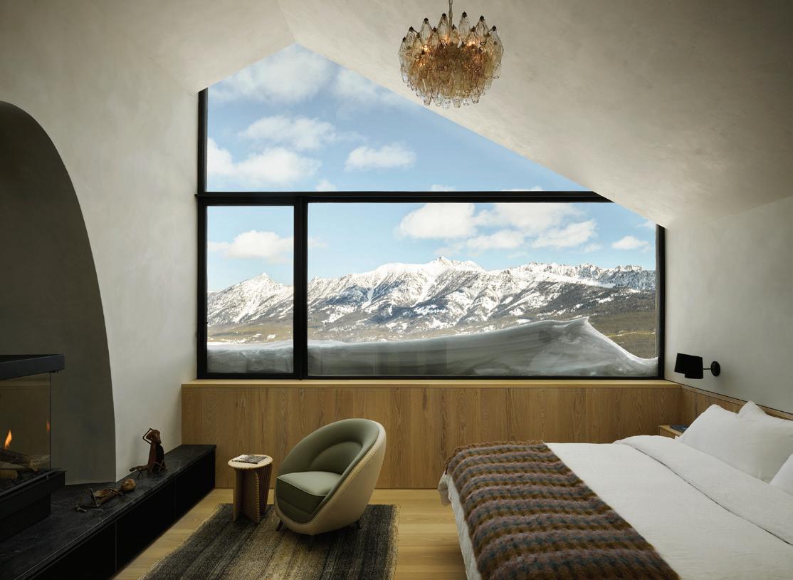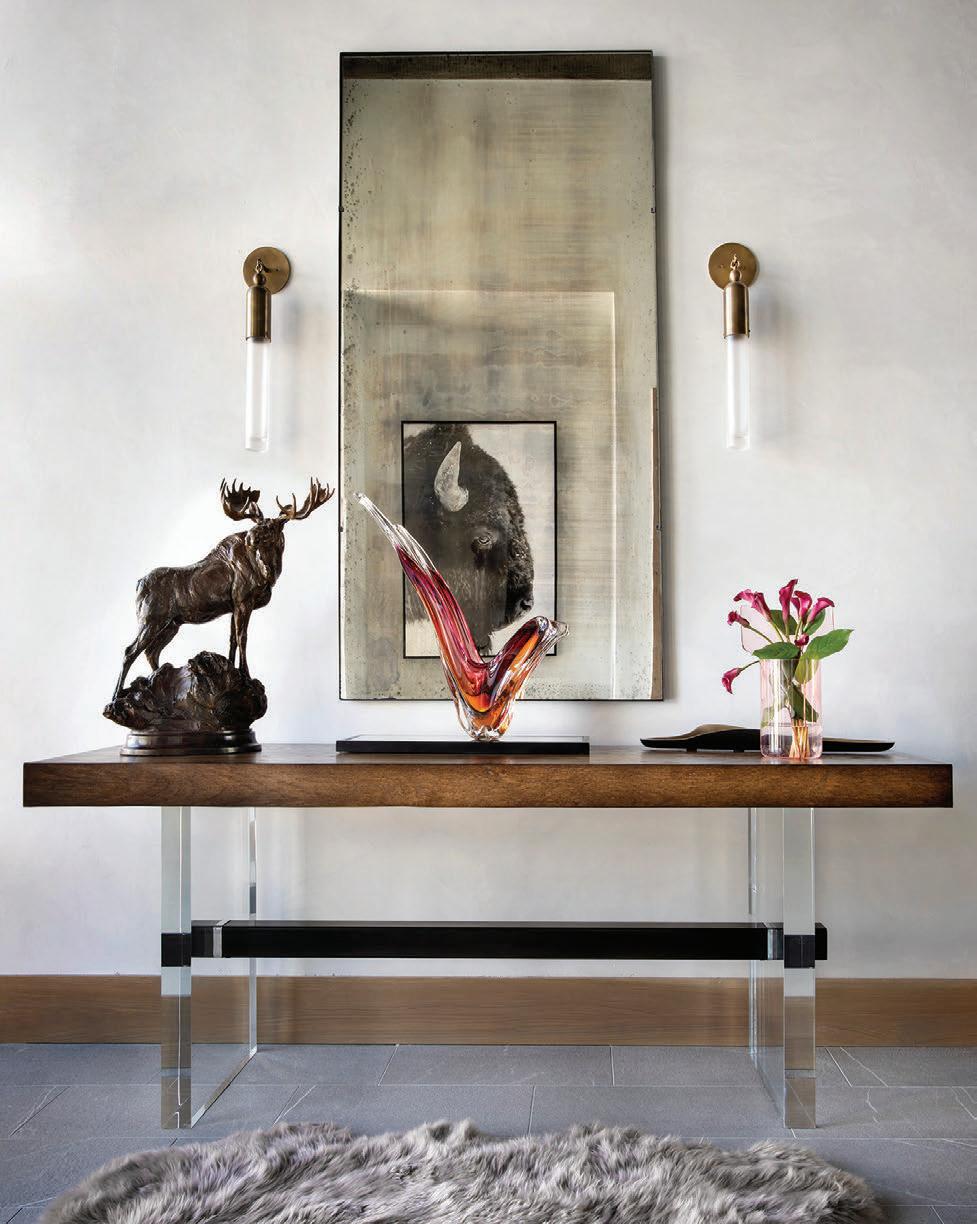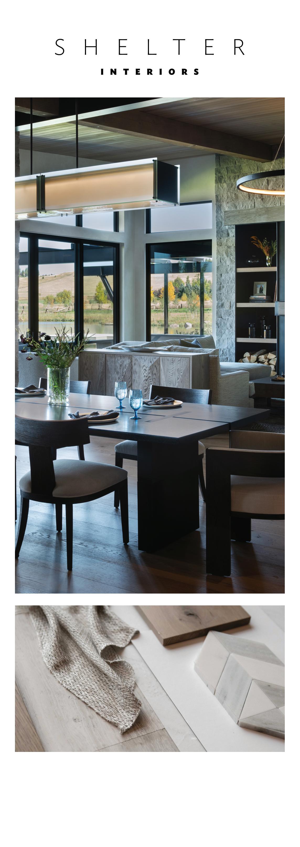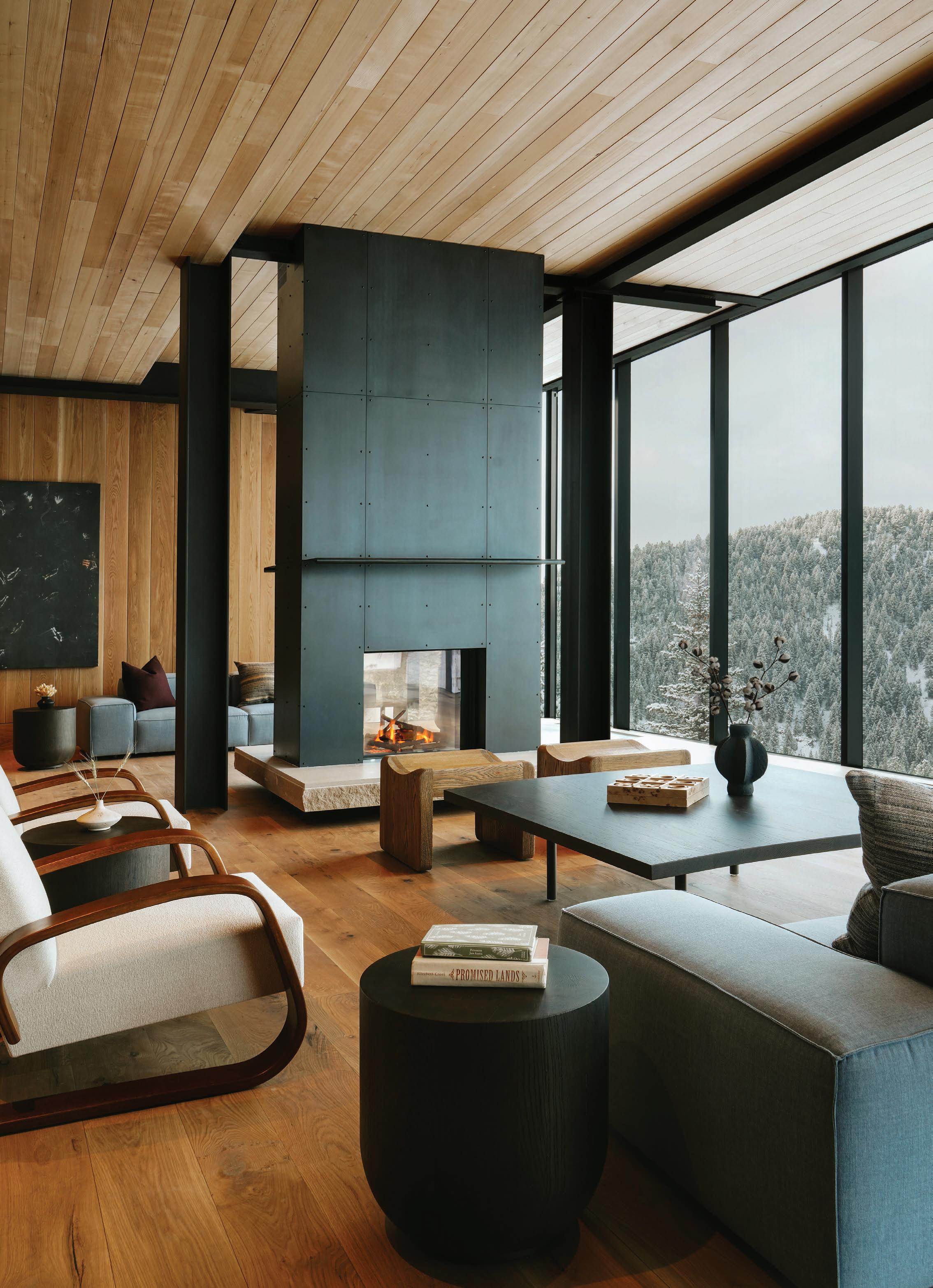WHEN THE FUTURE OWNERS of a home on Trader Road in Jackson, Wyoming step outside their door, they’ll see the natural beauty the land offers from a bird’s-eye perspective. Perched on top of a hill in the gated Gros Ventre North community, the meticulously curated lawn and landscape give way to an aspen-filled forest down the sloping hillside, providing a panorama of the Tetons, the Snake River, and sweeping Walton Ranch in the valley below. While the vistas are takeyour-breath-away spectacular, the home’s feeling of seclusion is equally remarkable, given its proximity to downtown Jackson Hole, Teton Village, and Grand Teton National Park.