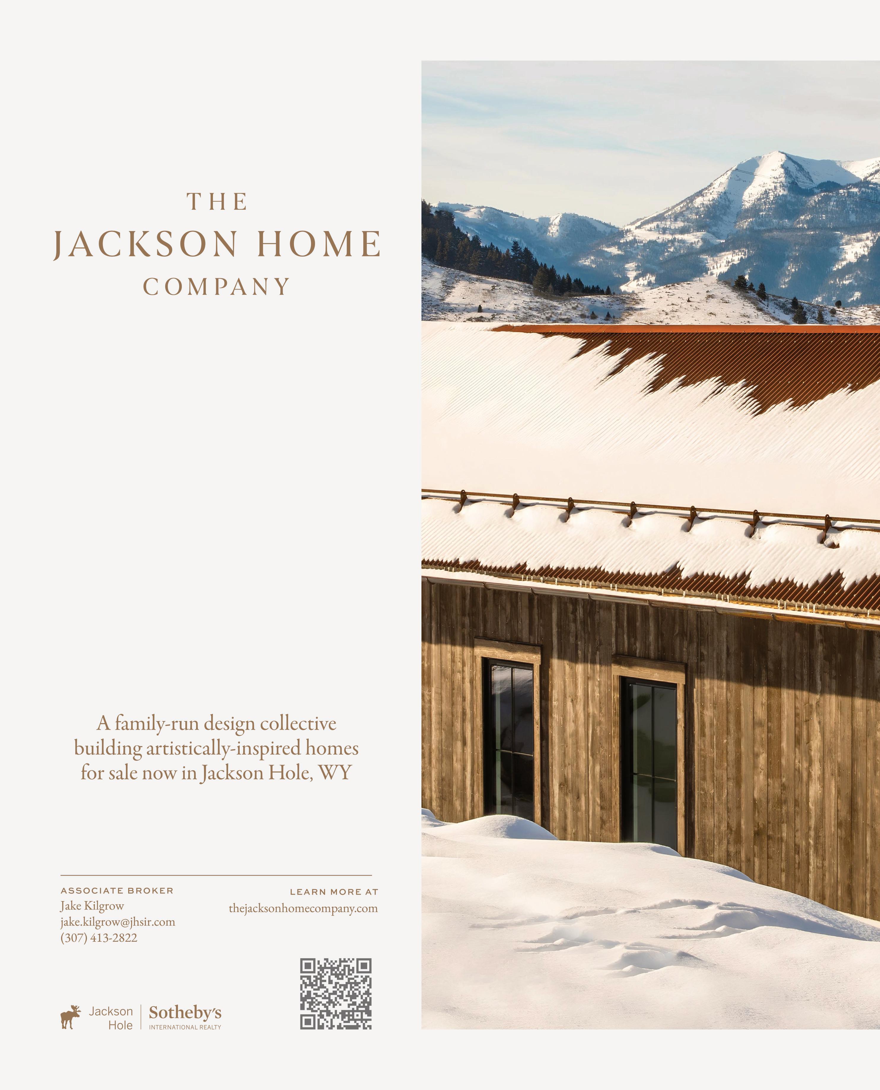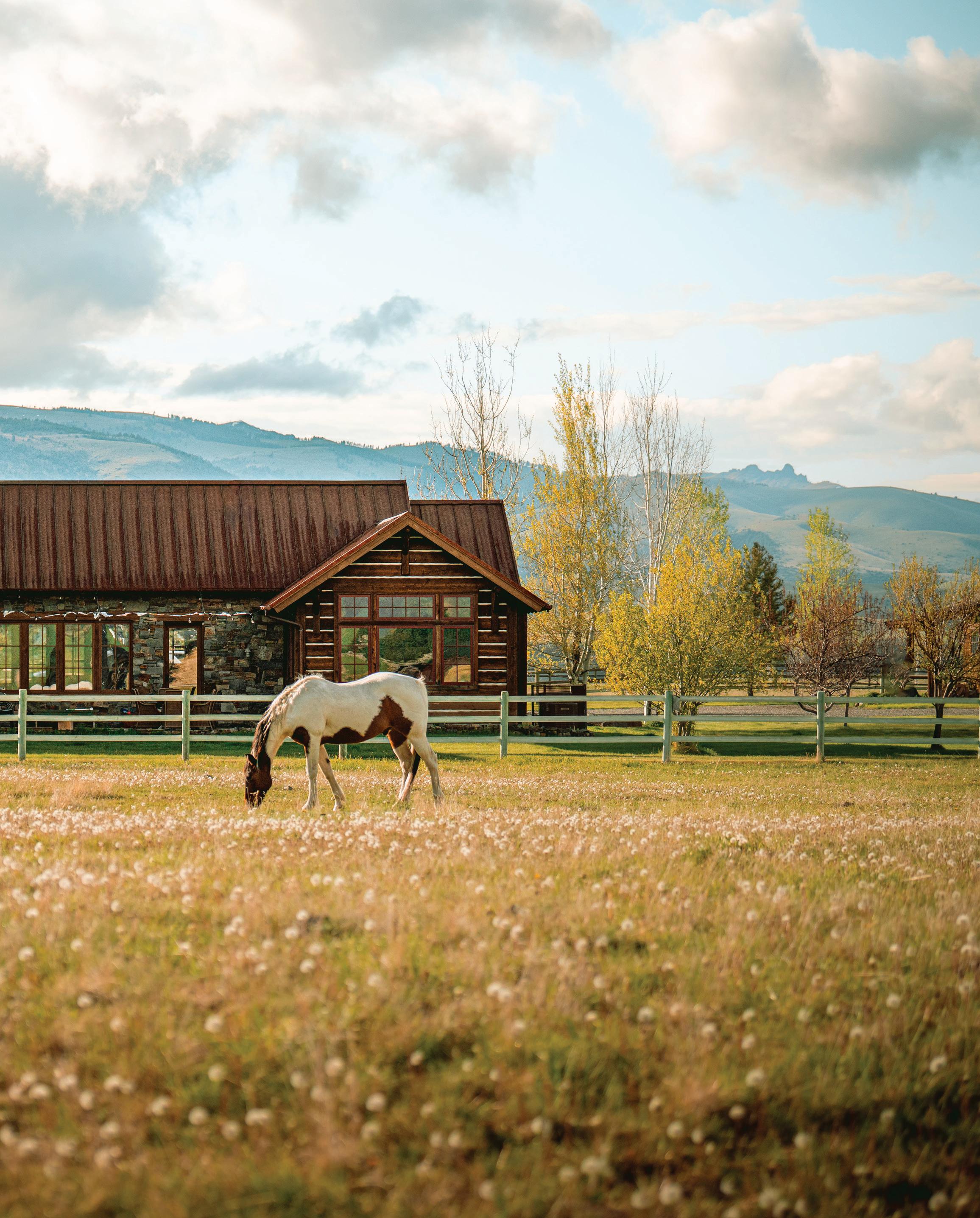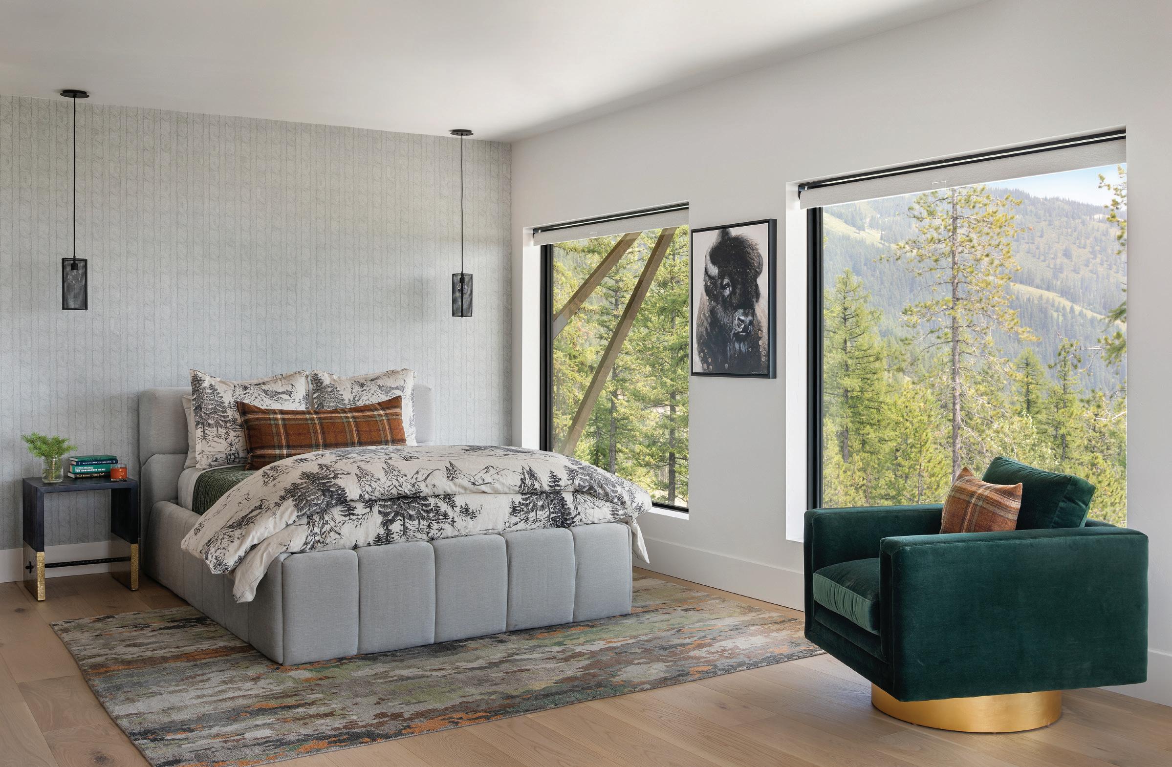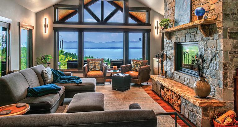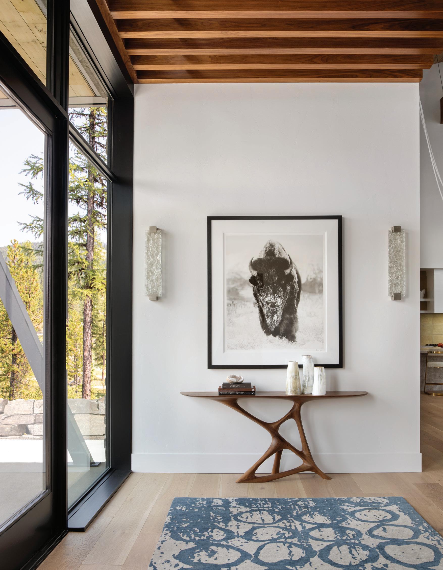WHEN THE FUTURE OWNERS of a home on Trader Road in Jackson, Wyoming step outside their door, they’ll see the natural beauty the land offers from a bird’s-eye perspective. Perched on top of a hill in the gated Gros Ventre North community, the meticulously curated lawn and landscape give way to an aspen-filled forest down the sloping hillside, providing a panorama of the Tetons, the Snake River, and sweeping Walton Ranch in the valley below. While the vistas are takeyour-breath-away spectacular, the home’s feeling of seclusion is equally remarkable, given its proximity to downtown Jackson Hole, Teton Village, and Grand Teton National Park.