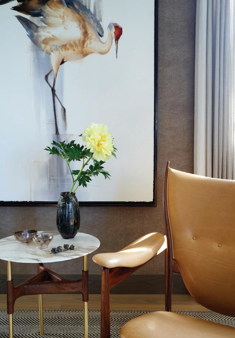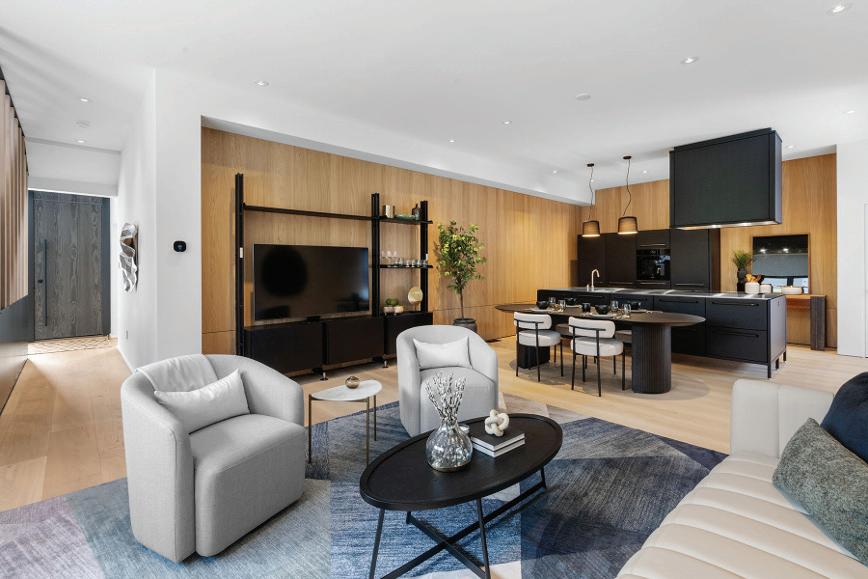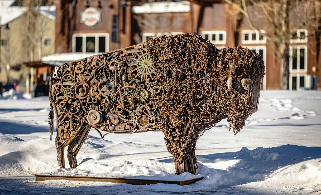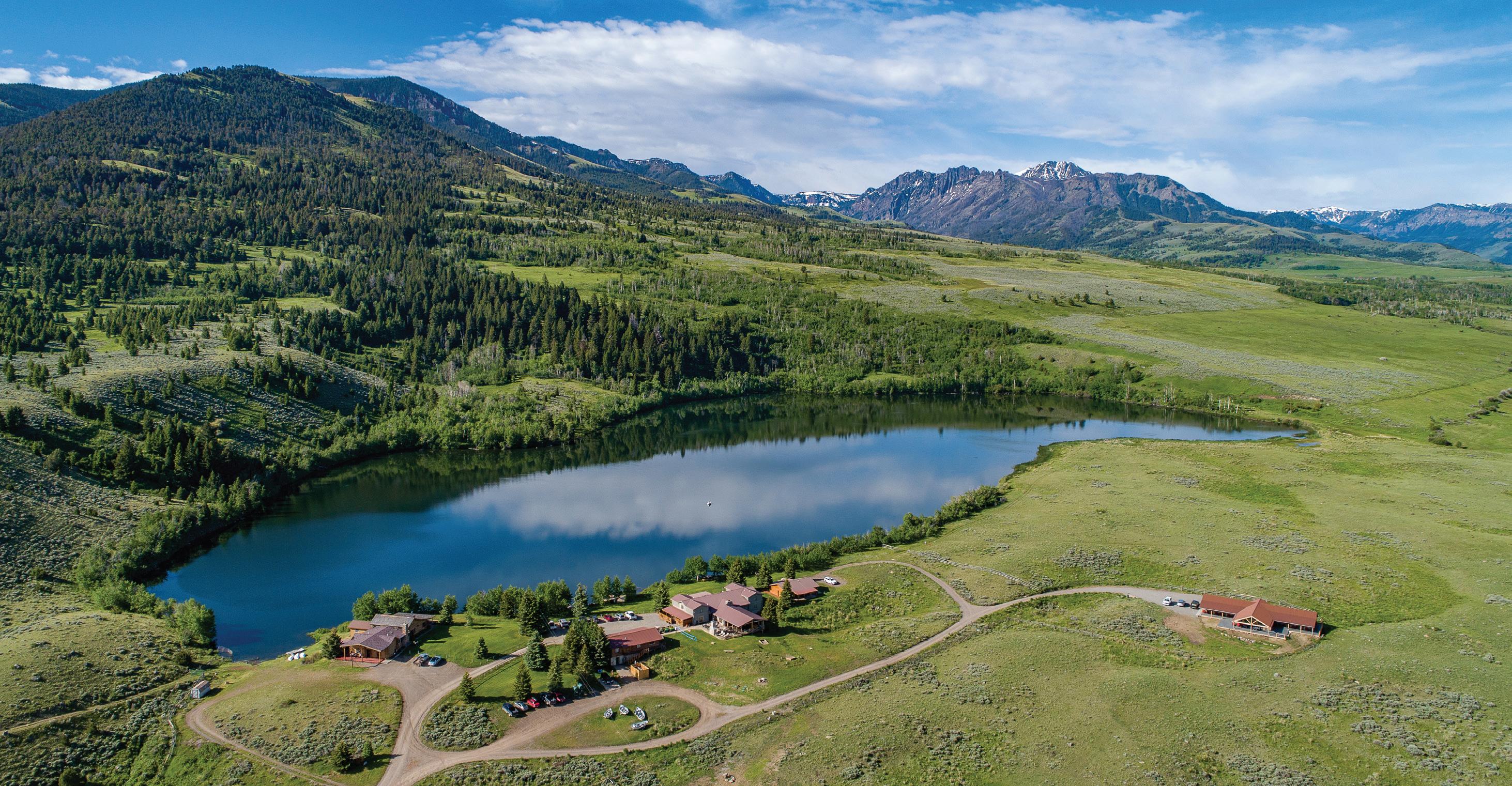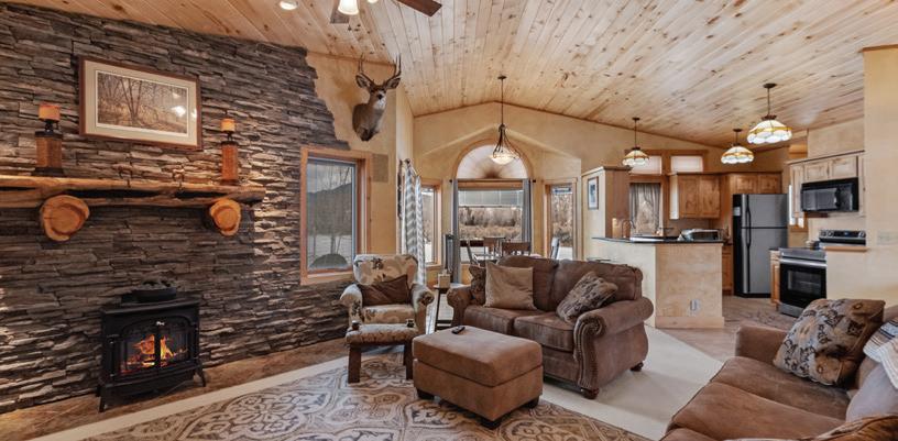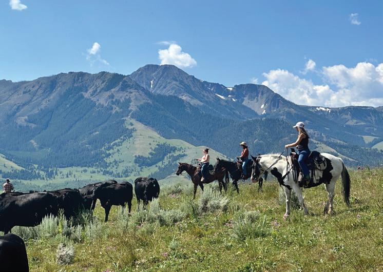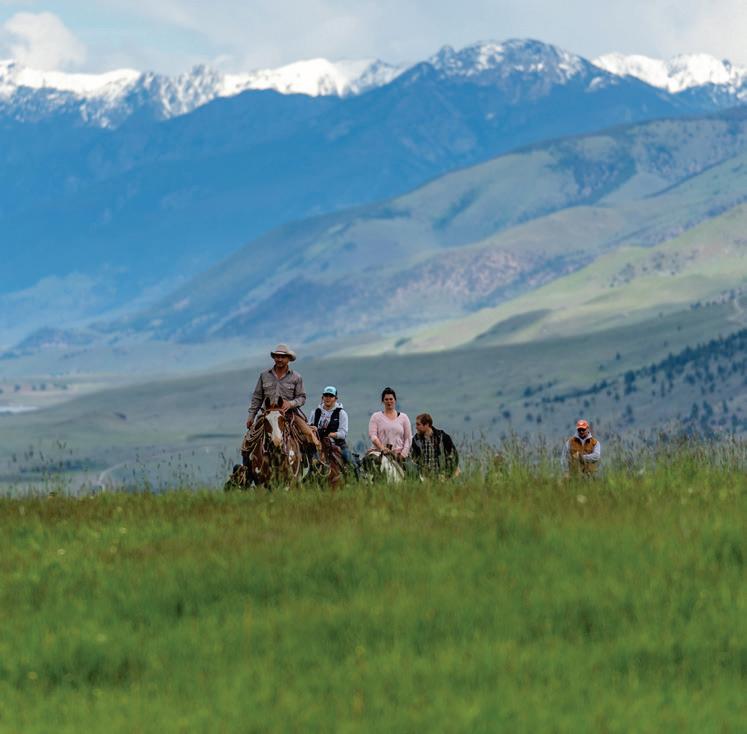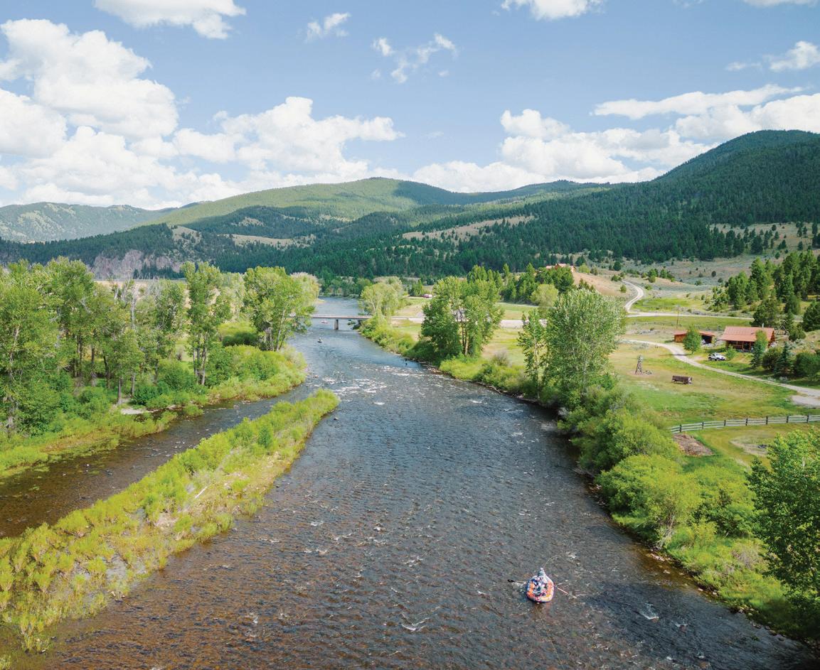 WHEN THE FUTURE OWNERS of a home on Trader Road in Jackson, Wyoming step outside their door, they’ll see the natural beauty the land offers from a bird’s-eye perspective. Perched on top of a hill in the gated Gros Ventre North community, the meticulously curated lawn and landscape give way to an aspen-filled forest down the sloping hillside, providing a panorama of the Tetons, the Snake River, and sweeping Walton Ranch in the valley below. While the vistas are takeyour-breath-away spectacular, the home’s feeling of seclusion is equally remarkable, given its proximity to downtown Jackson Hole, Teton Village, and Grand Teton National Park.