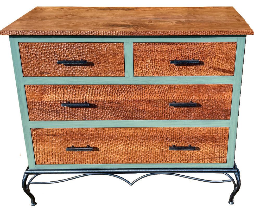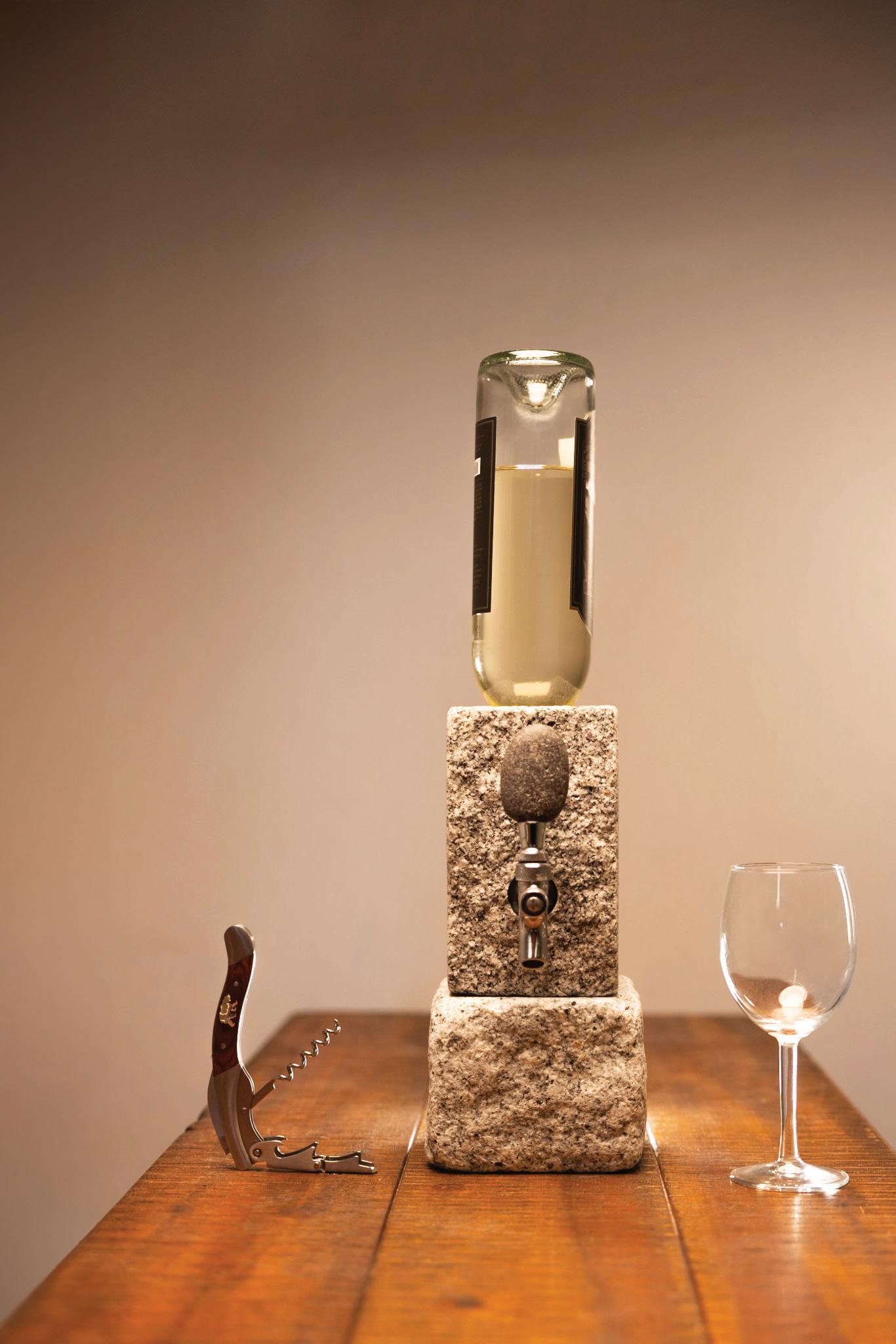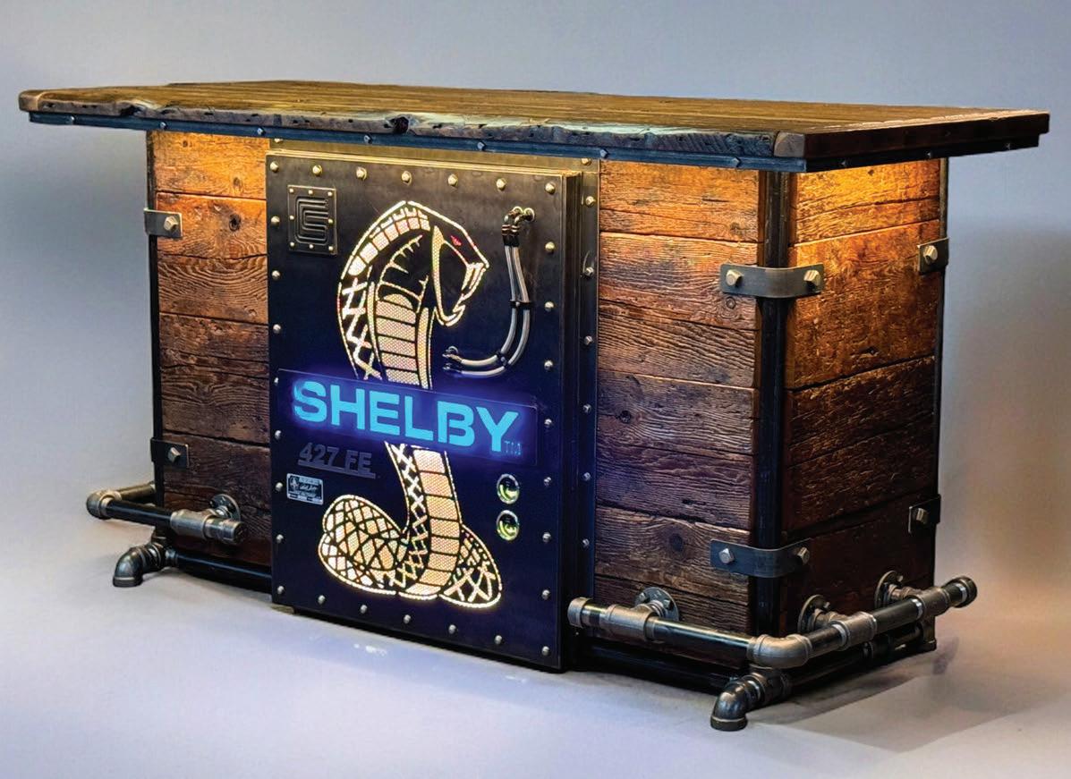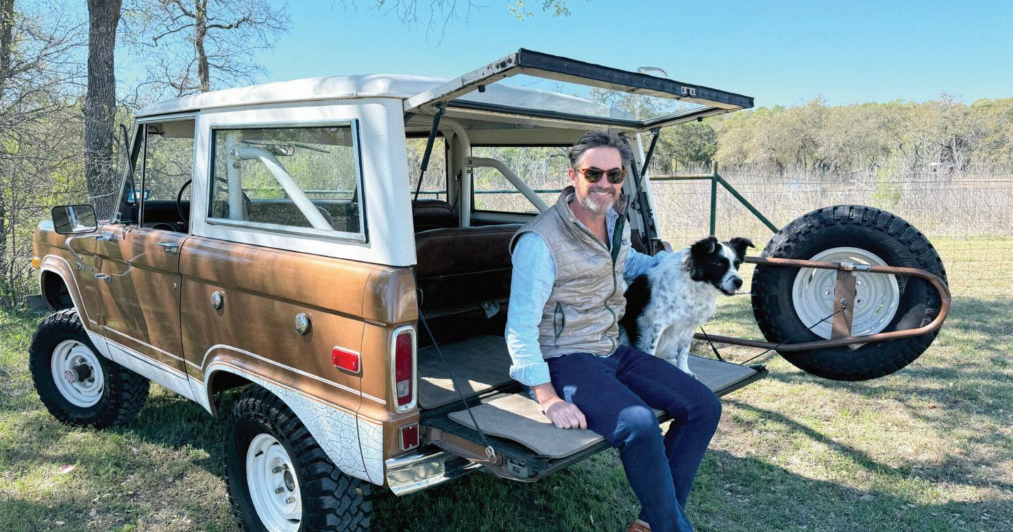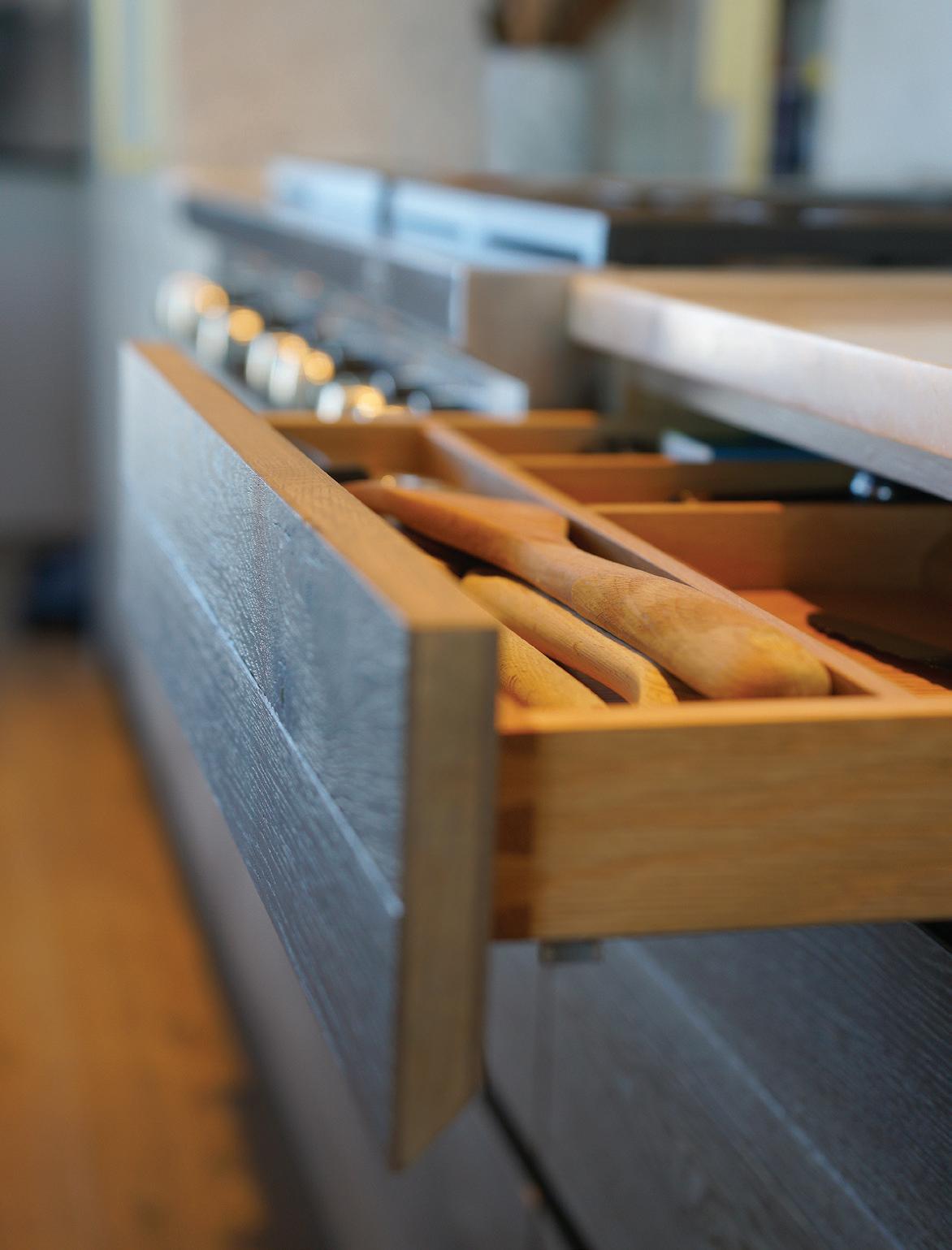 Each of TJHCo’s projects has bespoke details created by the company’s artist-in-residence, Fitzhugh Karol. In this home, Karol c a rved custom mantels for the indoor fireplaces in the great room and primary bedroom. He also carved distinctive wooden handles for interior barn doors. A medicine cabinet he customized in the primary bathroom is unique but still highly functional. “I like to add at le ast two or three touchpoints in every home we design. It provides a chance for us to enhance the basics with sculptural elements,” says Karol. “It’s nice to have a touch of handmade in a mostly manufactured environment, and ties into our overall ethos of bringing timeless materials into the homes we design.”