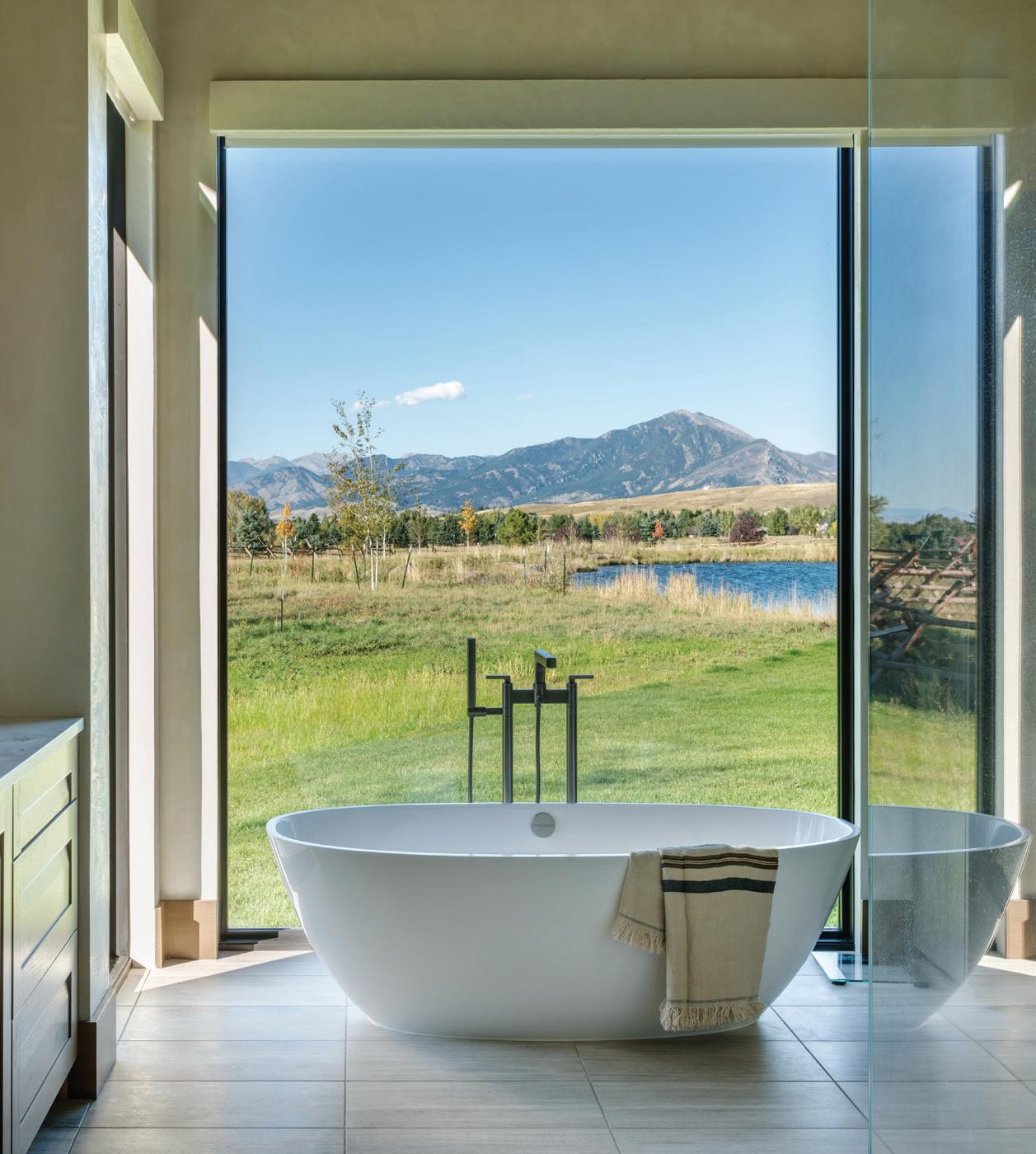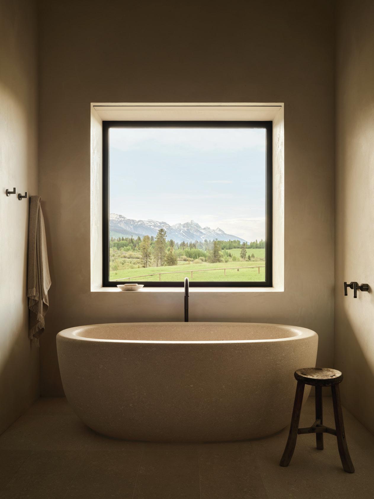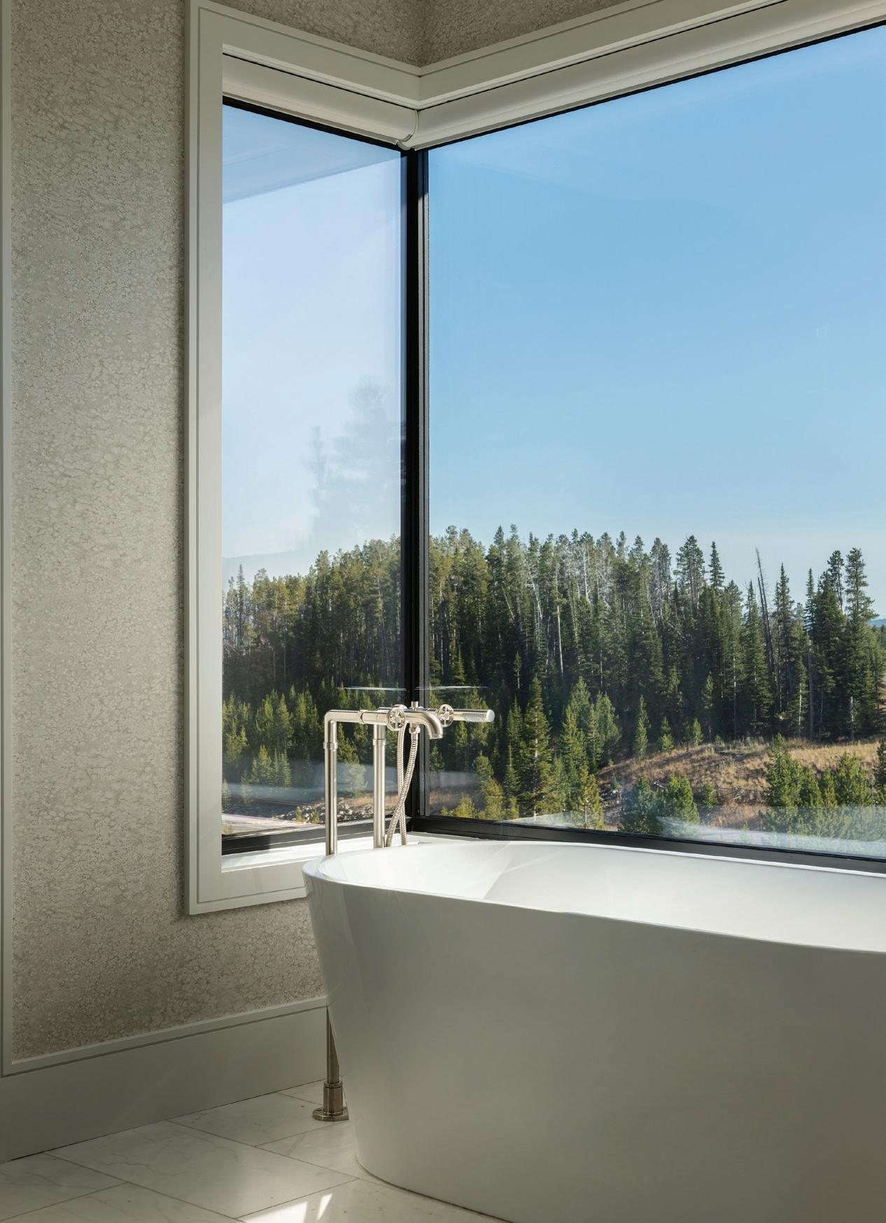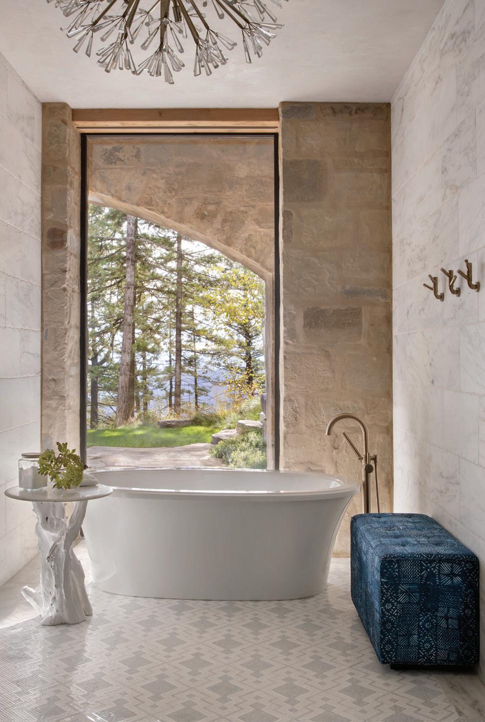 CLOCKWISE FROM TOP LEFT: A standing tub bathed in natural light and outdoor views encourages relaxation.