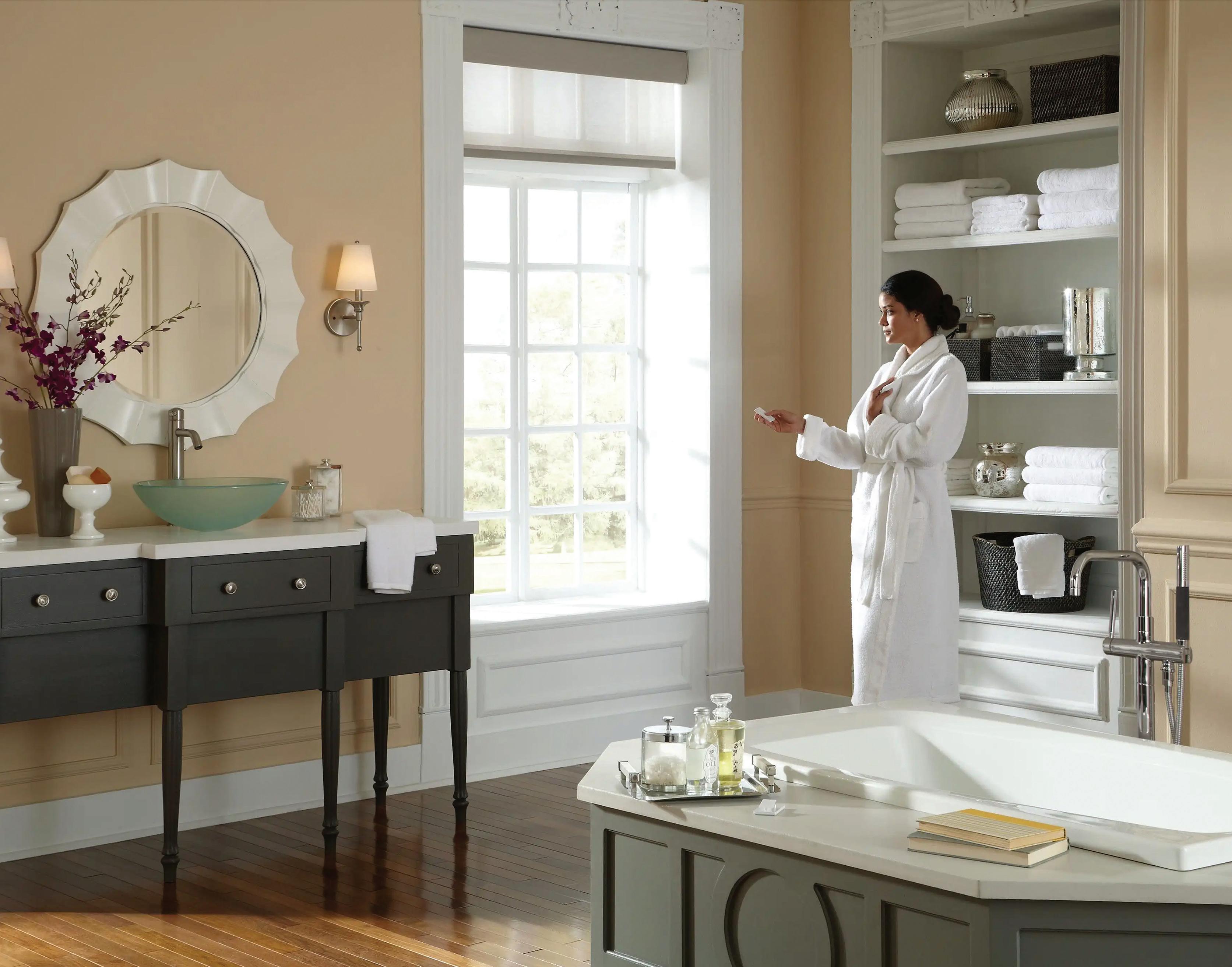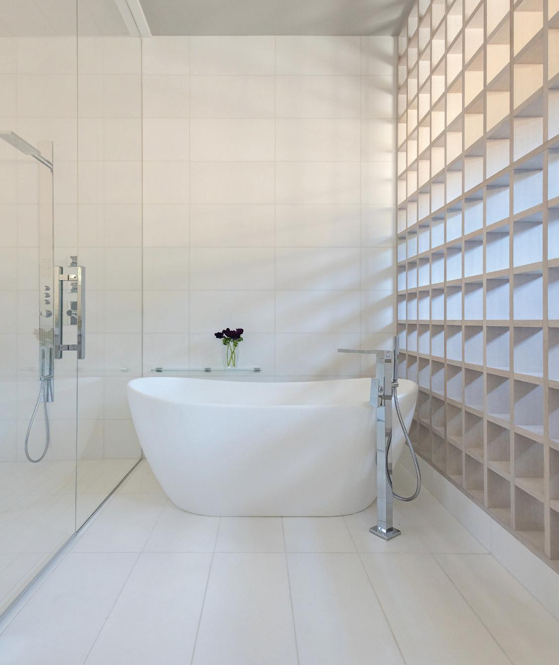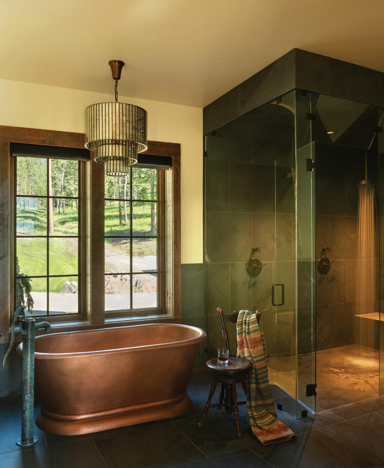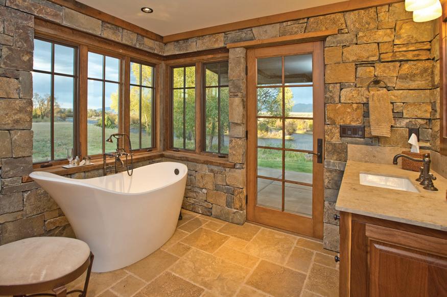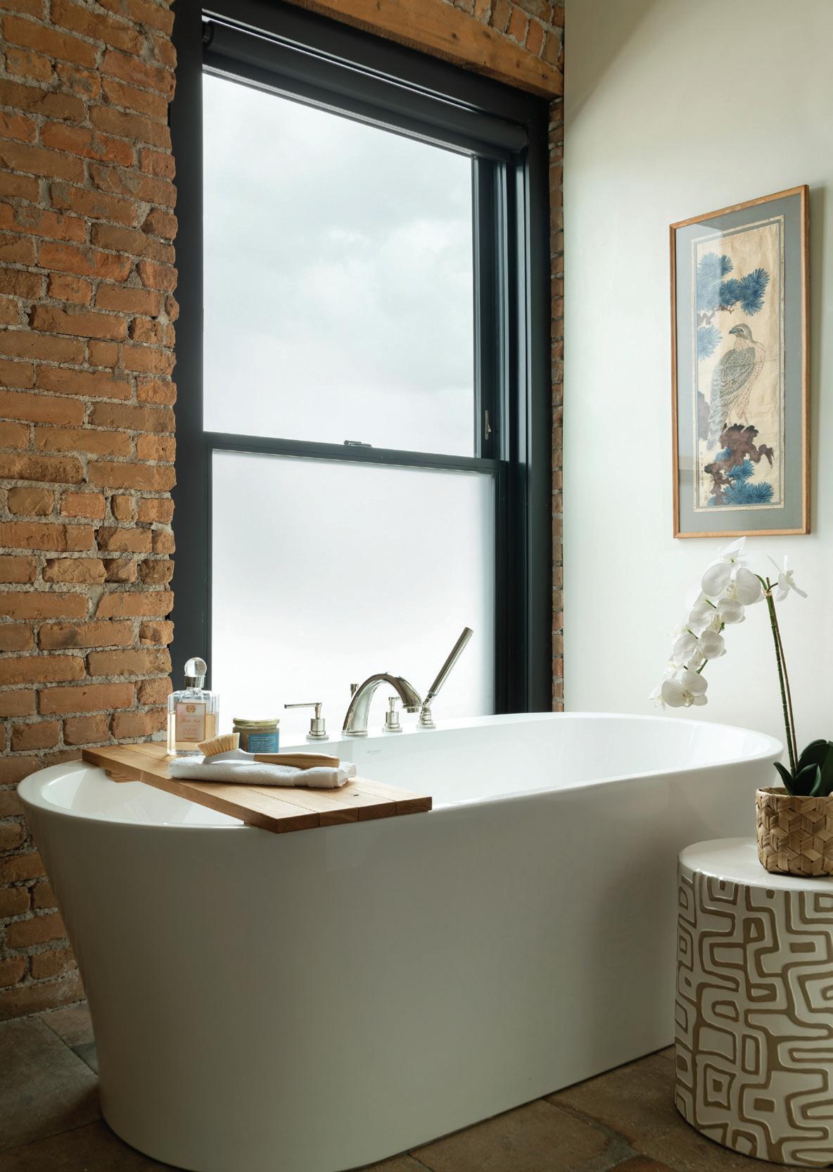 CLOCKWISE FROM TOP LEFT: A standing tub bathed in natural light and outdoor views encourages relaxation.