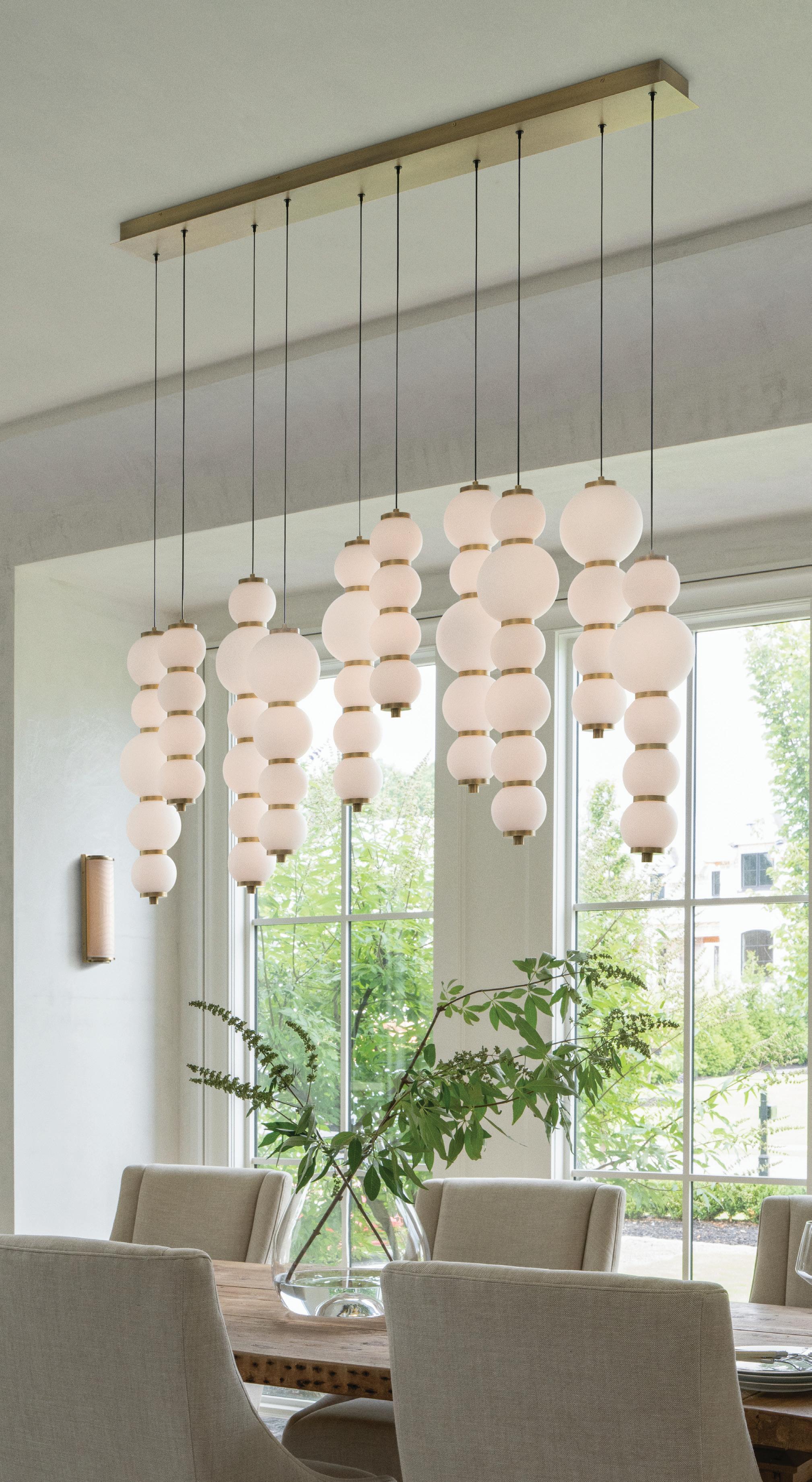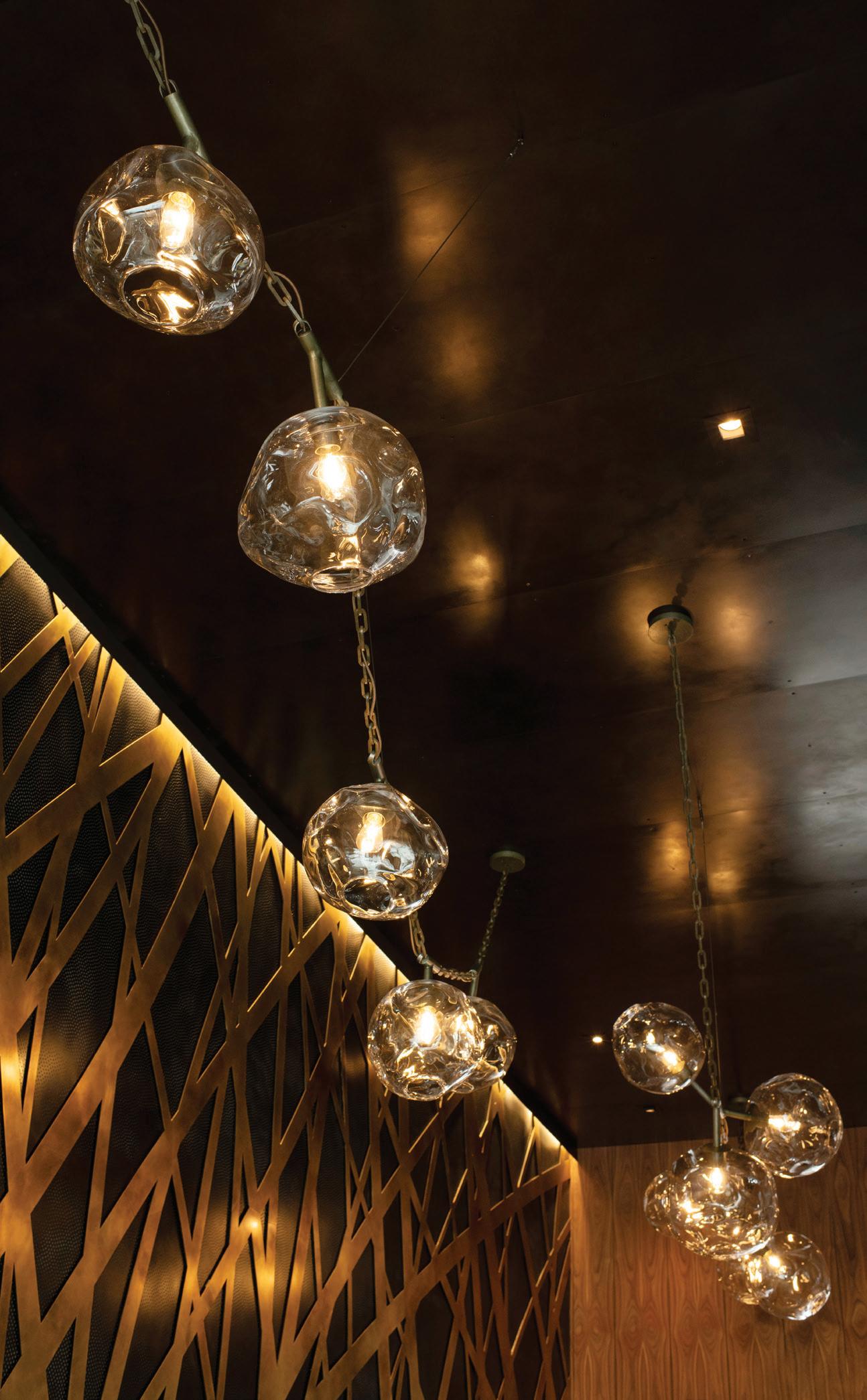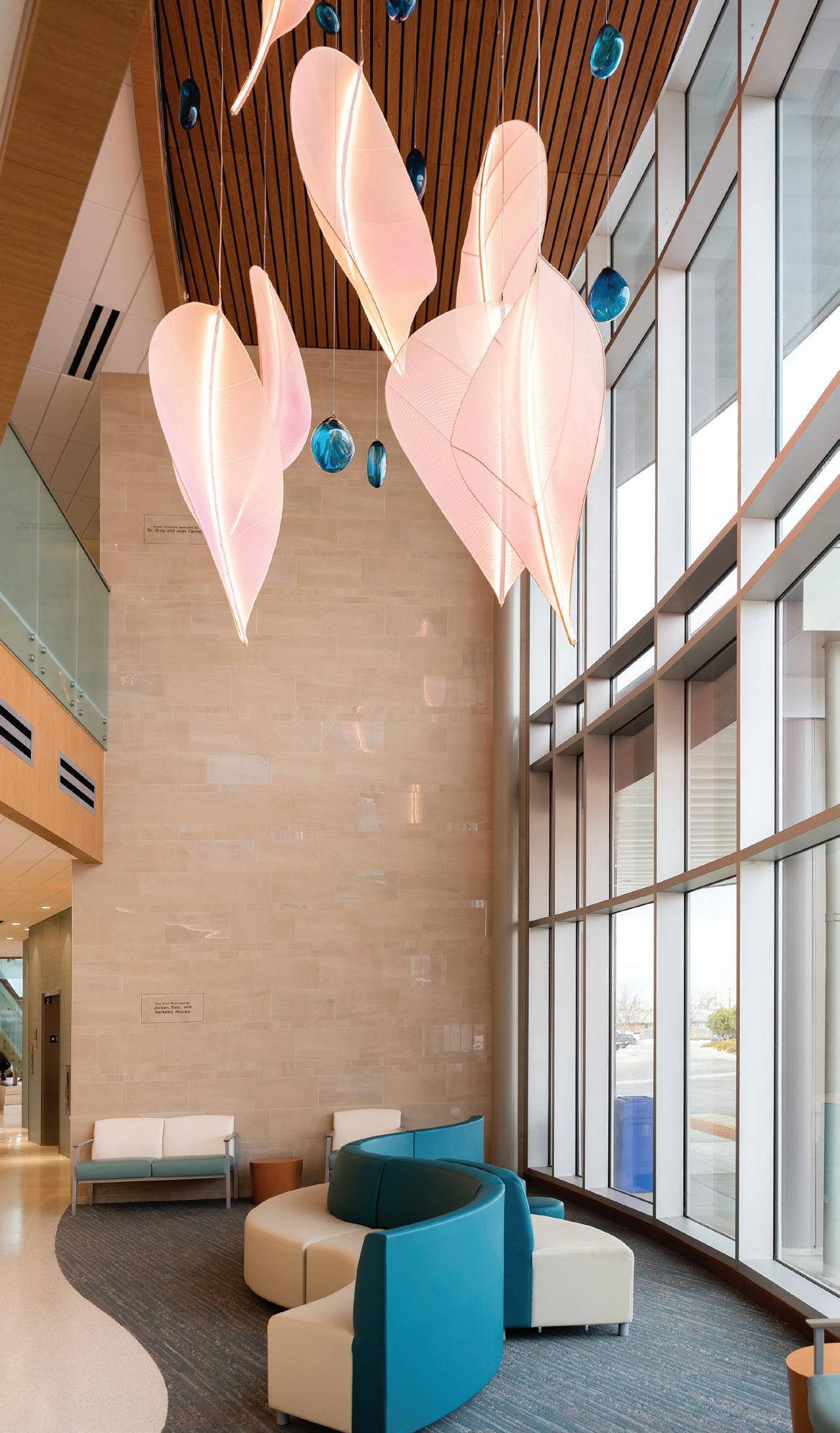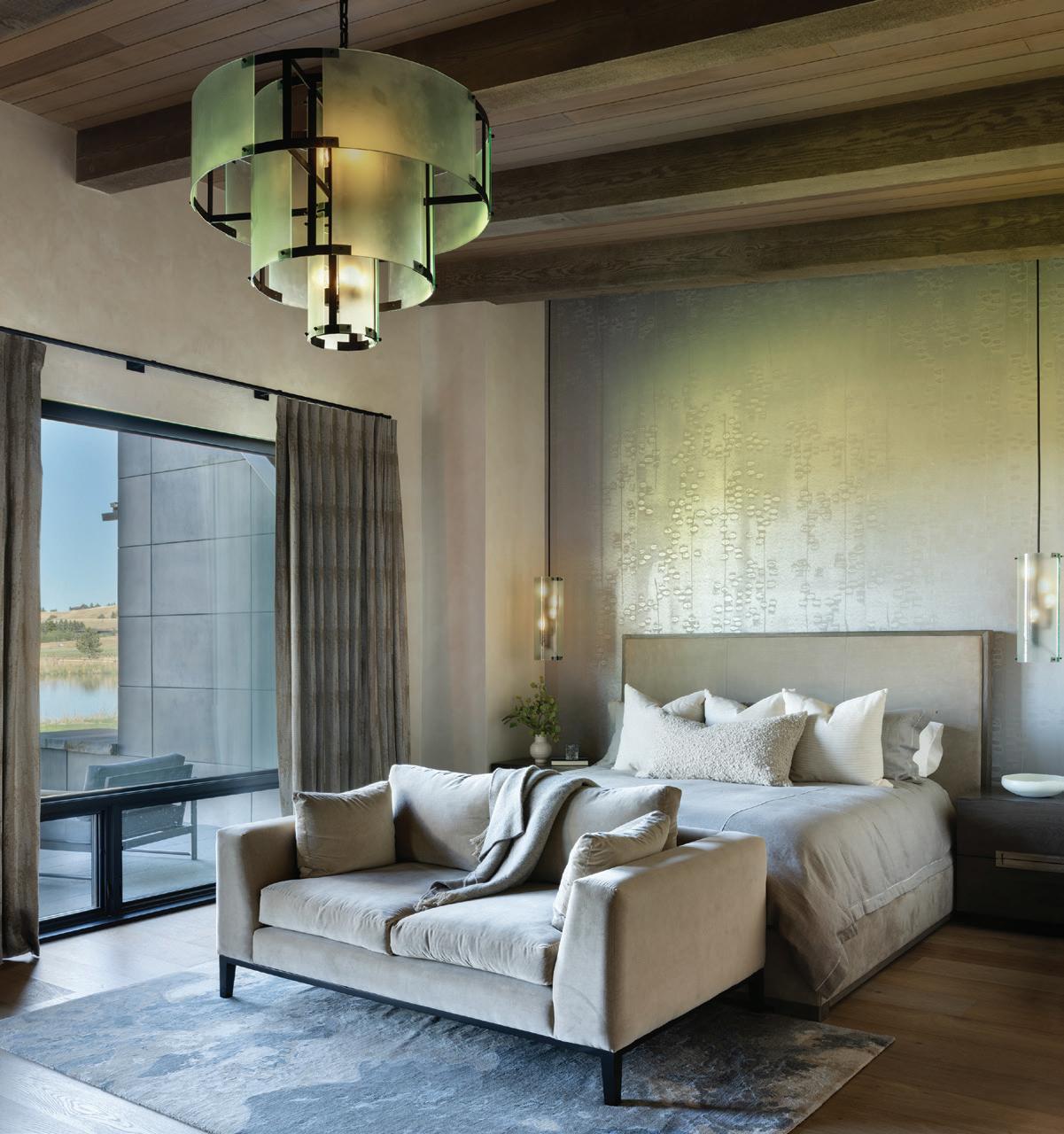 “We played off of nature, making sure that the outdoors came into the interior space with organic textures and palettes that really complemented nature,” says Fran DeLeo, partner of DeLeo & Fletcher, adding that some of the light fixtures include aspen motifs or resemble floating feathers.