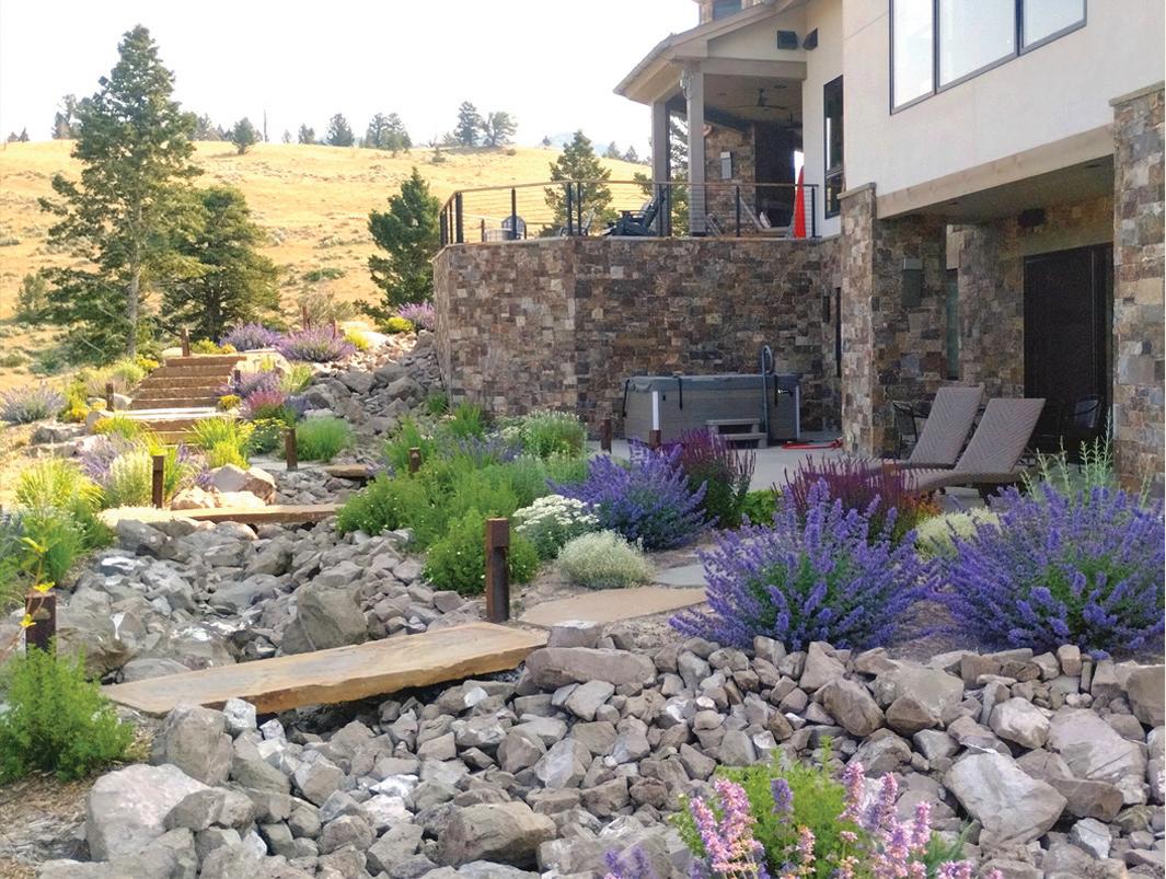 “We always speak about the importance of collaboration among the trades,” Farmer says. “We also worked closely with civil engineering firm Y2 Consultants to sculpt the building into the site’s contours wh ile integrating landscaping features, such as dry boulder creek