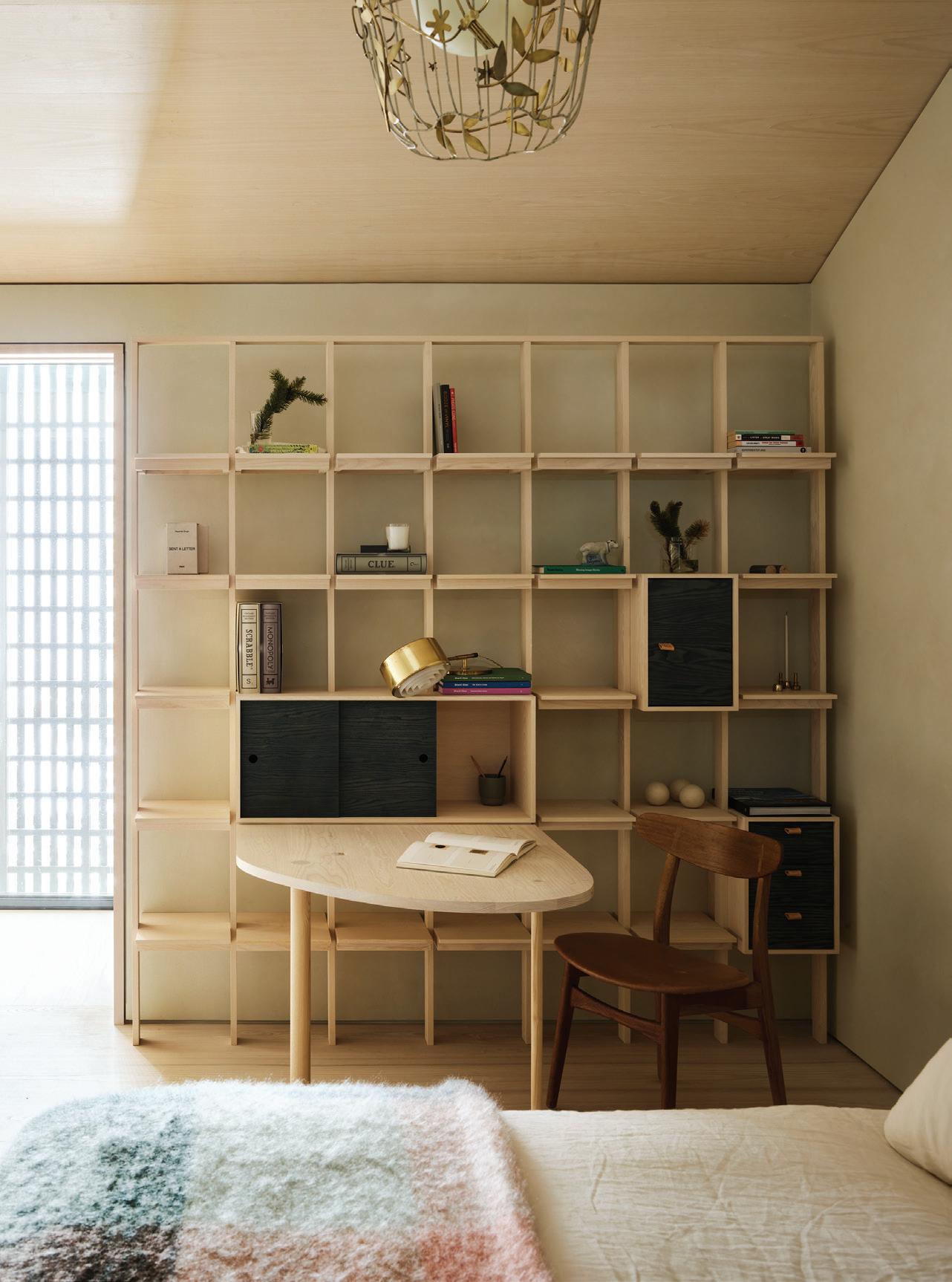 WHILE THE HOME WAS DESIGNED for interaction, it also provides everyone with privacy when needed. The homeowners’ wing functions as a self-contained residence, complete with a bedroom suite, his-and-hers offices, a living room, a kitchen, a dining area, and a dedicated garage.