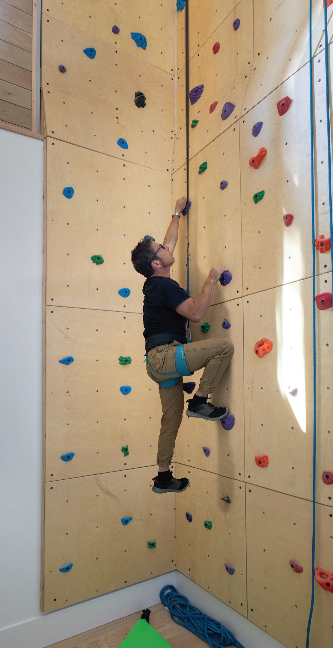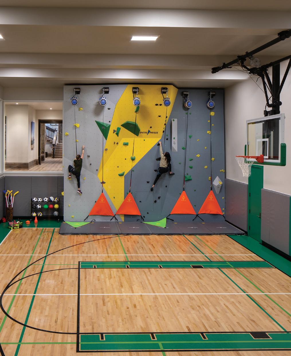 • When designing the home, the homeowner asked his grandchildren what activities they would enjoy most: At the top of their list was a climbing wall. Plenty of space for other activities — including a basketball court, golf simulator, and gym — helps keep this active family on the move.