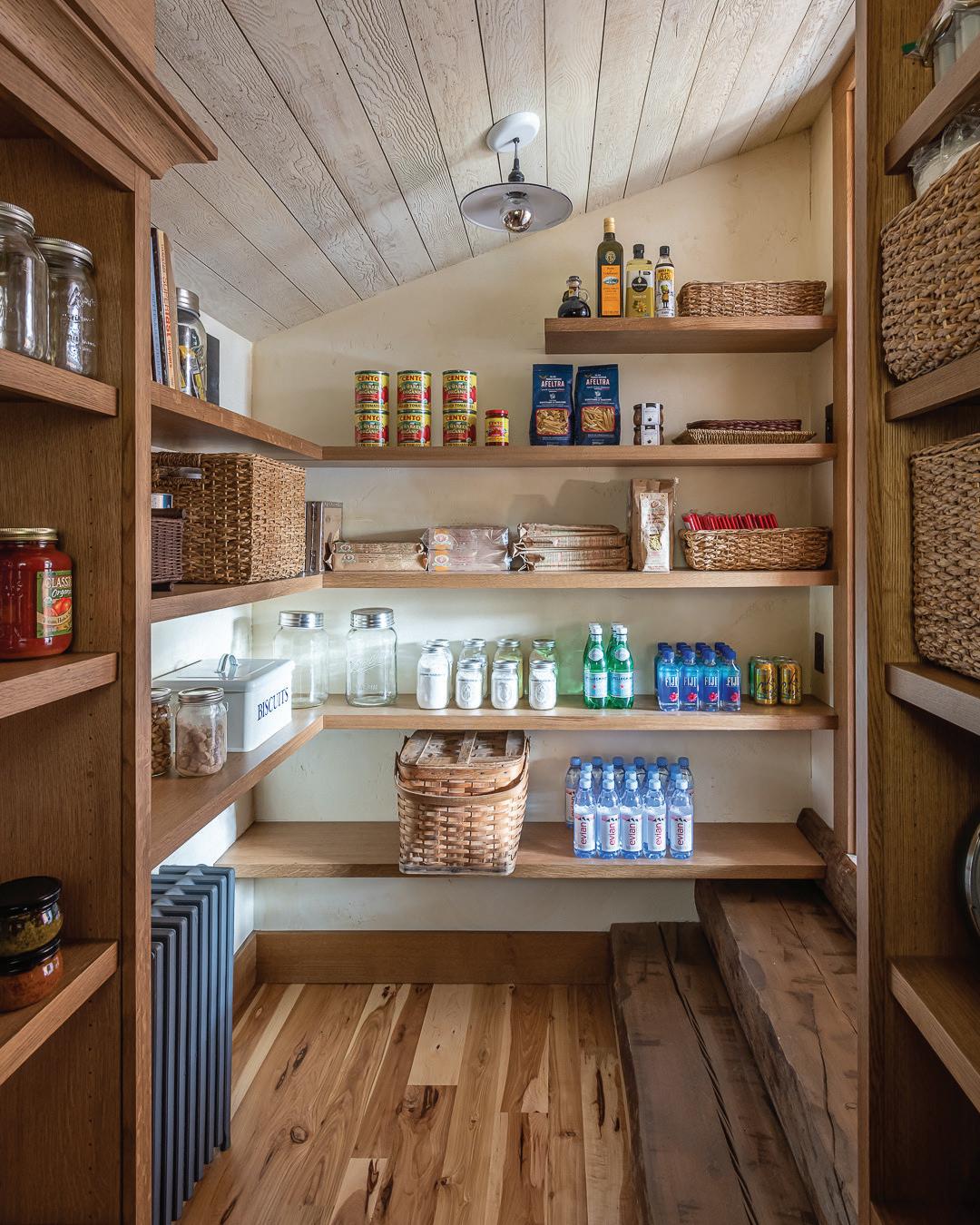 away butler’s pantry are well-appointed with commercial appliances and custom cabinetry with V-groove millwork. The spaces feature details, such as a wine fridge and warming drawers, for an entertainment-friendly home.