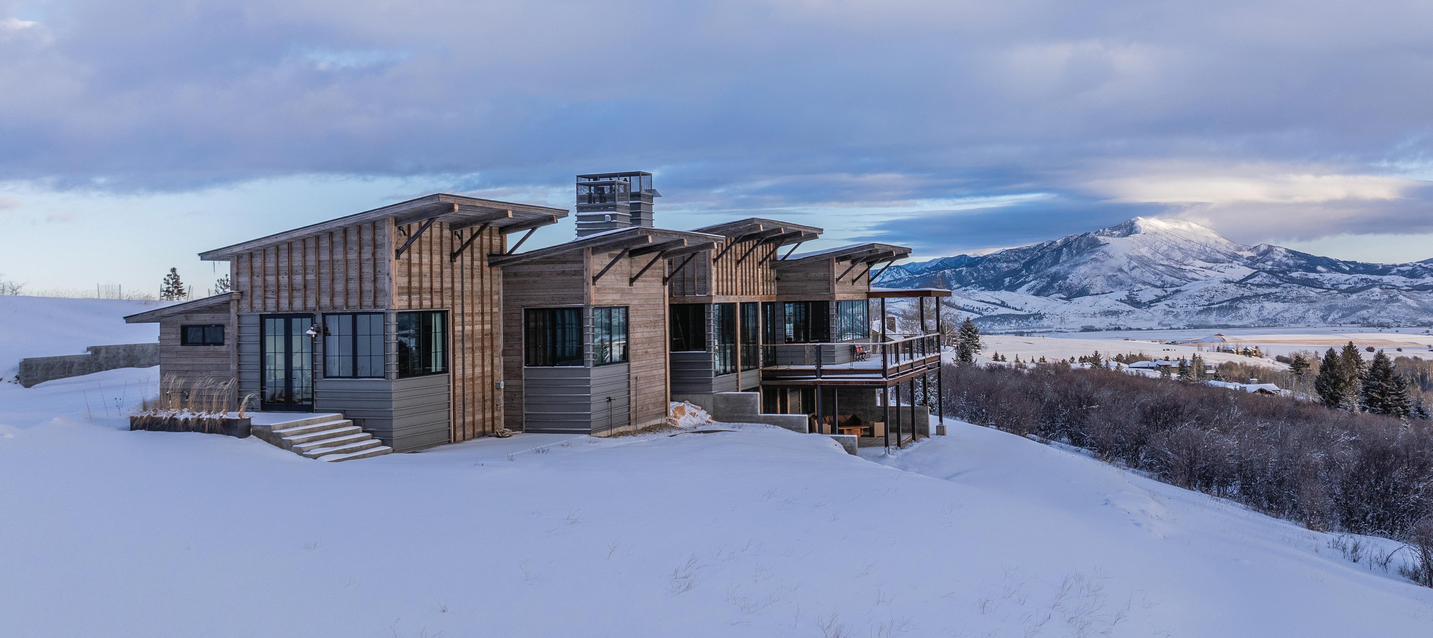 A home in Montana nestles into a mountain, yet arcs to the sky