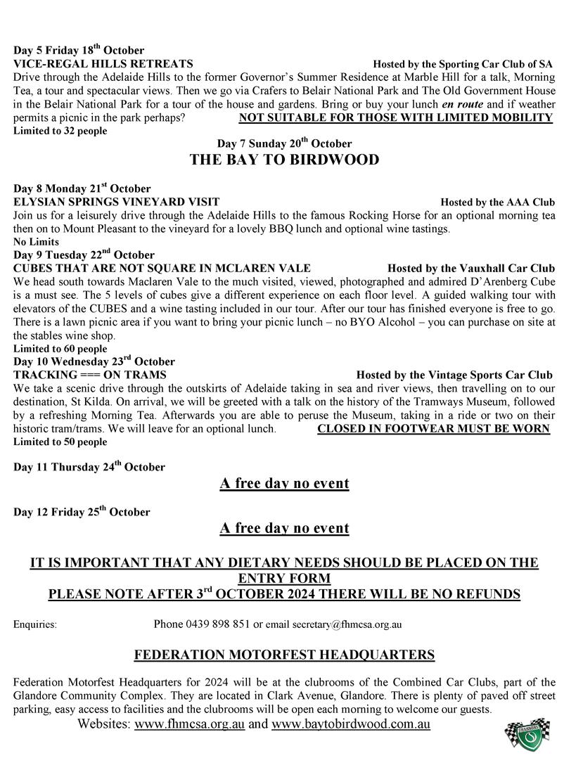 held at Mount Panorama, Bathurst from 4-7 April, 2025. I am told that in previous years someone has taken on the role to coordinate the JDCSA contingent’s travelling arrangements; if you would like to volunteer for this not too onerous task please let me know.