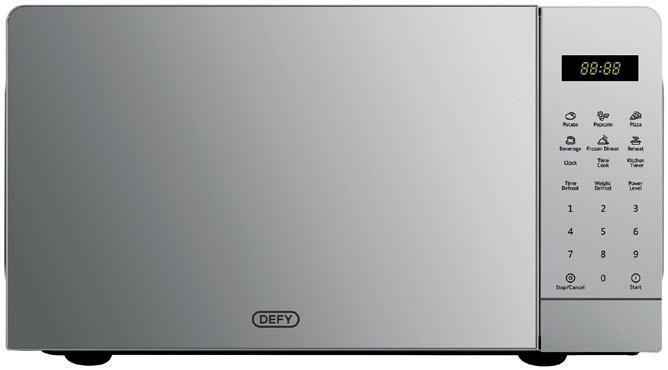 PG 17 20L Electronic Microwave Silver RHEM21L • Defrost function • 7 power levels • Timer • Push button door • LED display • 2 year warranty • (10058509) 20L Flatbed Microwave Black RHFBM20L • Turntable-free • Diamond cavity for even heat dist • Large cap to fit irregular-shaped plates • Digital display with clock • Power output: 700W • 60 minutes cooking timer • 2 year warranty • (10201725) MIRROR DOOR METALL C 900 WATTS 30L 30L Electronic Microwave Metallic DMO390 • Interior cavity: grey painted • Preset menu programs • Cooking end signal • 2 Year Warranty • (10124426) SILVER FINISH 43L Electronic Microwave Black DMO401 • 1000 Power output • Digital display • Preset menue programs • 43 Liter • Black Finish • Cooking End Signal • 2 Year Warranty • (10174505) 43L 1000 WATTS 34L S LVER F NISH 700 WATTS 20L Electronic Microwave Silver DMO383 • 6 power levels • Interior cavity: grey painted • Preset menu programs • Electronic control • Cooking end signal • 2 year warranty • (10128033) 20L 20L Manual Microwave Silver DMO20S • 700W power • 5 power levels • Mechanical control • Solo microwave • Cooking end signal • Mute signal • Silver mirror finish • 2 year warranty • (10283679) S LVER F NISH 20L 700 WATTS 34L Grill Microwave Silver DMO392 • 1000W Power Output • Interior cavity grey • Preset menu programs • 34 Liter • Digital display • Cooking end signal • 2 year warranty • (10177093) 1000 WATTS BLACK FINISH 36L Grill Microwave Black RHEM36G • Digital LED display with Clock • Power output: 1000W • Programmable multi-stage cooking • 6 Auto menus with end signal • 5 power levels • 2 Year warranty • (10130942) 20L Manual Microwave Metallic RHMA20L • 255MM Glass turntable diameter • Door safety lock • Elegant mirror finish (Front) • Enamel interior for easy cleaning • 5 Power levels • 2 Year Warranty • (10058511) 700 WATTS 20L S LVER FIN SH SILVER FIN SH 36L 1000 WATTS 36L Electronic Microwave Silver RHEM36G • 1000W power • Auto menus • Various power levels • LCD display • Quick start and kitchen timer functions • 2 year warranty • (10115435) 36L 1000 WATTS BLACK FINISH M RROR DOOR 700 WATTS 20L 700 WATTS 20L Pricing & product available in-store and online at www.hificorp.co.za