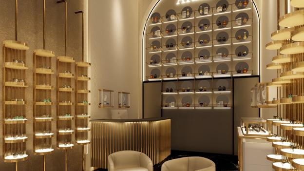 Local comercial ubicado en un centro comercial al sur de la ciudad, dónde la carácteristica principal es crear un ambiente de elegancia y exclusividad que se complementa directamente con los productos que se venderán (Relojes, Gafas y Lociones de marca) y se ve reflejado tanto en el orden en el que estos están expuestos, cómo en la materialidad del espacio y mobiliario