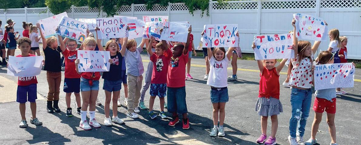 In observance of Patriot Day on September 11, Kirtland Elementary School’s (KES) staff and students came together to honor the community’s first responders with an outdoor parade in the KES parking lot. Officers from the Kirtland Police and Fire Departments and Waite Hill Police drove through the school’s parking lot as students lined the drive, cheering and displaying their appreciation for the important work they do. Members of the Kirtland Police and Fire departments also joined the students for lunch.