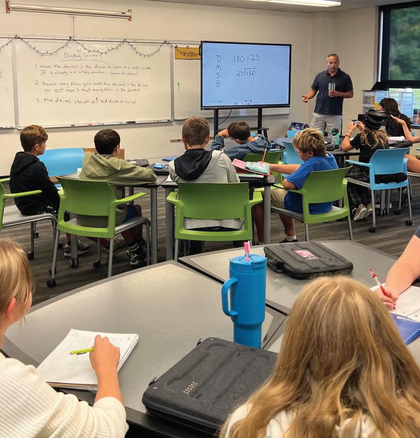 Sixth-grade students benefit from a rotation of four classes: general music, where they learn piano and ukulele; wellness; art; and a STEAM (science, technology, engineering, art, and mathematics) class developed by Dr. JP Moran.