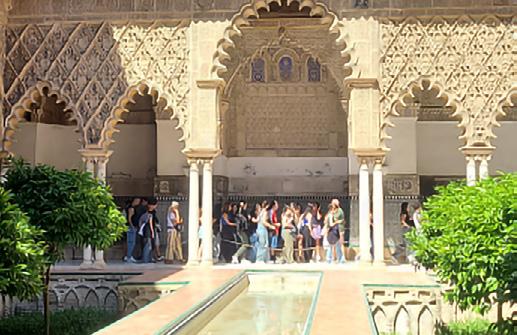 In May and June 2024, Lori Lefkovitz, Simon Rabinovitch, and Rima Farah led twenty-one students on a brand-new Dialogue of Civilizations Program to Spain and Morocco. The month-long program, History and Literature of Medieval Spain and Morocco: Judaism, Christianity, and Islam in Uneasy Coexistence, focused on the complex relationships among different religions between the 8th and 16th centuries, as well as the cultural and literary products of that age. Students and faculty began in Madrid and traveled to Toledo, Granada, Cordoba, Seville, across the Straits of Gibraltar to Tangier, and on to Fes, Marrakesh, Rabat, and Casablanca. They visited religious and archaeological sites, universities, and cultural institutions, heard from local experts, listened to music, tasted cuisine, and came away from the experience with an understanding of the complexities of coexistence and conflict between religious communities.