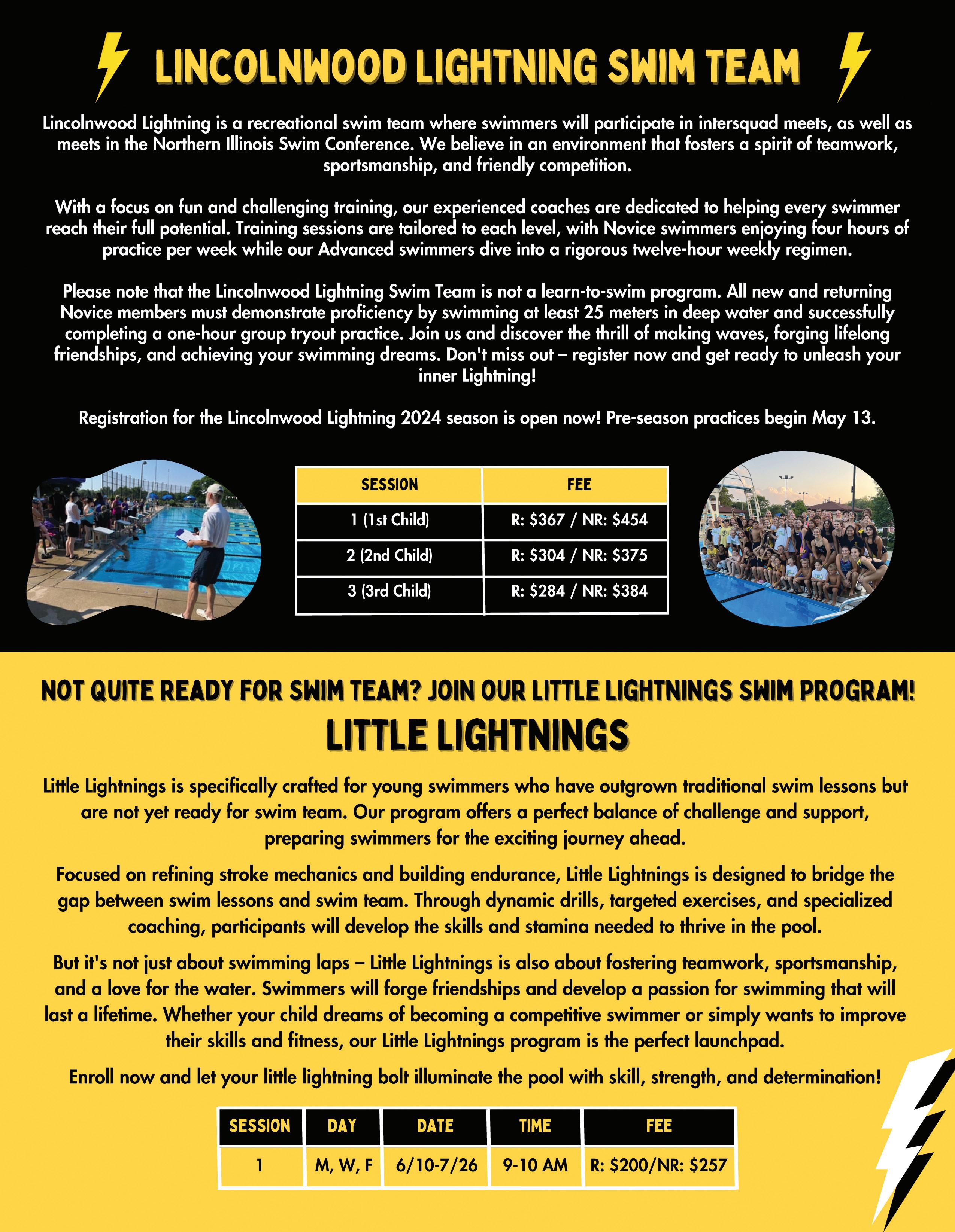 We are pleased to offer an exciting new Pickleball League – the perfect blend of competition and camaraderie! Join us for thrilling matches and friendly rivalry in our brand-new pickleball league. Whether you're a seasoned pro or new to the sport, our league offers a welcoming environment for players of all levels. Registration is now open! Sign up online at www.lincolnwoodil. org or visit our Parks and Recreation offce to secure your spot. Don't miss your chance to be part of the action – register today! The minimum number of teams must be met by June 14.