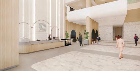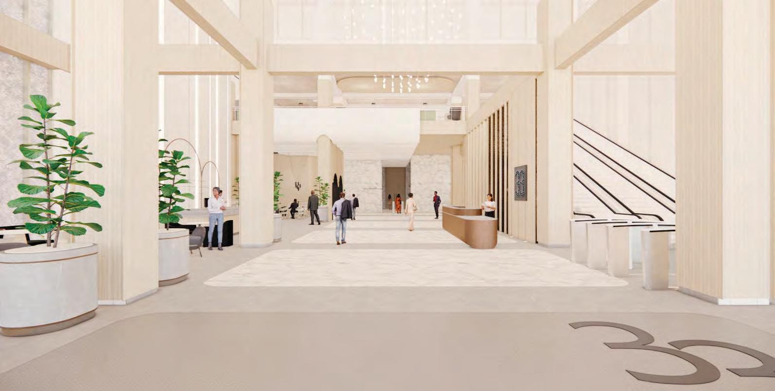Full Lobby and Amenity levels refresh of existing commercial office building located in the Chicago Loop. This refresh design aims to integrate an overall warmer, more inviting & visually appealing finish palette to the 10-story high main lobby. Also introducing new updates & spaces for a coffee bar, dining area, a 'speakeasy' lounge, & amenity lounge.