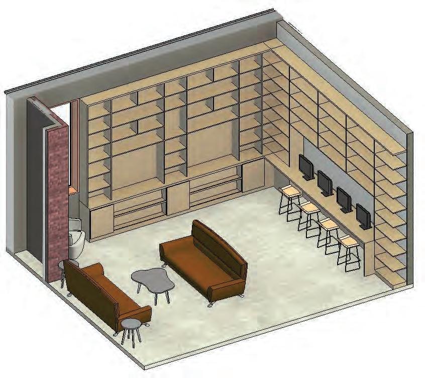 PORTFOLIO PROFESSIONAL CONTACT THE EARLY DAYSEDUCATIONAL COMPETITIVE EDGE 36 BandWith Chicago Design Development | 05.16.2023 Music Library 2 1 214 SF COFFEE FOOD SERVICE AREA 36 73 SF CORRIDOR 37 59 SF RESTROOM 40 61 SF RESTROOM 39 32 SF UTILITY 41 P.O.S. UP NEW CONCRETE SLAB FROM SIDEWALK TO ENTRANCE RAMP 99'-6" 100'-0" NEW EXTERIOR WALL ? NEW GLAZED ALUMINUM STOREFRONT 4 5 NEW WINDOWS Glass -Top Electric Combination Appliance. F LEVEL 01 100' - 0" B.O. BEAMS 112' - 10 1/4" BUILT-IN 3/4" PLYWOOD OPEN SHELVING RECORD TURNTABLES CD CASETTE TAPE RECORDER PLAYERS VINYL RECORD ALBUM DISPLAY 11'6" NOTE: EQUIPMENT BY OWNER, TYP. SHOWN FOR REFERENCE ONLY 1' 2" FRONT EDGE OF CONTINOUS OPEN SHELVING ON EAST WALL ACOUSTICAL WALLCOVERING VINYL RECORD ALBUM DISPLAY 2'10" ACOUSTICAL WALLCOVERING C D E 1/4" = 1'-0 ENLA 1/4" = 1'-0 ENLA 1/4" = 1'-0" ENLARGED PLAN -COFFEE SHOP 1/4" = 1'-0" ENLARGED PLAN -MUSIC LIBRARY 1/4" = 1'-0" ENLARGED PLAN -SINGLE-USER RESTROOM 3/8" 1'-0" A2.201 MUSIC LIBRARY -EAST ELEVATION 3 4 A 11' 6" LEVEL 01 100' - 0" 11' 6" NOTE: EQUIPMENT BY OWNER, TYP. SHOWN FOR REFERENCE ONLY 3/8" = 1'-0" A2.201 9 MUSIC LIBRARY -EAST ELEVATION 3/8" = 1'-0" A2.201 10 MUSIC LIBRARY -NORTH ELEVATION A 11' 6" TACKABLE WALL COVERING LEVEL 01 100' - 0" VINYL RECORD ALBUM DISPLAY 11' 6" NOTE: EQUIPMENT BY OWNER, TYP. SHOWN FOR REFERENCE ONLY VINYL RECORD ALBUM DISPLAY 2'10" 3/8" = 1'-0" A2.201 9 MUSIC LIBRARY -EAST ELEVATION 10 MUSIC LIBRARY -NORTH ELEVATION